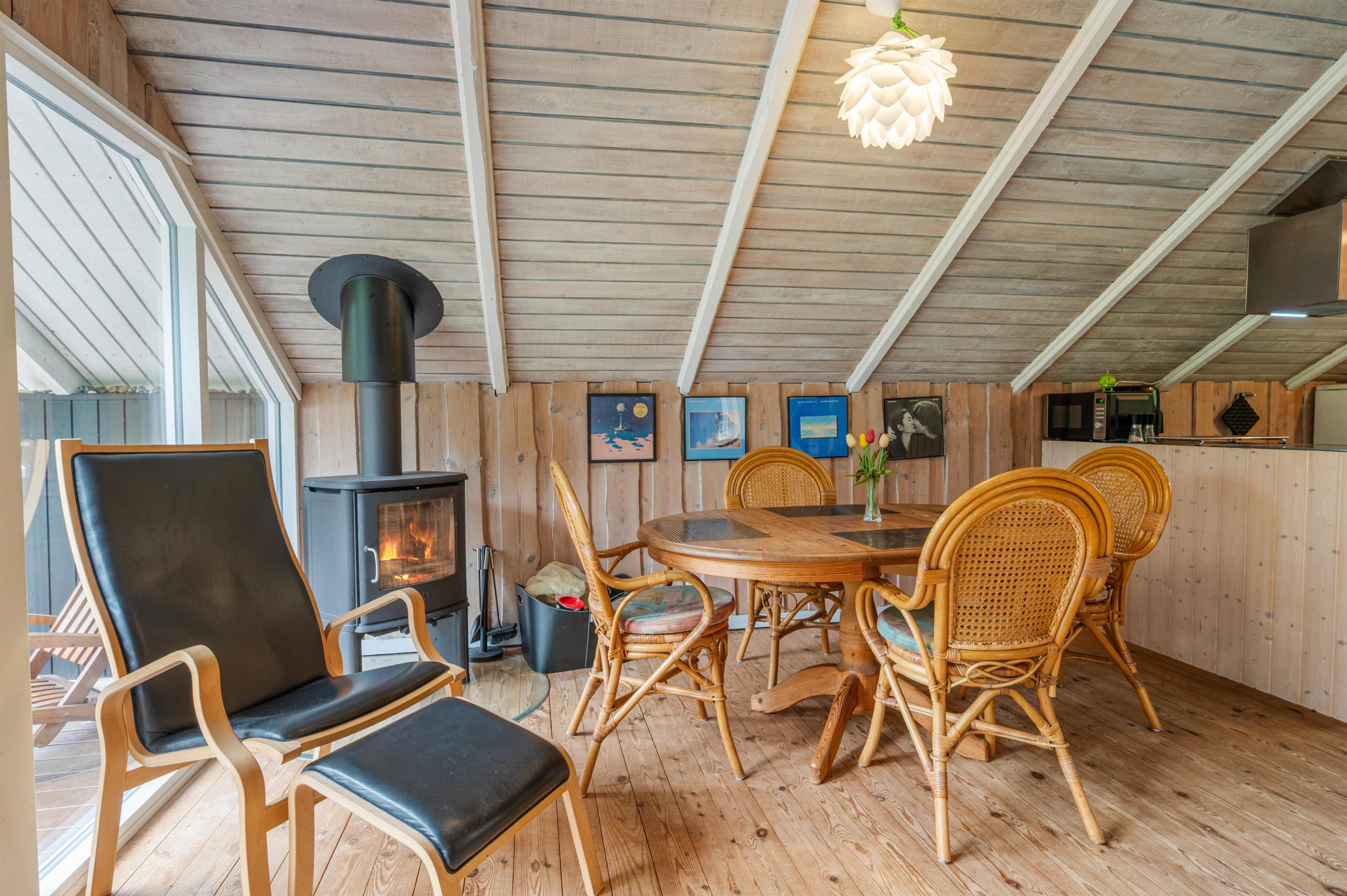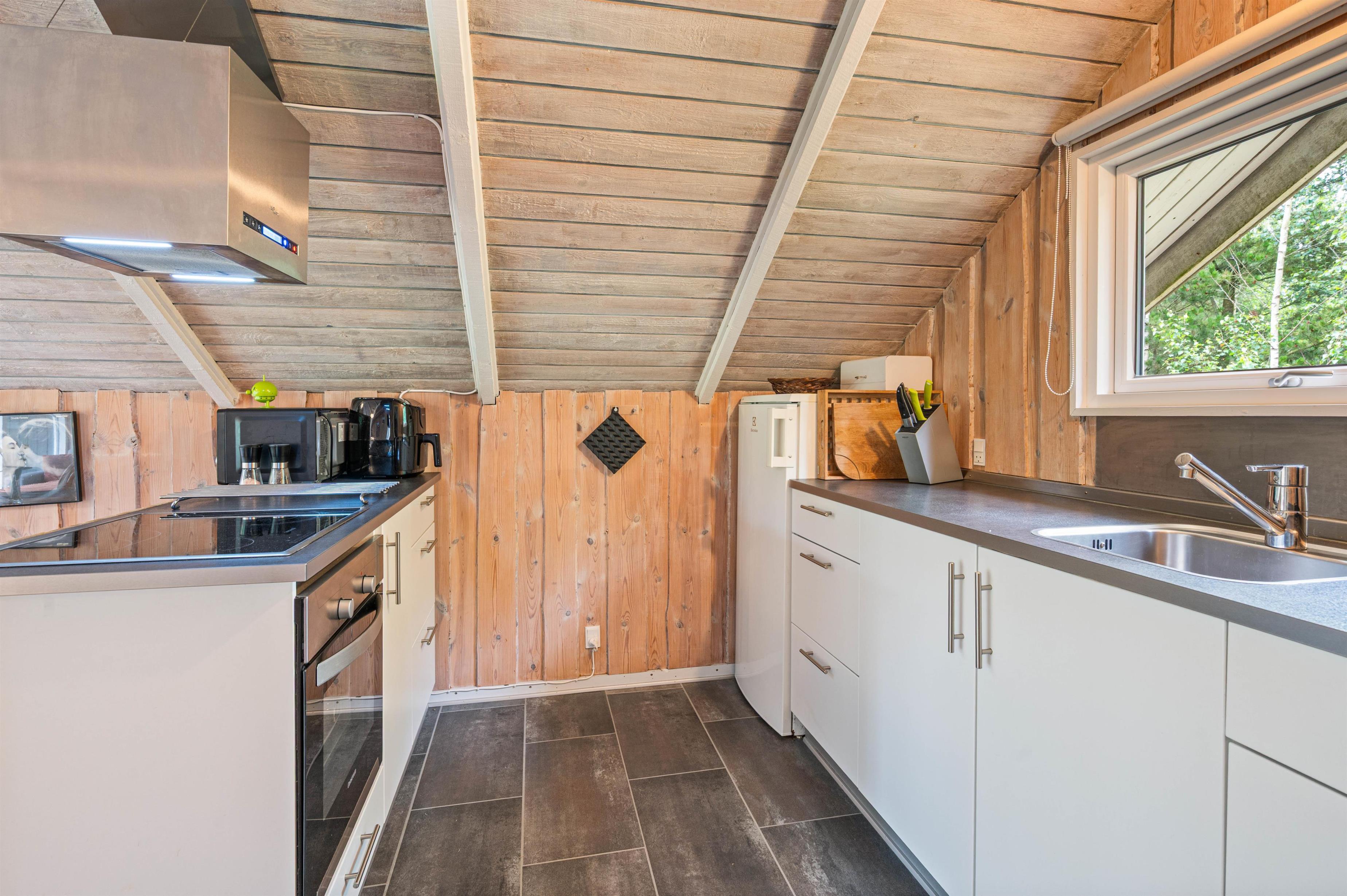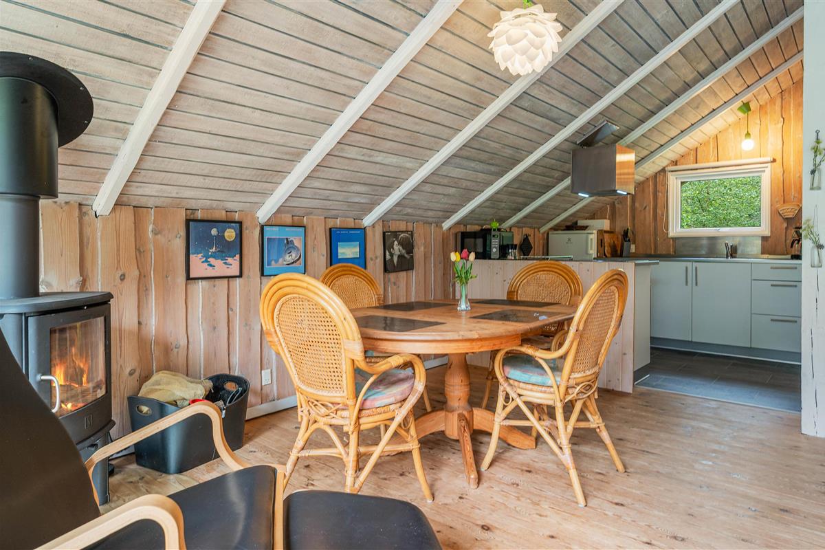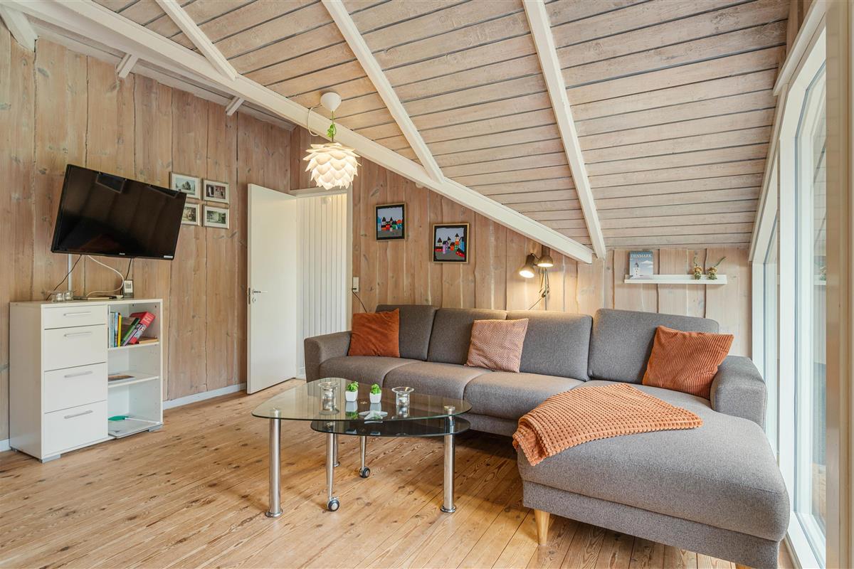 This recently renovated holiday home exudes its own unique charm and invites guests to enjoy many memorable holiday moments. It's a typical Danish summer house featuring light wooden panelling, exposed beams and floor-to-ceiling panoramic windows. The thoughtfully furnished living space with its integrated open-plan kitchen creates the perfect setting for shared activities.