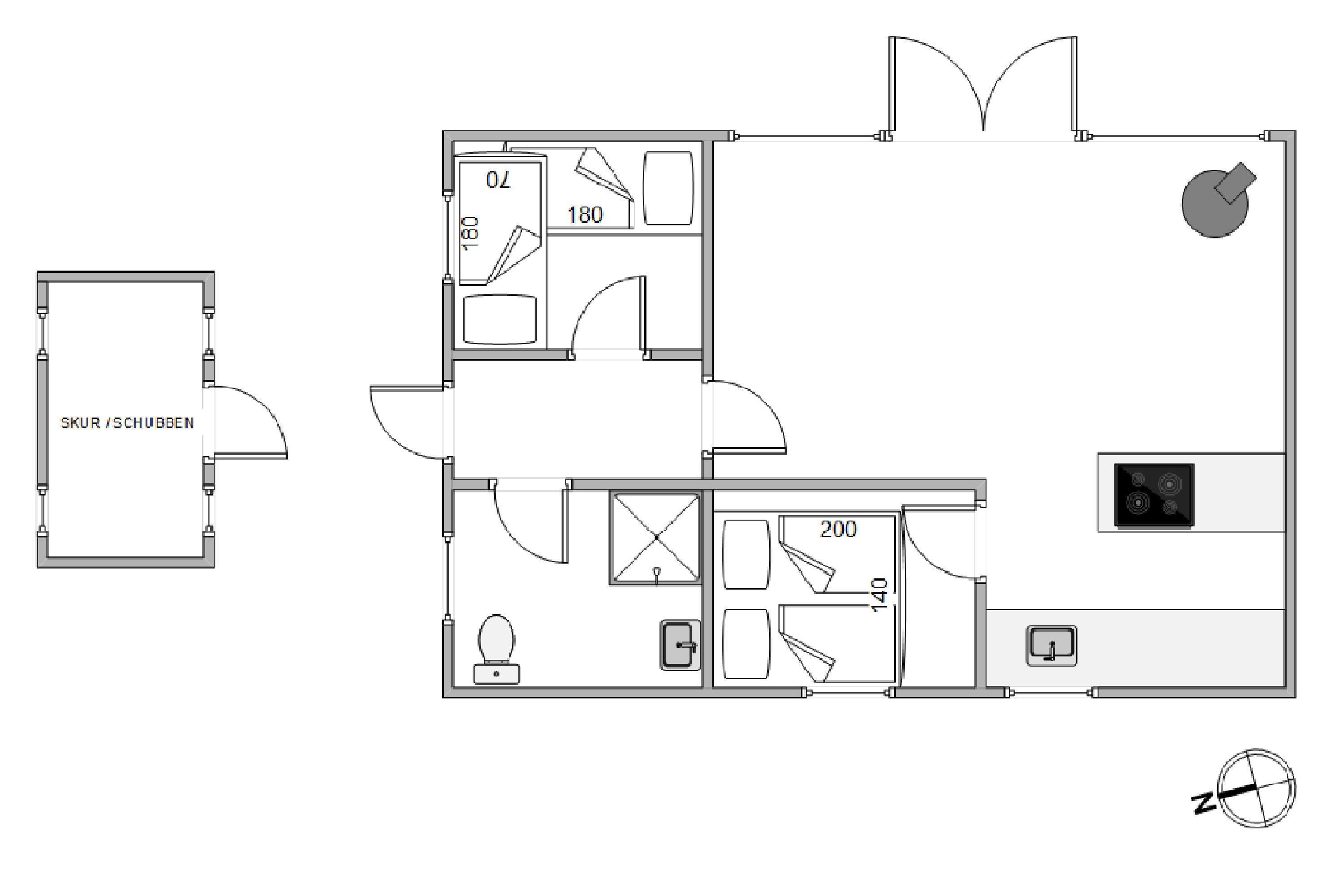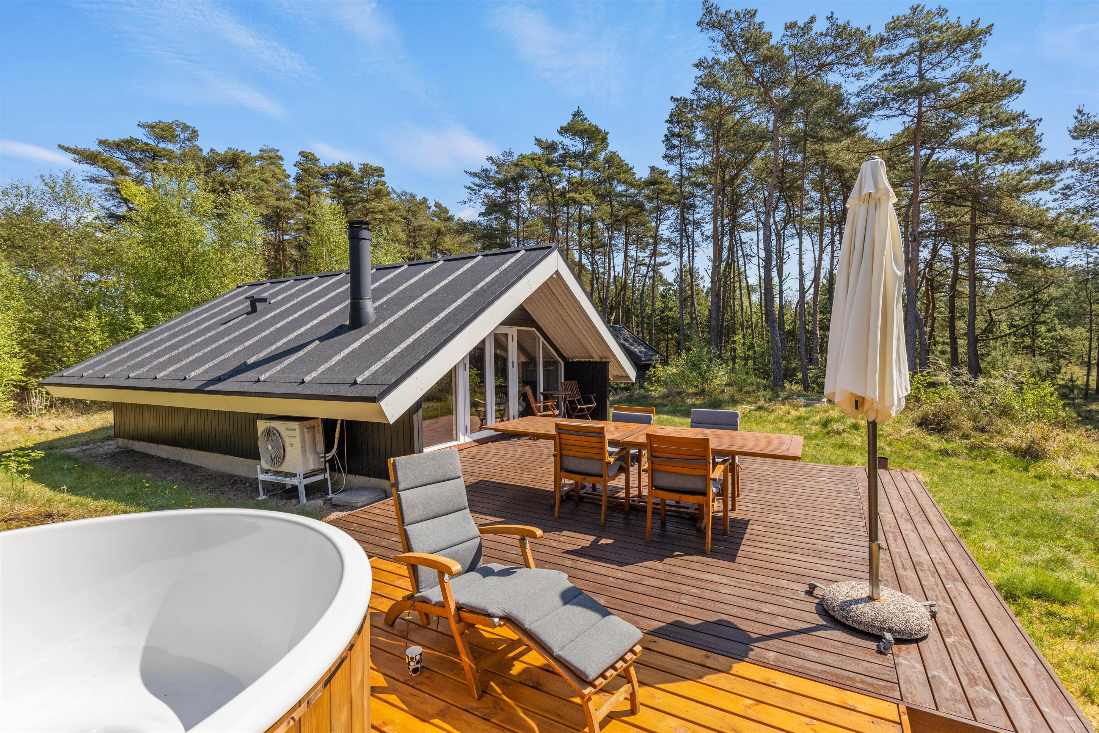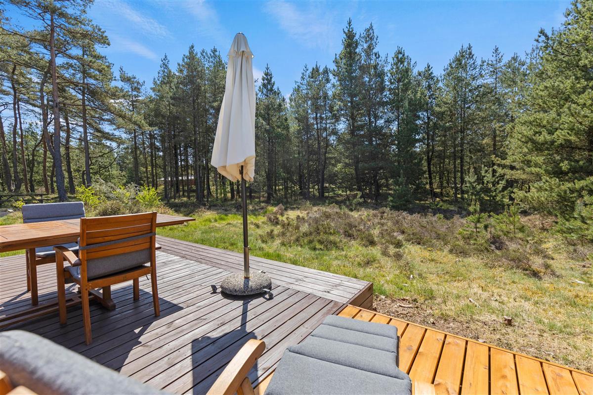 This recently renovated holiday home exudes its own unique charm and invites guests to enjoy many memorable holiday moments. It's a typical Danish summer house featuring light wooden panelling, exposed beams and floor-to-ceiling panoramic windows. The thoughtfully furnished living space with its integrated open-plan kitchen creates the perfect setting for shared activities.
