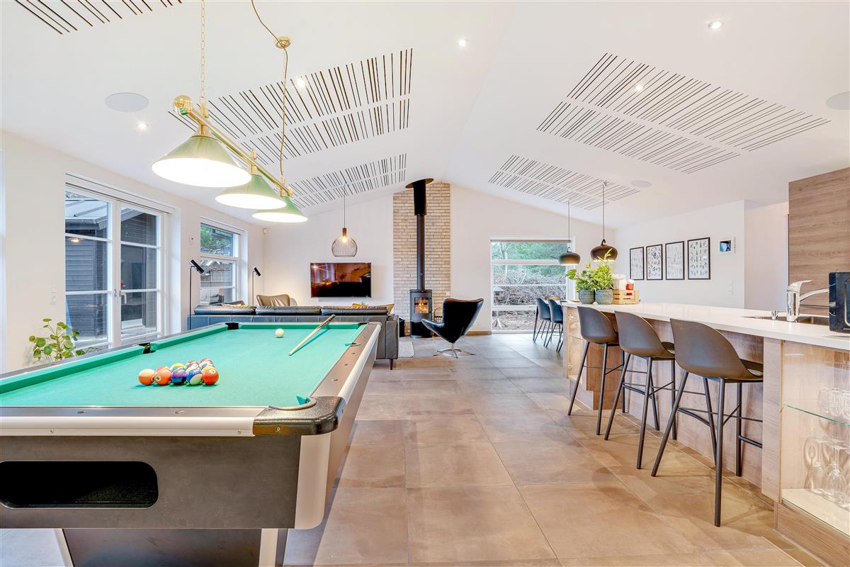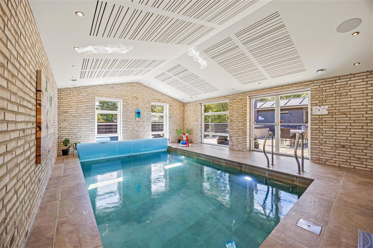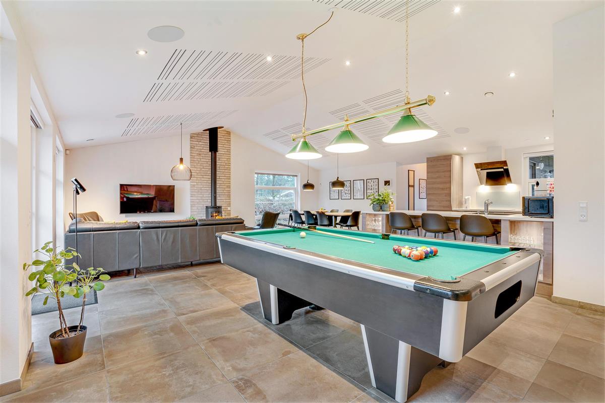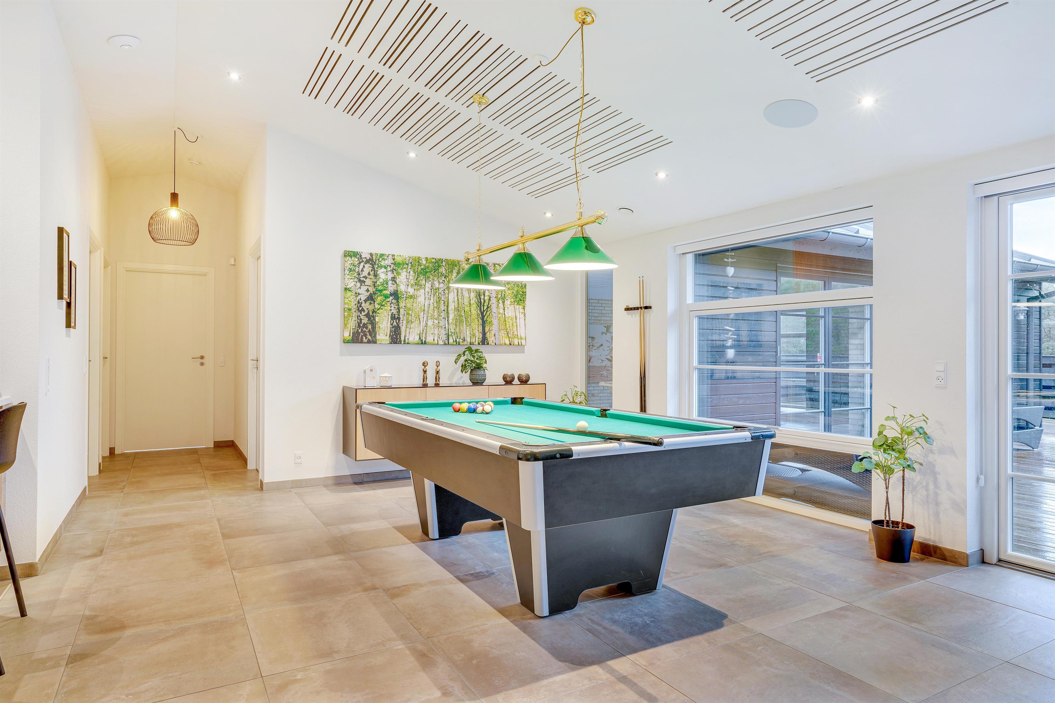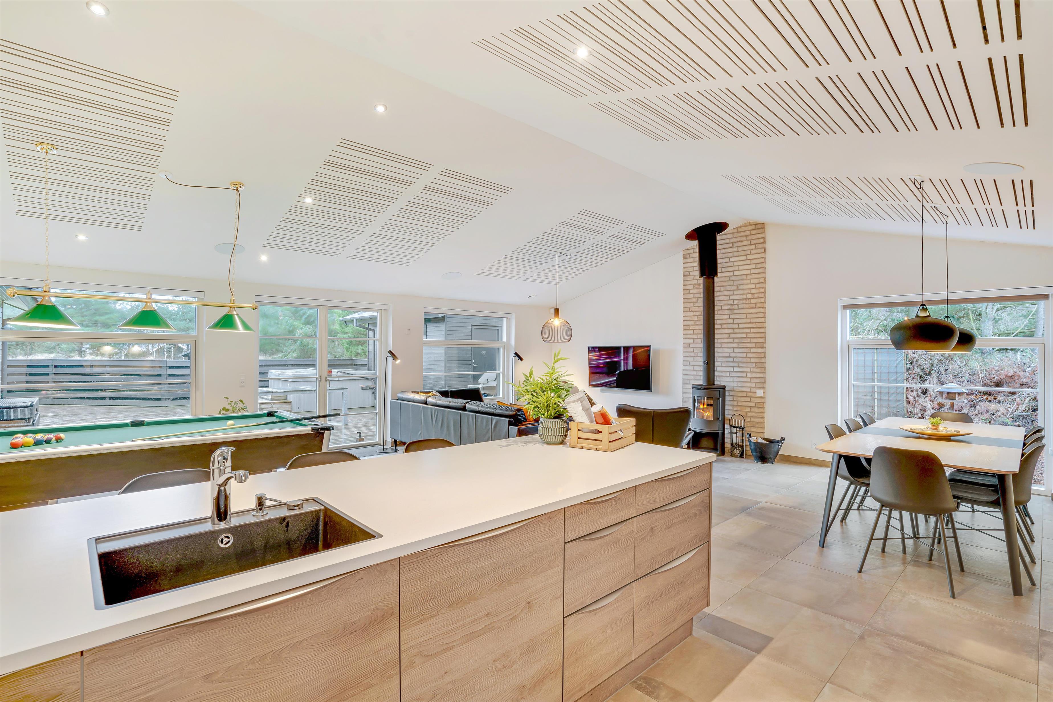 A wood-burning stove provides that essential hygge feeling, especially during the cooler months. Four bedrooms with double beds and two bathrooms, plus an additional shower in the pool area with sauna, offer ample space for everyone. Whether cooking together, relaxing, hiking, shopping or taking beach walks – the focus is clearly on unwinding and spending time together in beautiful surroundings.