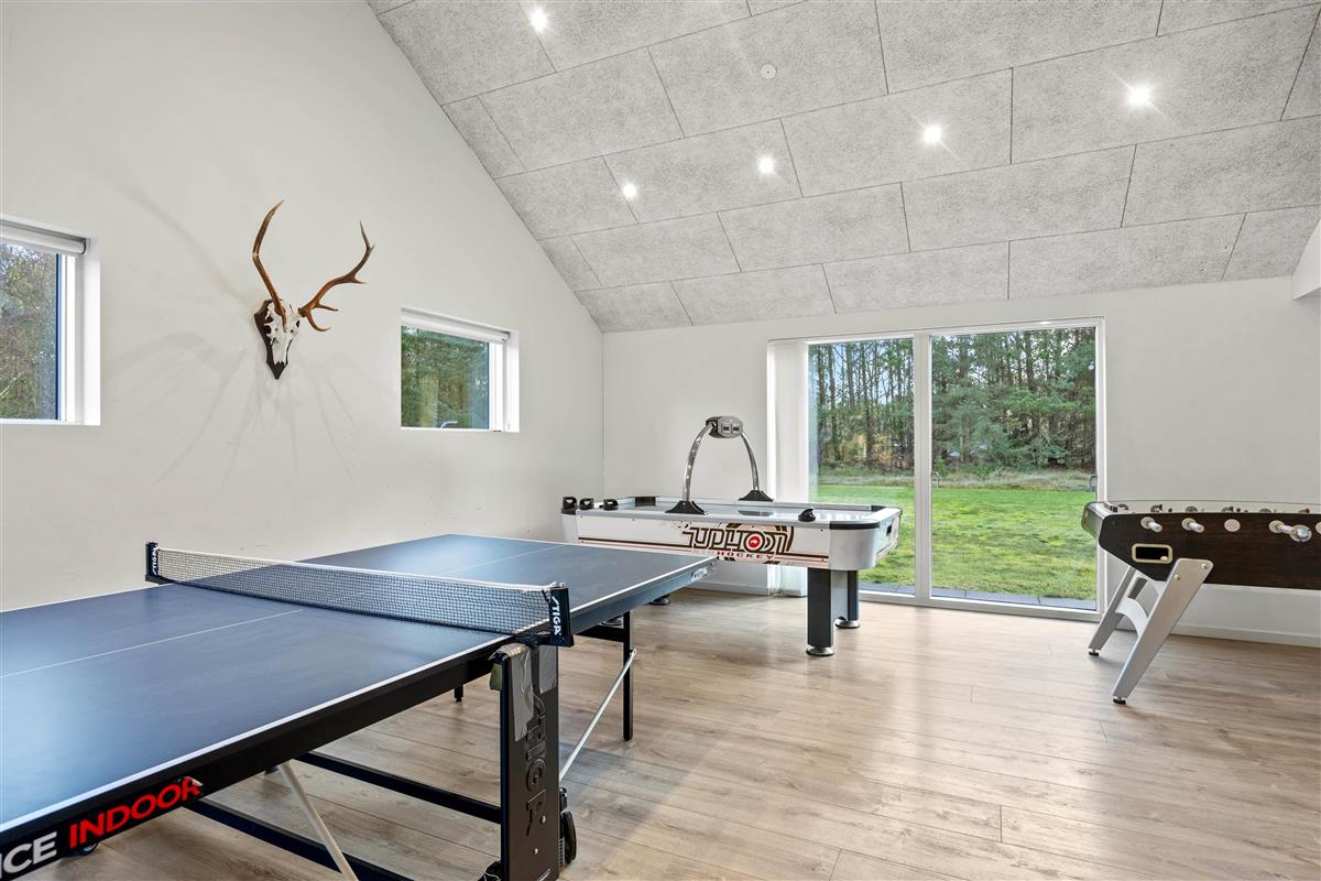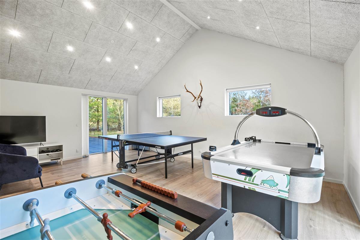 While some guests enjoy the warmth of the sauna and whirlpool, the more competitive members of your party can gather in the games room for table tennis, air hockey and table football. There's even an additional TV here! In the living room, you can make yourself comfortable on the large sofa, listening to the crackling of the wood-burning stove whilst watching the dancing flames.