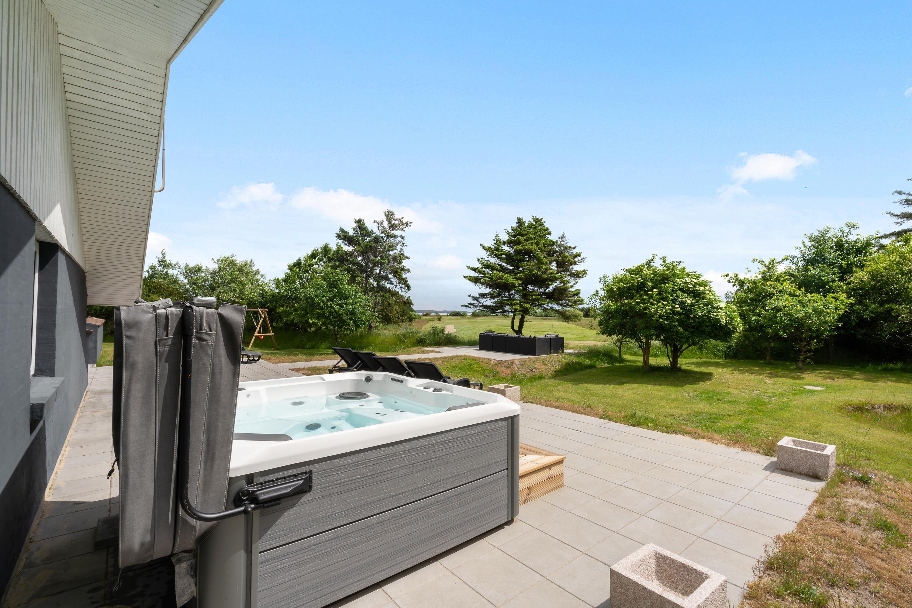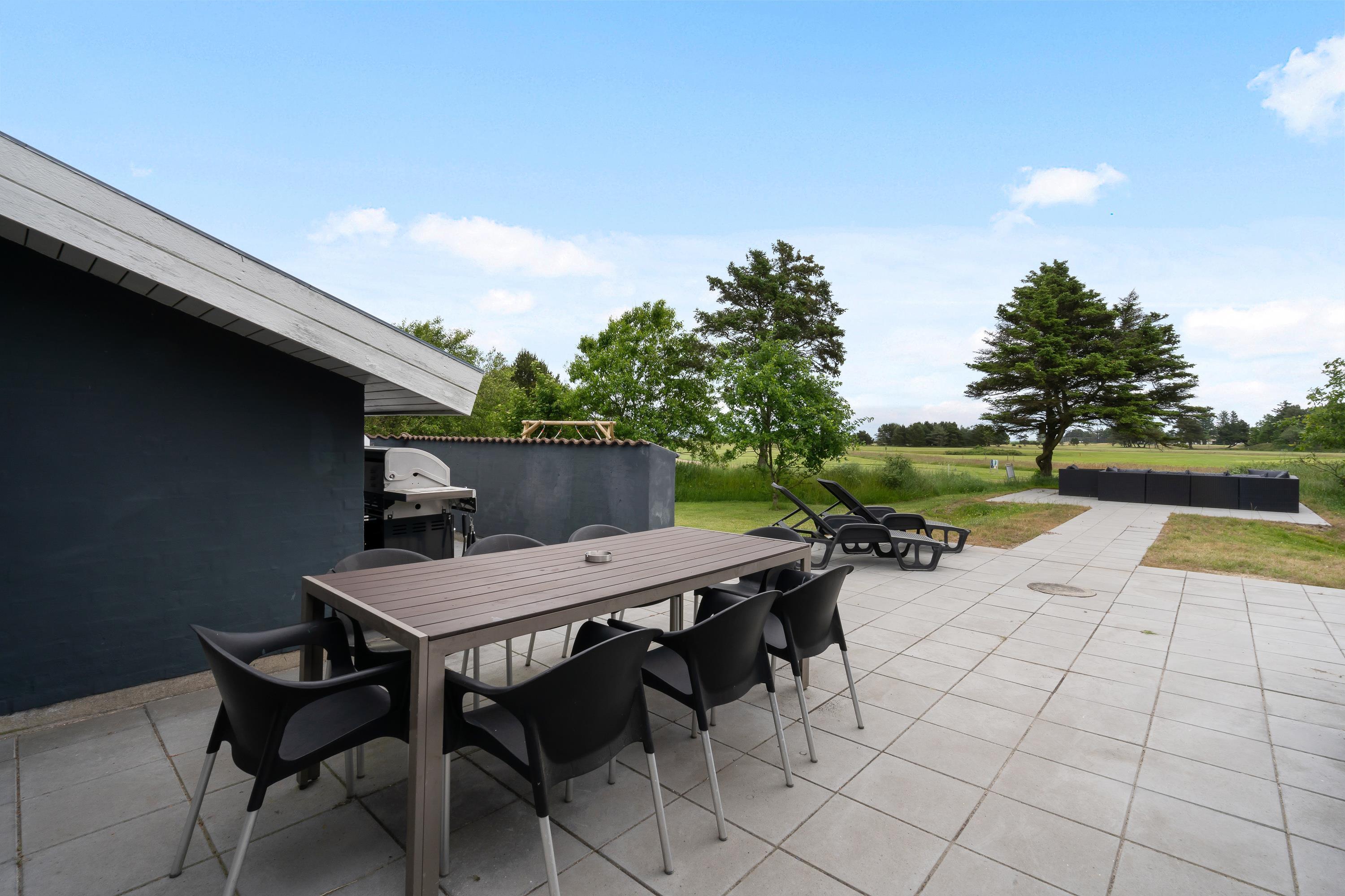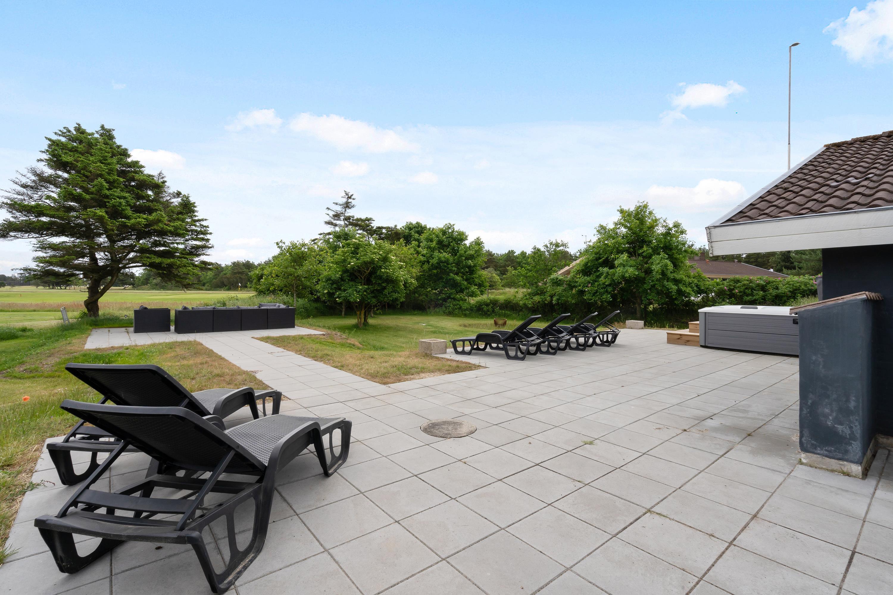 The holiday home is situated at the end of a cul-de-sac, where the grounds border the challenging 18-hole Ho golf course's 8th hole. Children will love the large natural grounds surrounding the holiday home, with plenty of garden space perfect for playing. There's also a sandbox and swings available. Multiple terraces offer comfortable garden furniture and sun loungers for relaxation, or you can enjoy a soothing soak in the hot tub. Fire up the barbecue and enjoy outdoor dining together.