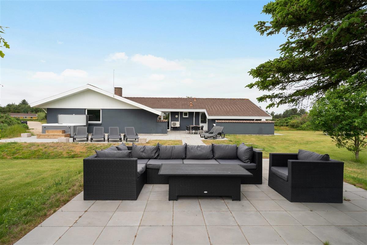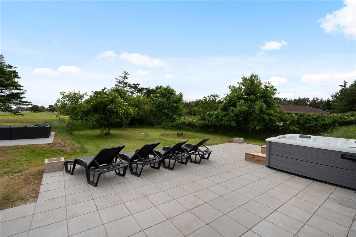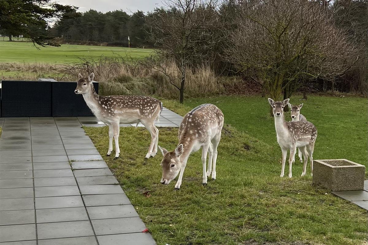 The holiday home is situated at the end of a cul-de-sac, where the grounds border the challenging 18-hole Ho golf course's 8th hole. Children will love the large natural grounds surrounding the holiday home, with plenty of garden space perfect for playing. There's also a sandbox and swings available. Multiple terraces offer comfortable garden furniture and sun loungers for relaxation, or you can enjoy a soothing soak in the hot tub. Fire up the barbecue and enjoy outdoor dining together.