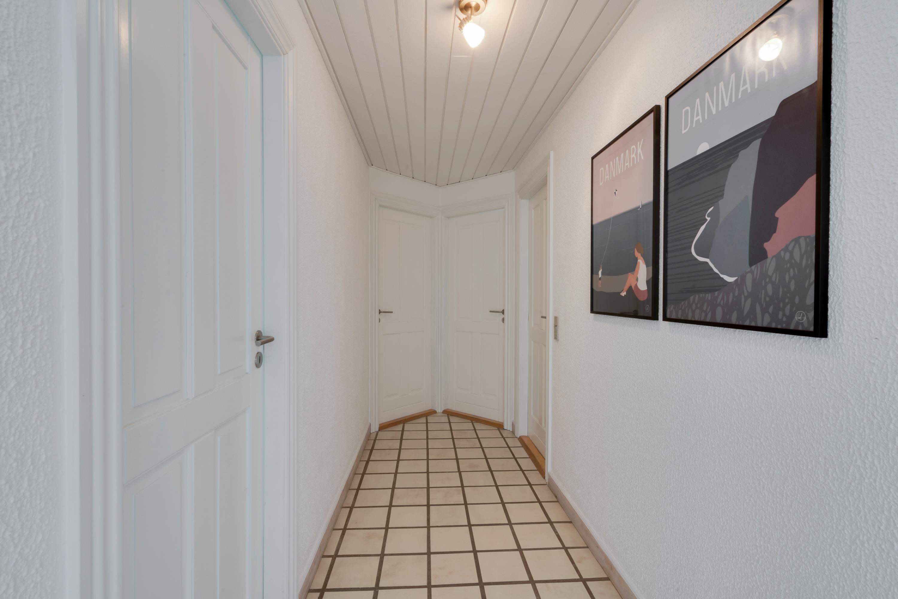 The well-equipped kitchen offers everything a cooking enthusiast could desire. Anglers will particularly appreciate the separate 160-litre freezer - plenty of room for the day's catch. The long dining table provides ample space for everyone to dine together comfortably. The dishwasher handles the cleaning up, leaving more time to spend together. The holiday home features 4 bedrooms with comfortable double beds and 1 bedroom with 2 single beds. Everyone will find their perfect spot for sleeping or simply relaxing. The bathrooms feature underfloor heating to keep feet cosy warm. A washing machine and tumble dryer are also provided in this beautiful holiday home.