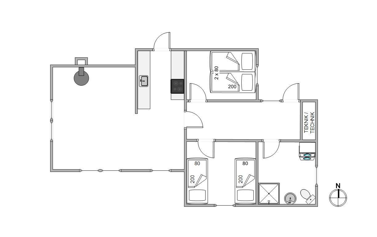 Im Schlafzimmer findet ihr ein Doppelbett, während das zweite Schlafzimmer zwei Einzelbetten bietet. Damit ist das Haus ideal für Familien mit Kindern oder kleine Gruppen von Freunden.