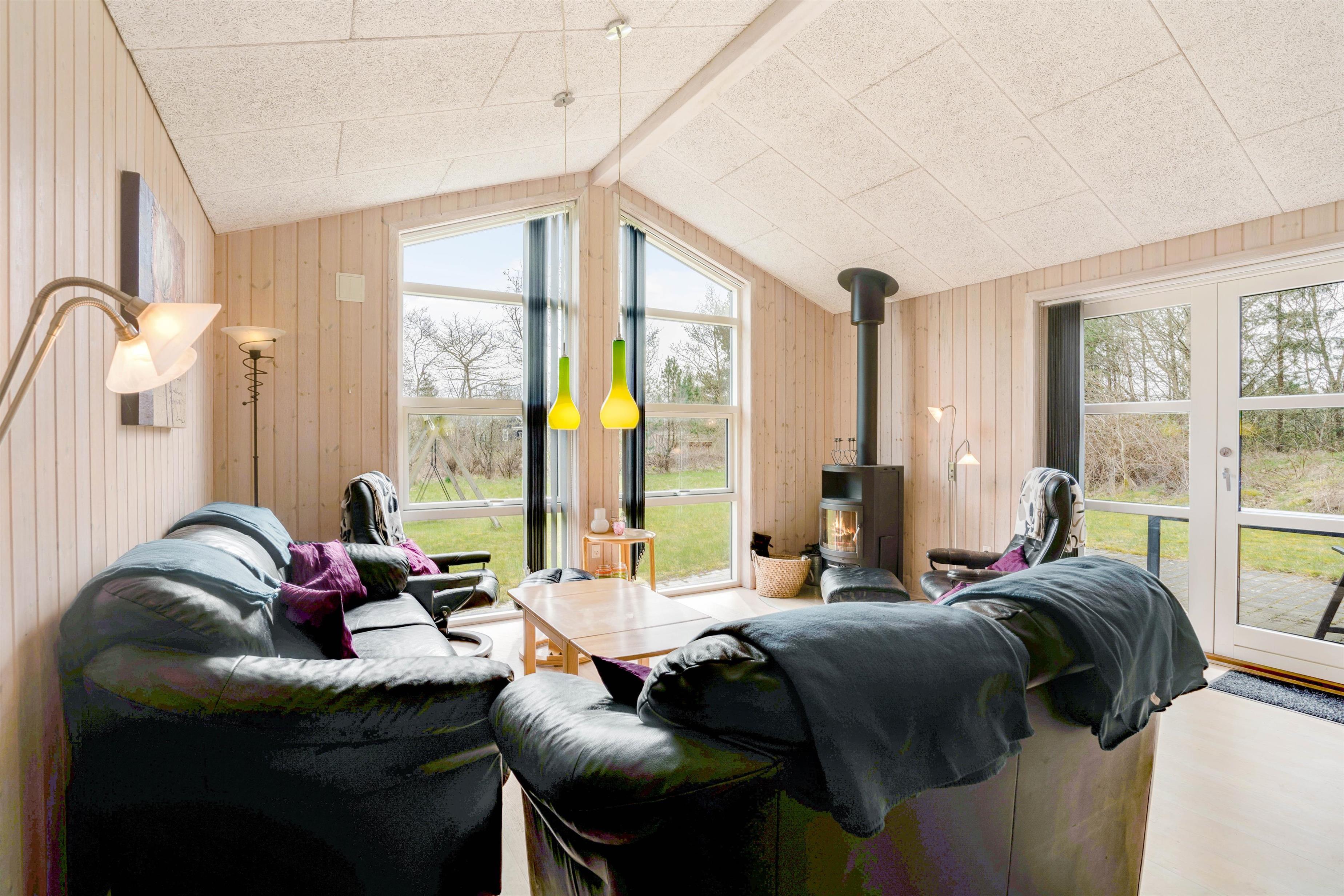 Time moves a little slower at this classic holiday home at Fyrrevænget 47 in Ho, allowing you to switch straight into relaxation mode. The living and dining area with its cosy wood-burning stove and the bathroom with its indulgent whirlpool help you leave the stresses of everyday life far behind.