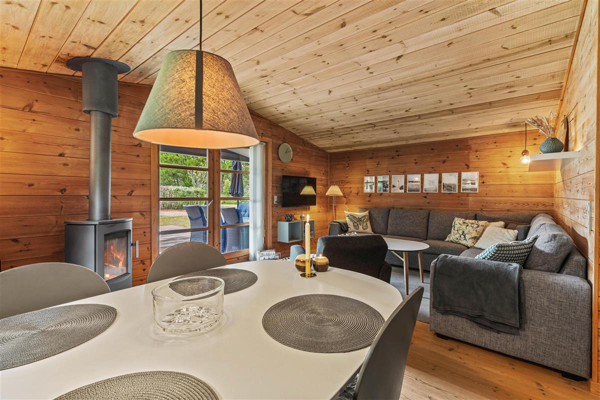 Das klassisch eingerichtete Ferienhaus besticht durch warme Holzwände und eine entspannte Atmosphäre. Im Wohnzimmer könnt ihr den Kaminofen anheizen, ein gutes Buch lesen, einen Film im Fernseher schauen oder einen Spieleabend verbringen. Die Wärmepumpe sorgt das ganze Jahr über für angenehme Temperaturen. In der Küche findet ihr alles Nötige für die Zubereitung eurer Mahlzeiten – allerdings gibt es keine Spülmaschine. Dafür bleibt Zeit, um gemeinsam den Abwasch zu erledigen und die Eindrücke des Tages Revue passieren zu lassen.