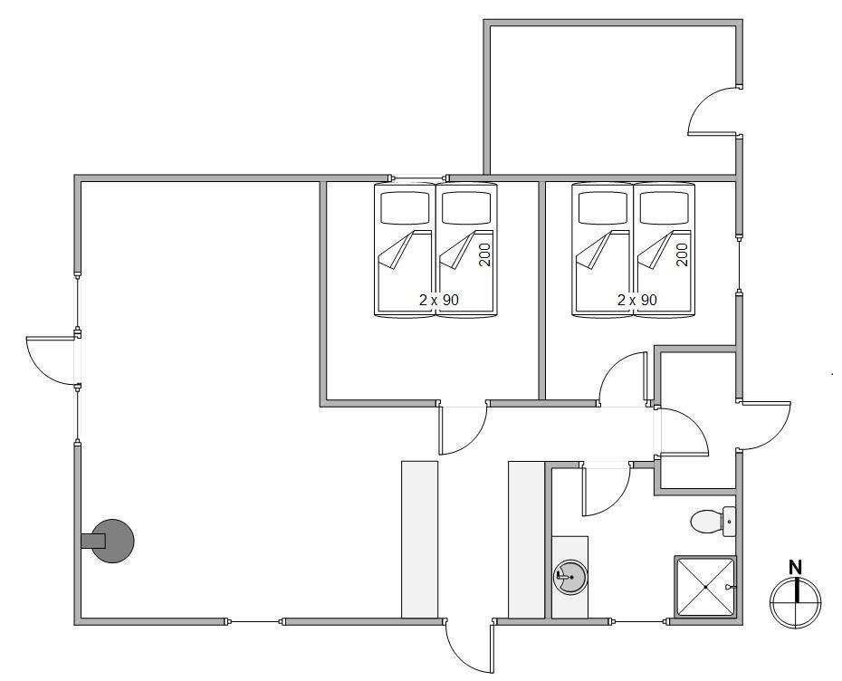 Das Ferienhaus verfügt über 2 Schlafzimmer – eines mit Doppelbett und eines mit Schlafsofa – sowie ein Badezimmer mit Fußbodenheizung.