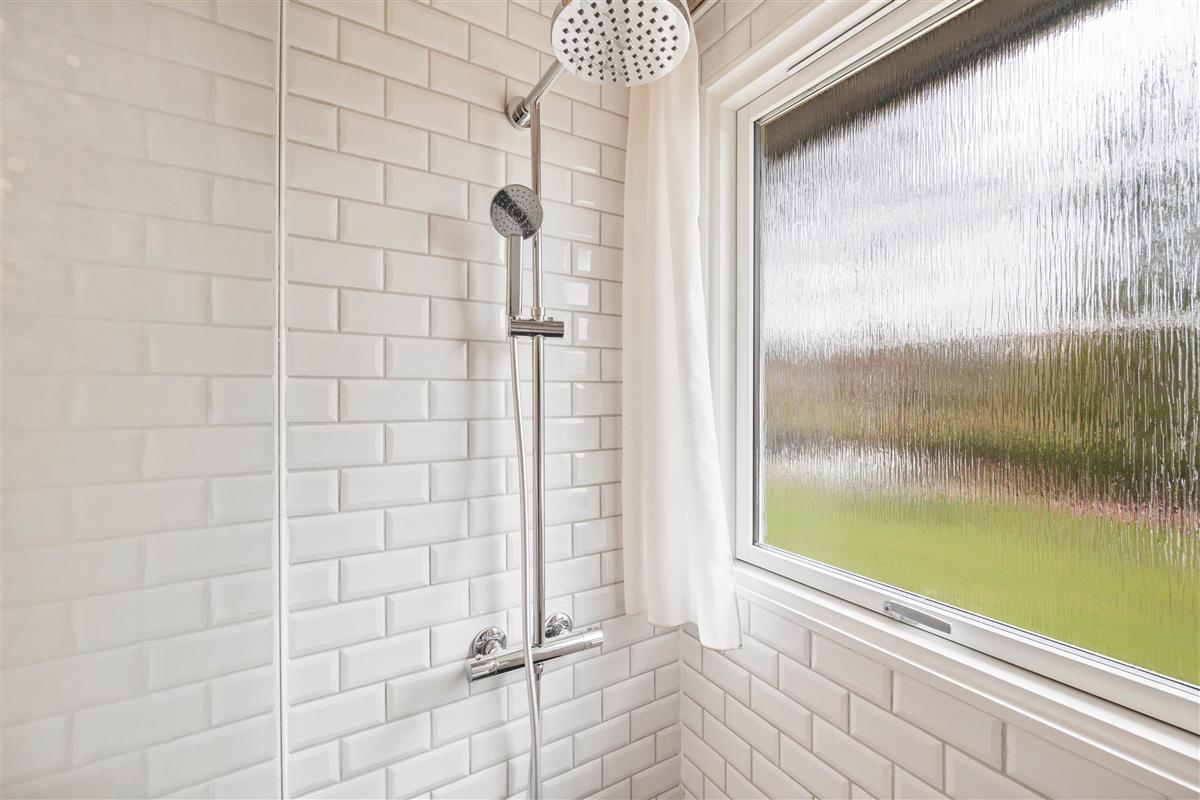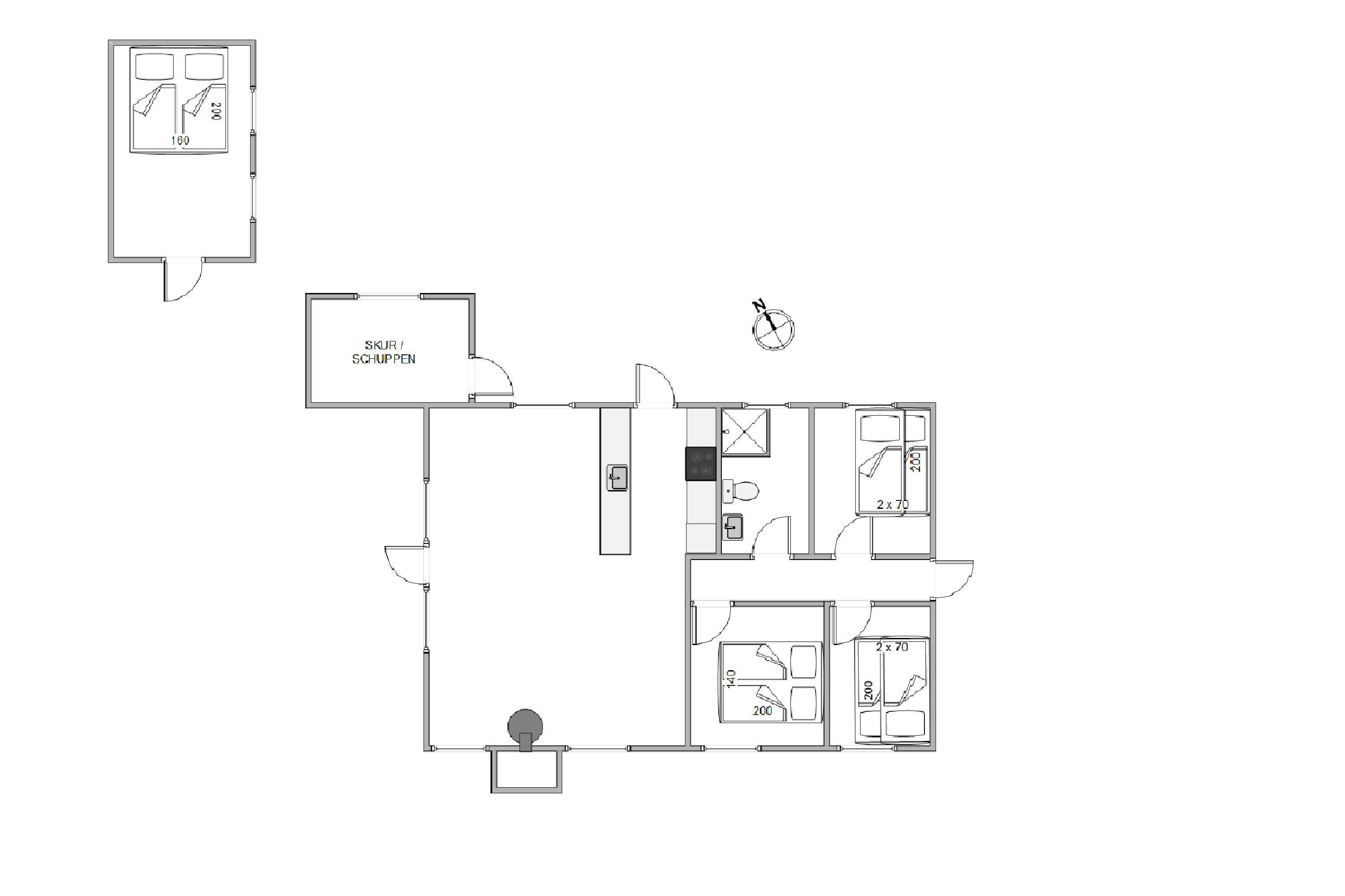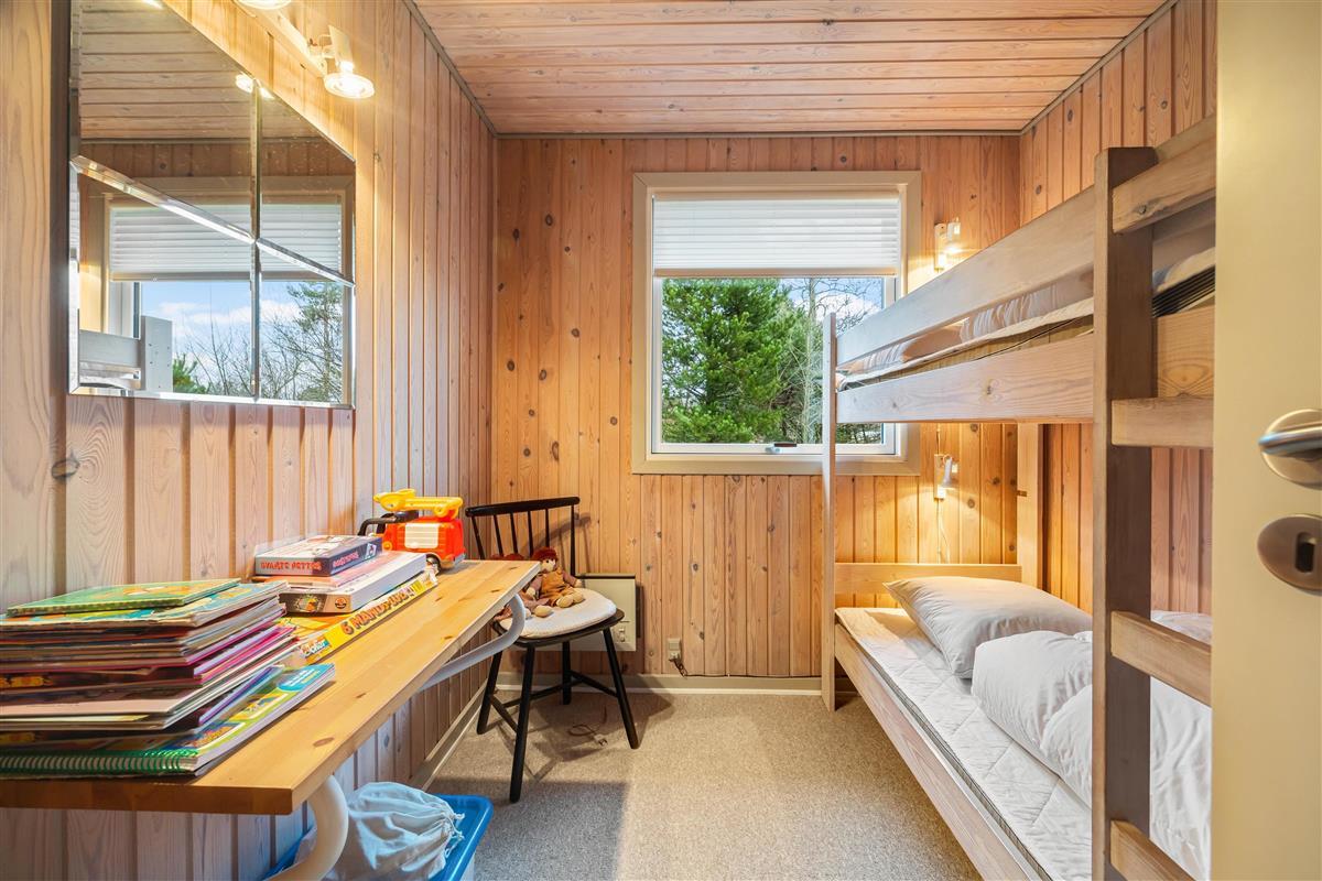 The house has three bedrooms - two with bunk beds and one with a double bed. Here you can retreat and unwind, surrounded by the peace of nature. The modernised bathroom welcomes you in the morning with underfloor heating and features a spacious shower enclosure.