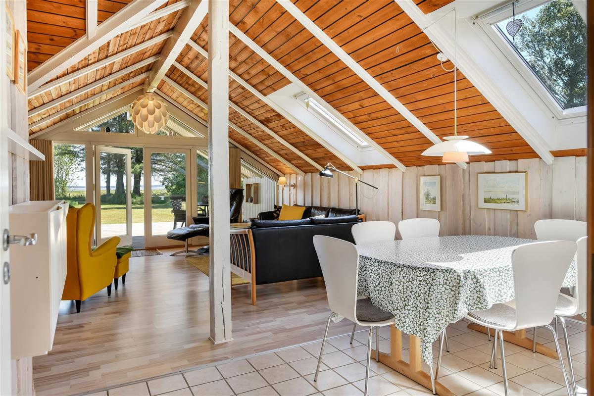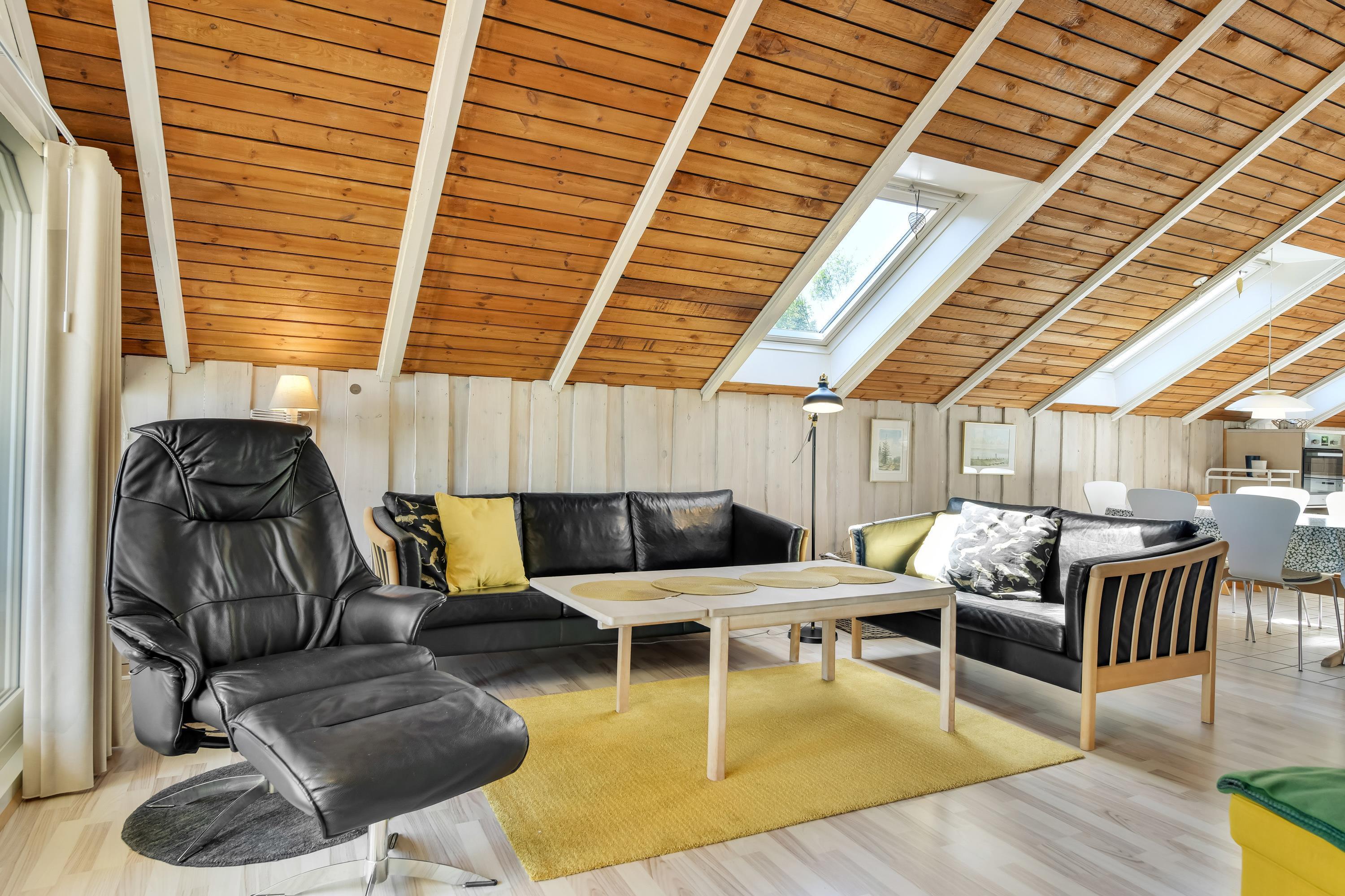 Multiple skylights flood the holiday home with natural light, creating a bright and welcoming atmosphere. The tasteful furnishings and well-designed layout contribute to a cosy, comfortable feeling throughout.