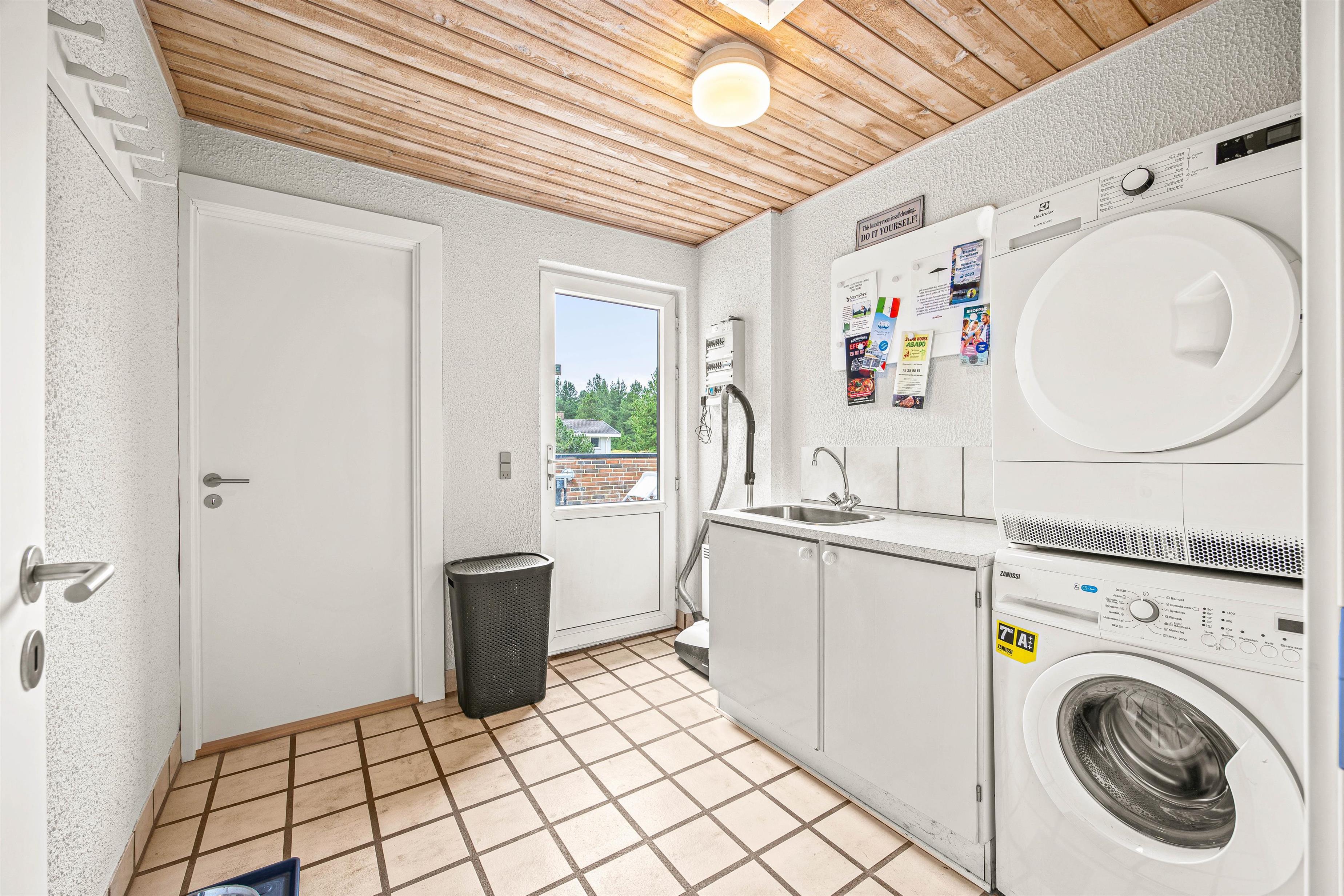 The five bedrooms feature comfortable double beds where you can enjoy leisurely lie-ins without setting an alarm. A separate utility room houses the washing machine and tumble dryer. The holiday home also features an electric car charging point. The tiled floor in the living area benefits from underfloor heating. For general heating, we recommend using the cost and energy-efficient heat pump.