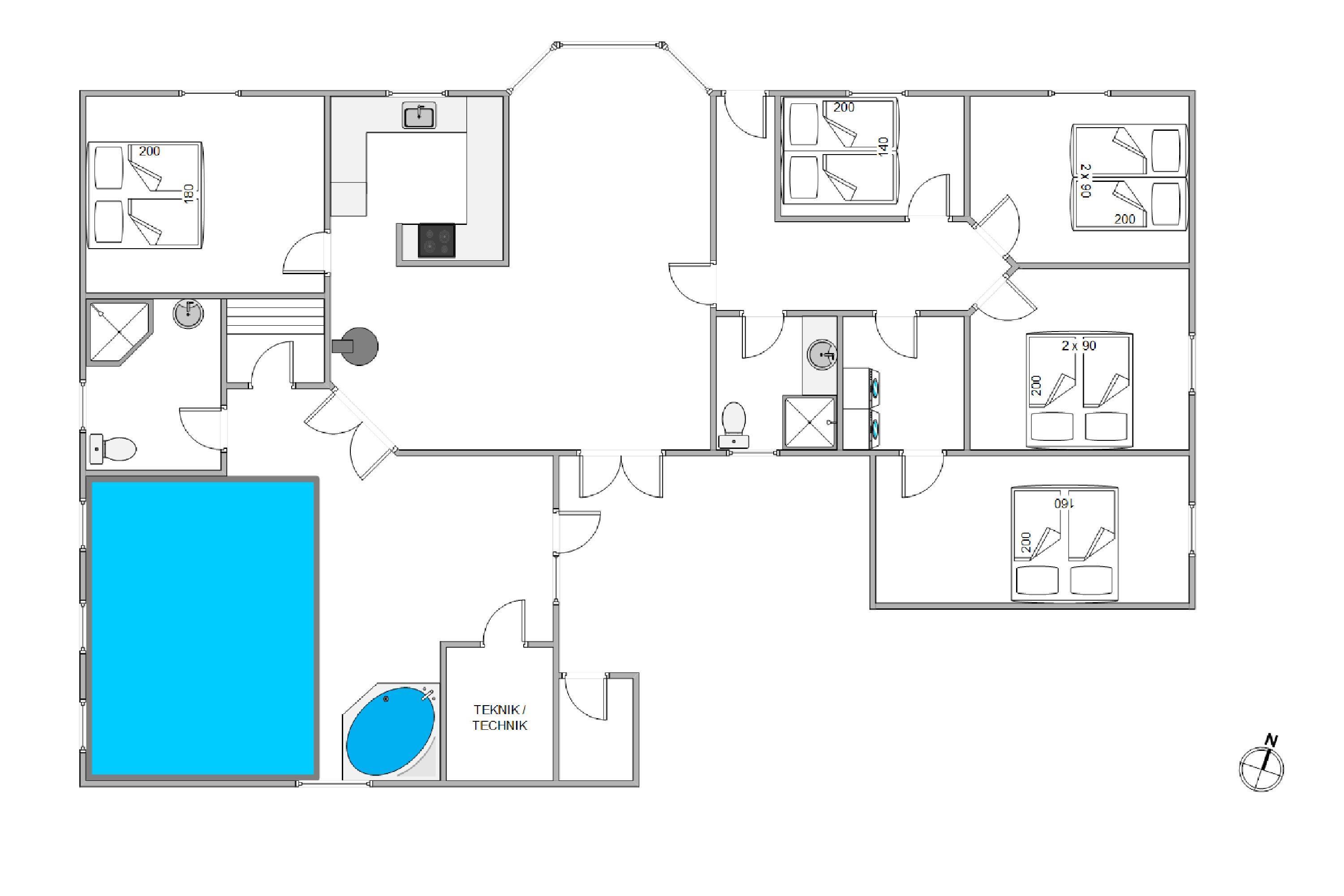 The highlight of this holiday home is the large pool room, which also features a sauna and whirlpool. The 18-square-metre pool is perfect for swimming and splashing about. The sauna and whirlpool provide the ideal wellness experience. The pool room connects directly to one of the two bathrooms - particularly convenient for showering straight before or after using the sauna or pool.