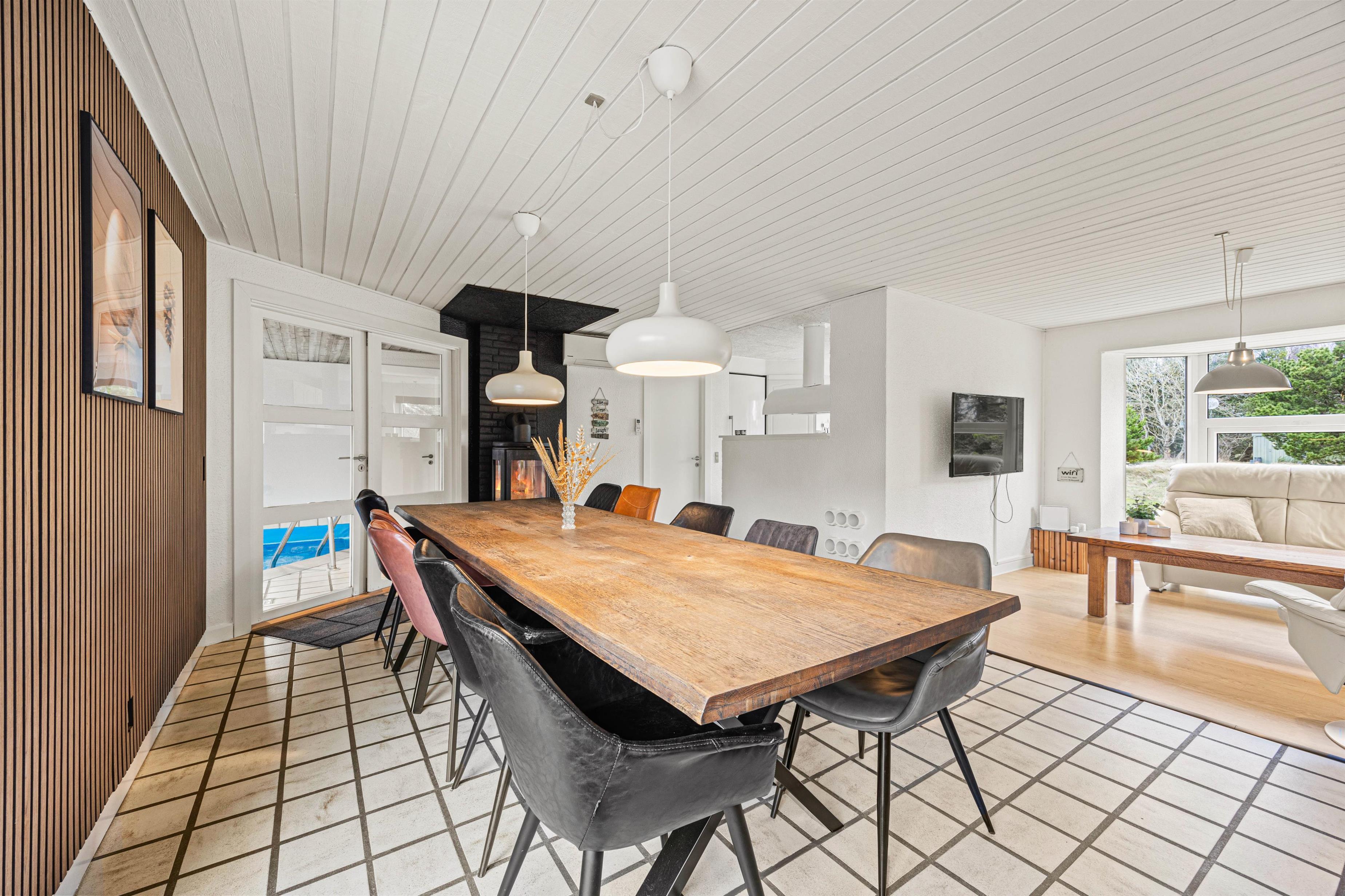 This beautiful holiday home with swimming pool, sauna and whirlpool is located in the peaceful holiday destination of Ho, just a few minutes' walk from Blåvandshuk Golf Club. Renovated in 2023, it offers 182 square metres of space, comfortably accommodating 10 people and 2 dogs. The perfect holiday home for extended family gatherings or friends travelling together.