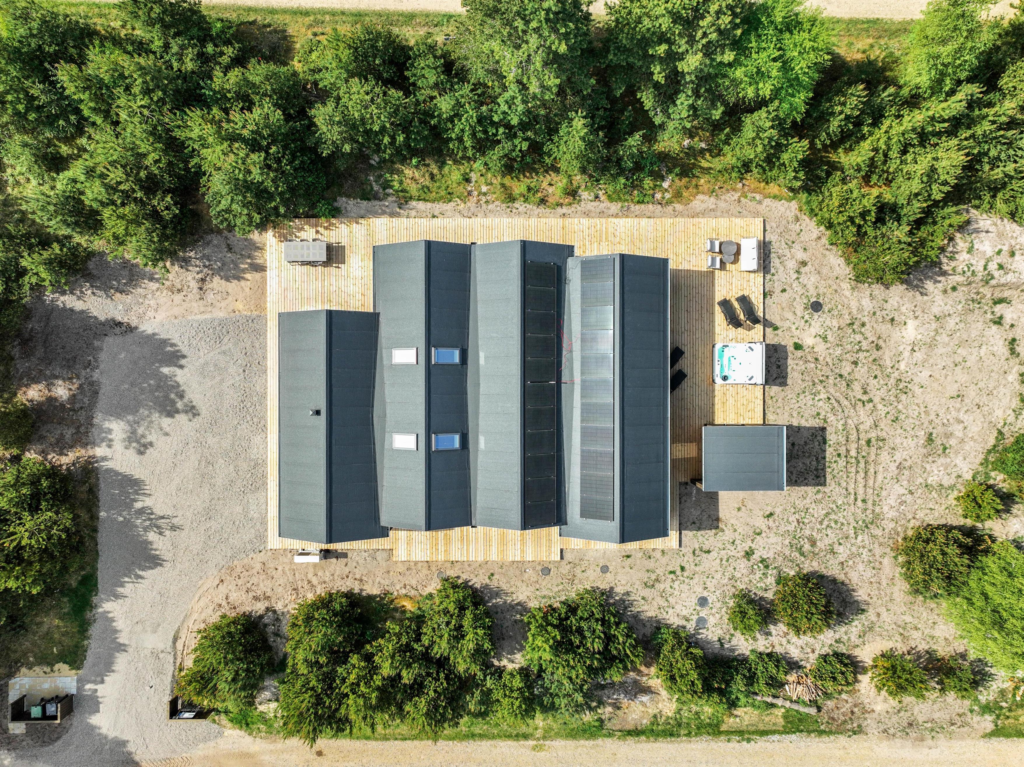An efficient heat pump ensures this cosy wooden house maintains a pleasant temperature throughout.