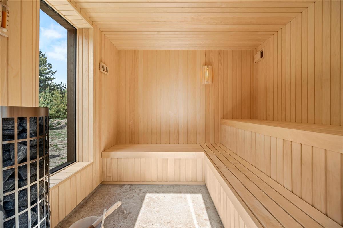 If you're looking for a luxurious holiday home for 12 people where you can enjoy Western Jutland's magnificent nature with outdoor hot tub, outdoor sauna and outdoor shower, you'll find it all in this spacious, beautiful holiday home at Vesterballevej 26 - even table tennis and pool table are included.