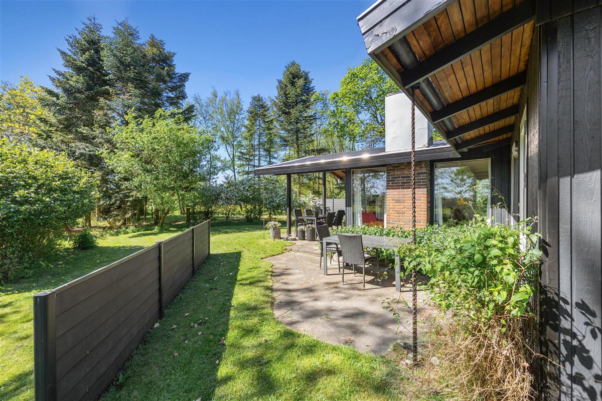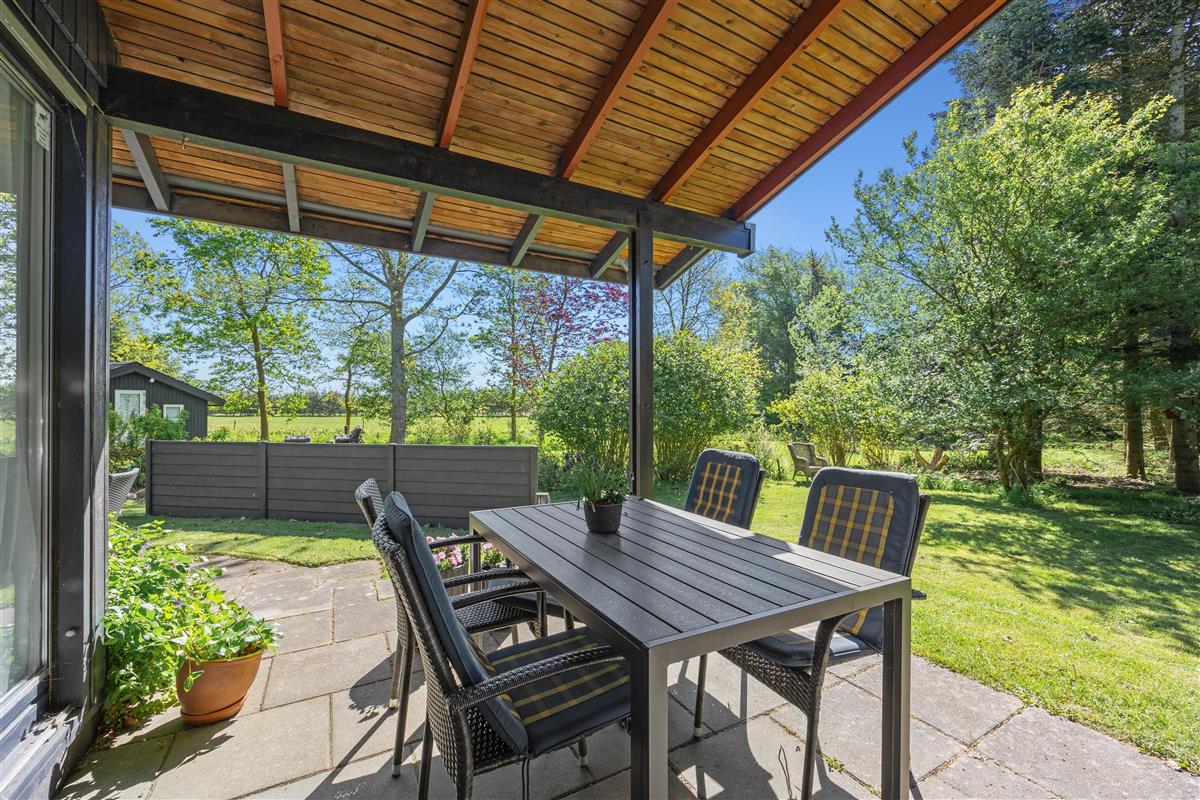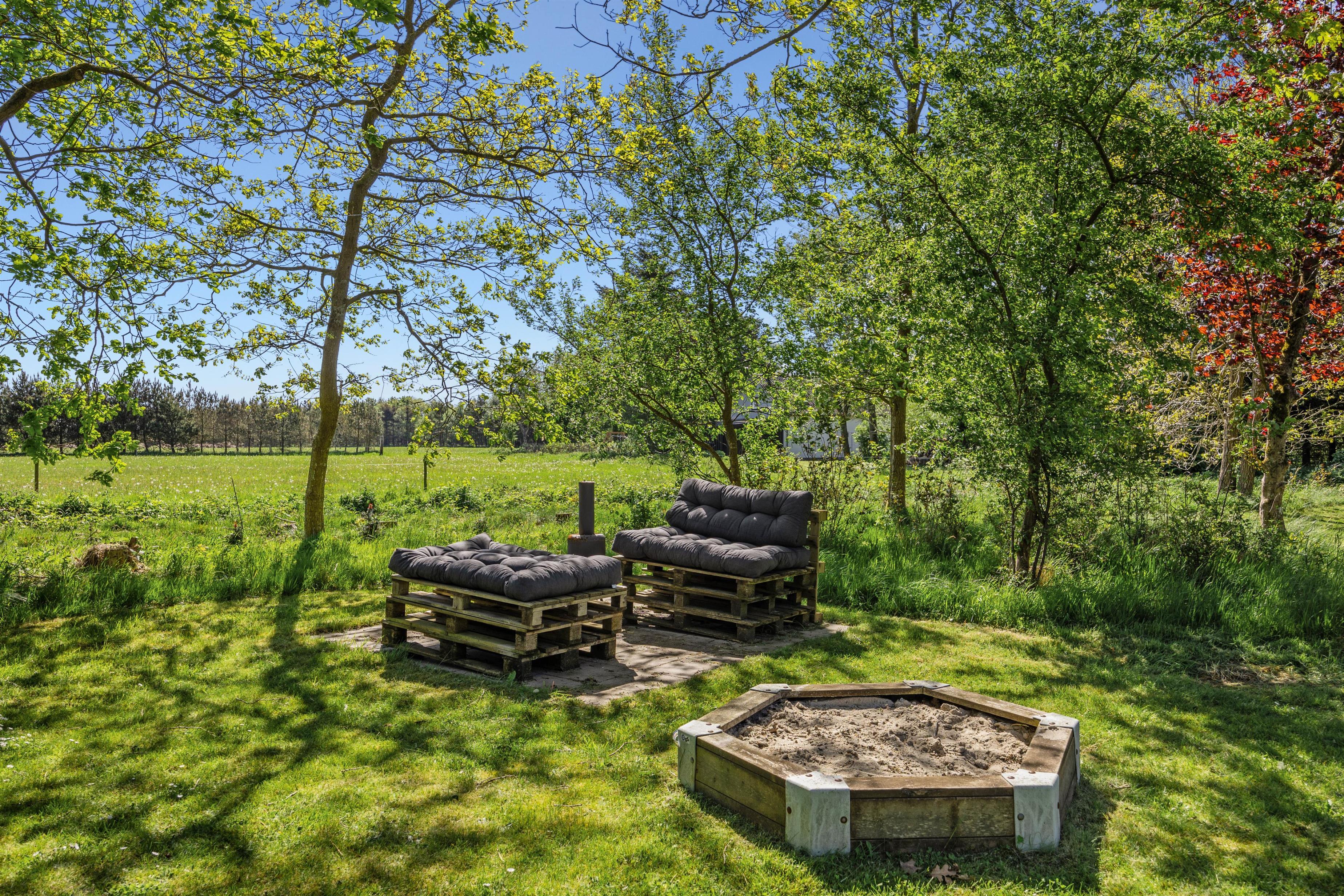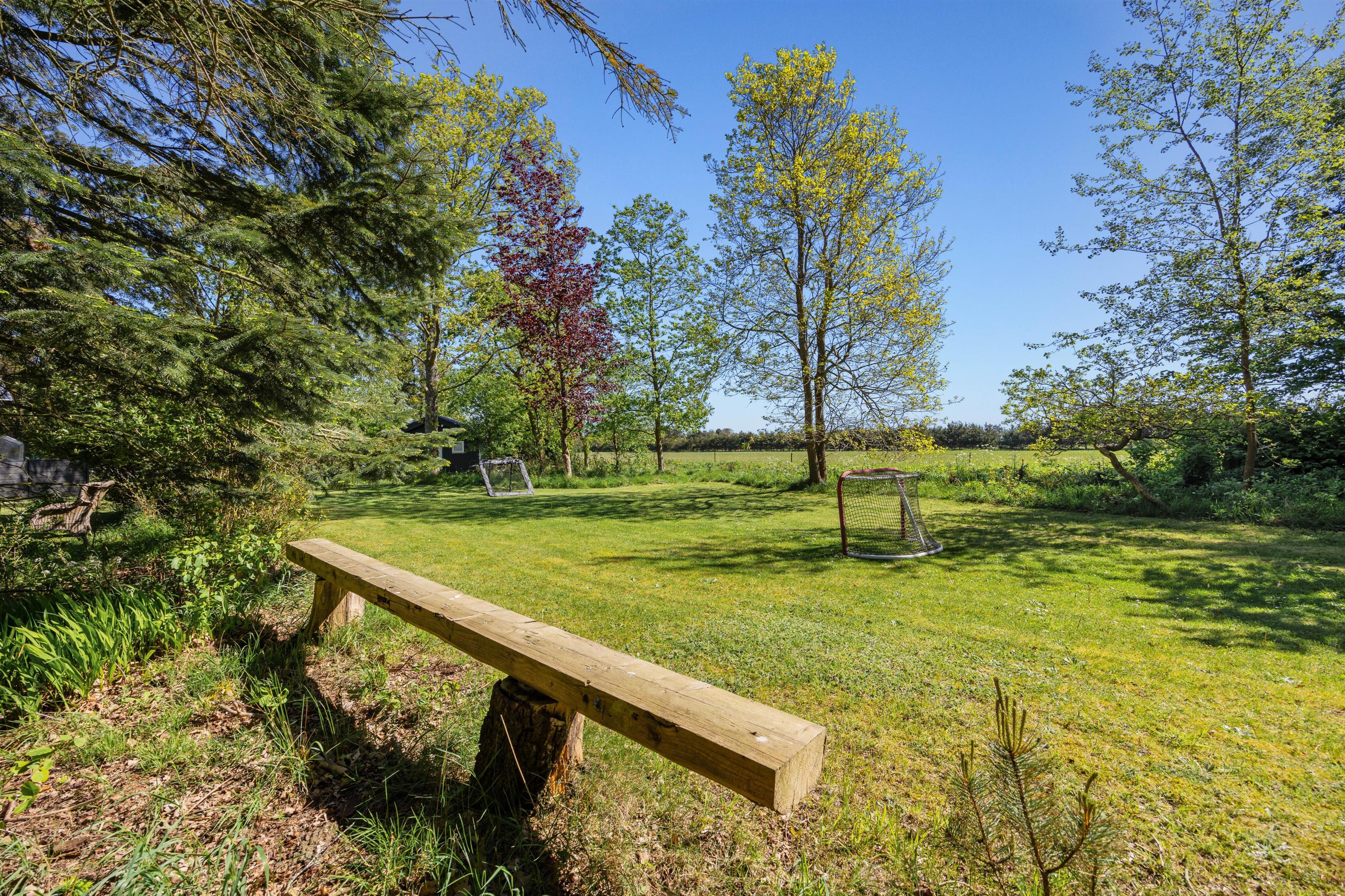 The 2,794-square-metre lawn, surrounded by tall trees, is perfect for relaxation and play. Children can enjoy themselves in the sandpit and playhouse, while you unwind on one of the terraces — open, screened, or covered. Enjoy warm summer evenings around the fire pit in the garden with a glass of wine.