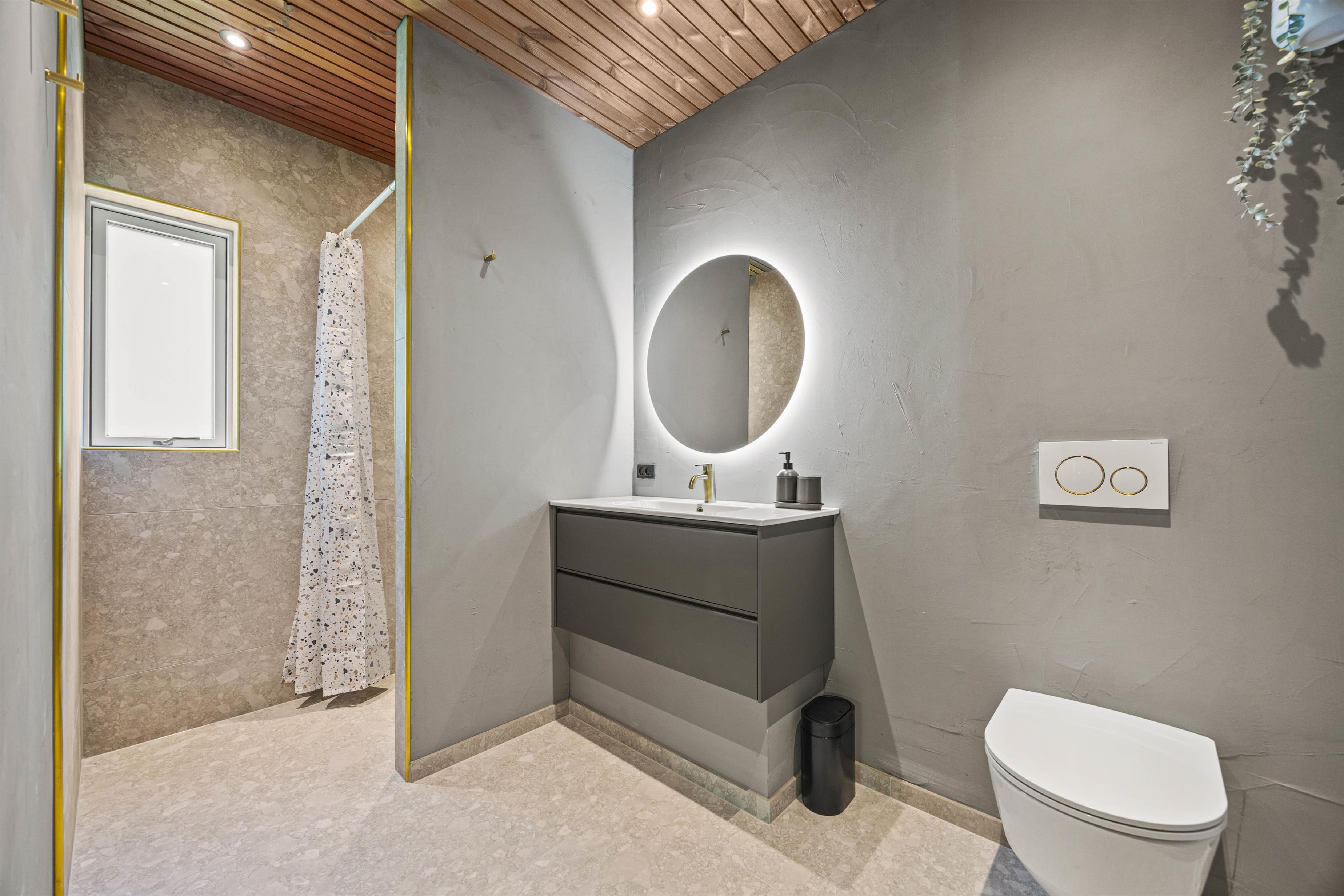 The entire house features underfloor heating, and the heat pump ensures a comfortable indoor climate throughout your stay.