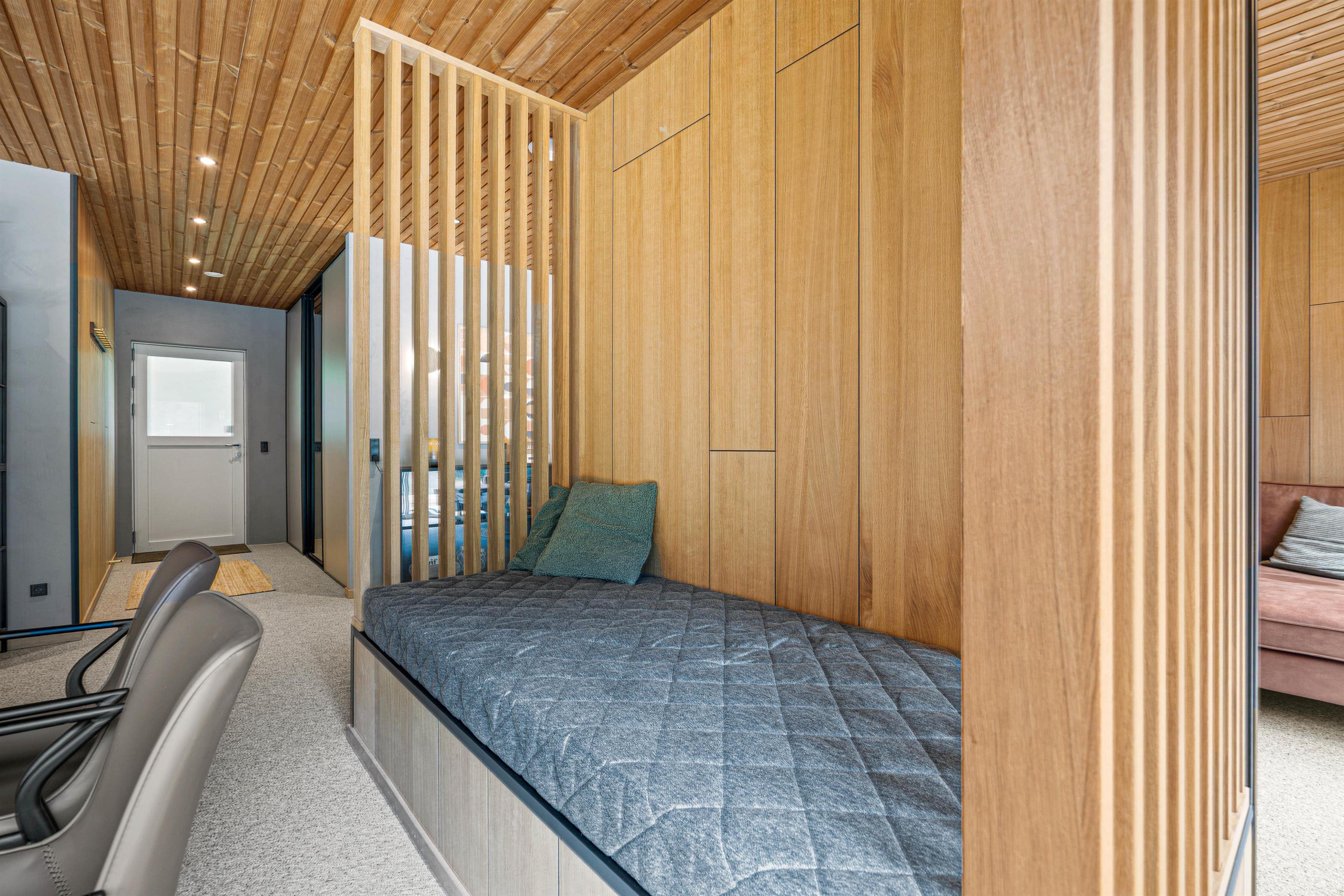 After dinner at the long table near the traditional sleeping alcoves, where children can take a nap or snuggle up, you can relax on the large sofa to watch a good film or read an engaging book - or perhaps discuss exciting adventures planned for the next day. The large floor-to-ceiling windows bring you closer to nature and flood the space with natural light.