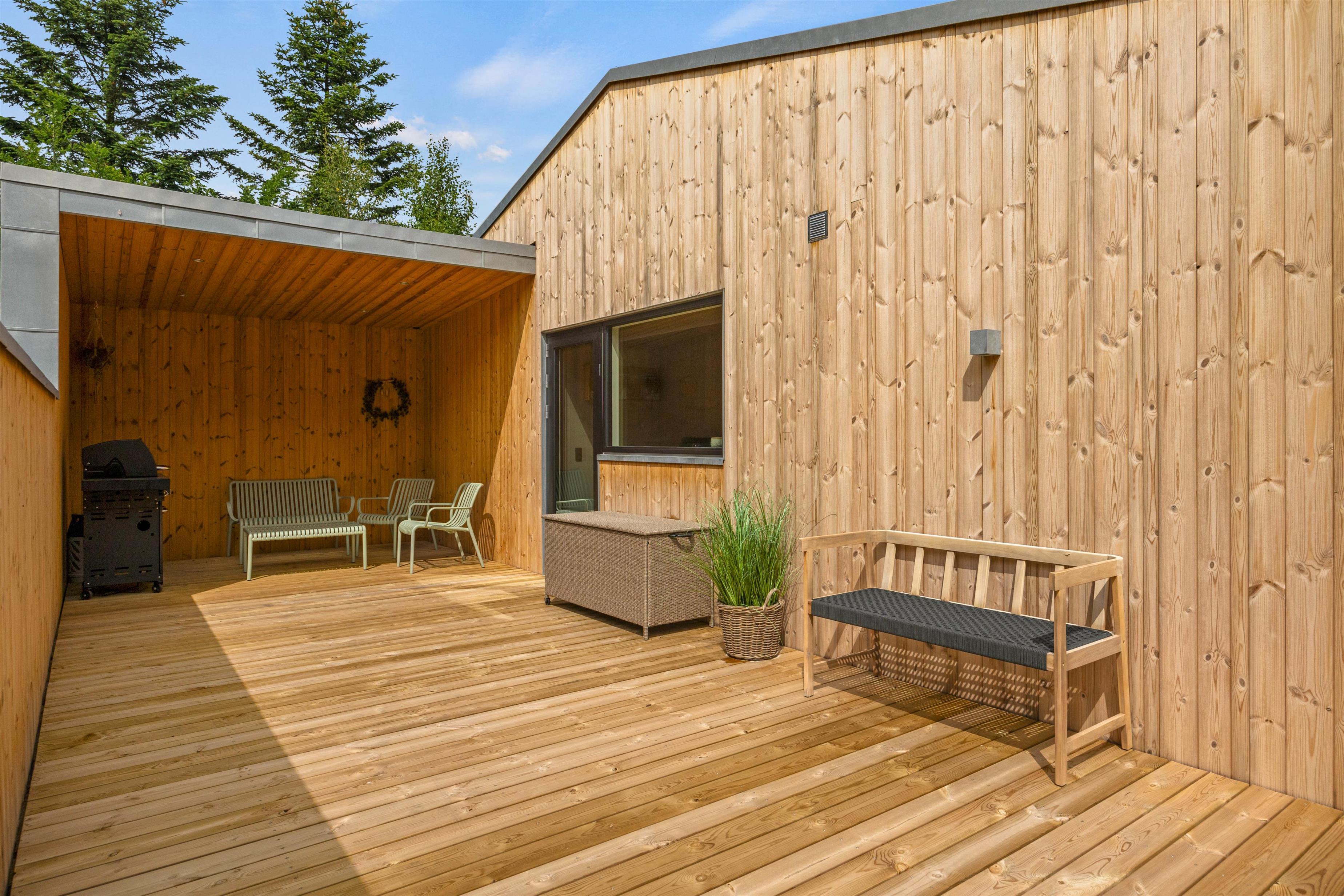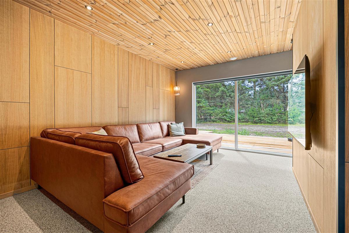The stylish holiday home offers 165 square metres of space for 8 people, who can enjoy an unforgettable holiday in a quality holiday home featuring a games room, outdoor hot tub and outdoor sauna. The bright and rustic Nordic-style furnishings create a wonderful atmosphere with first-class comfort throughout.