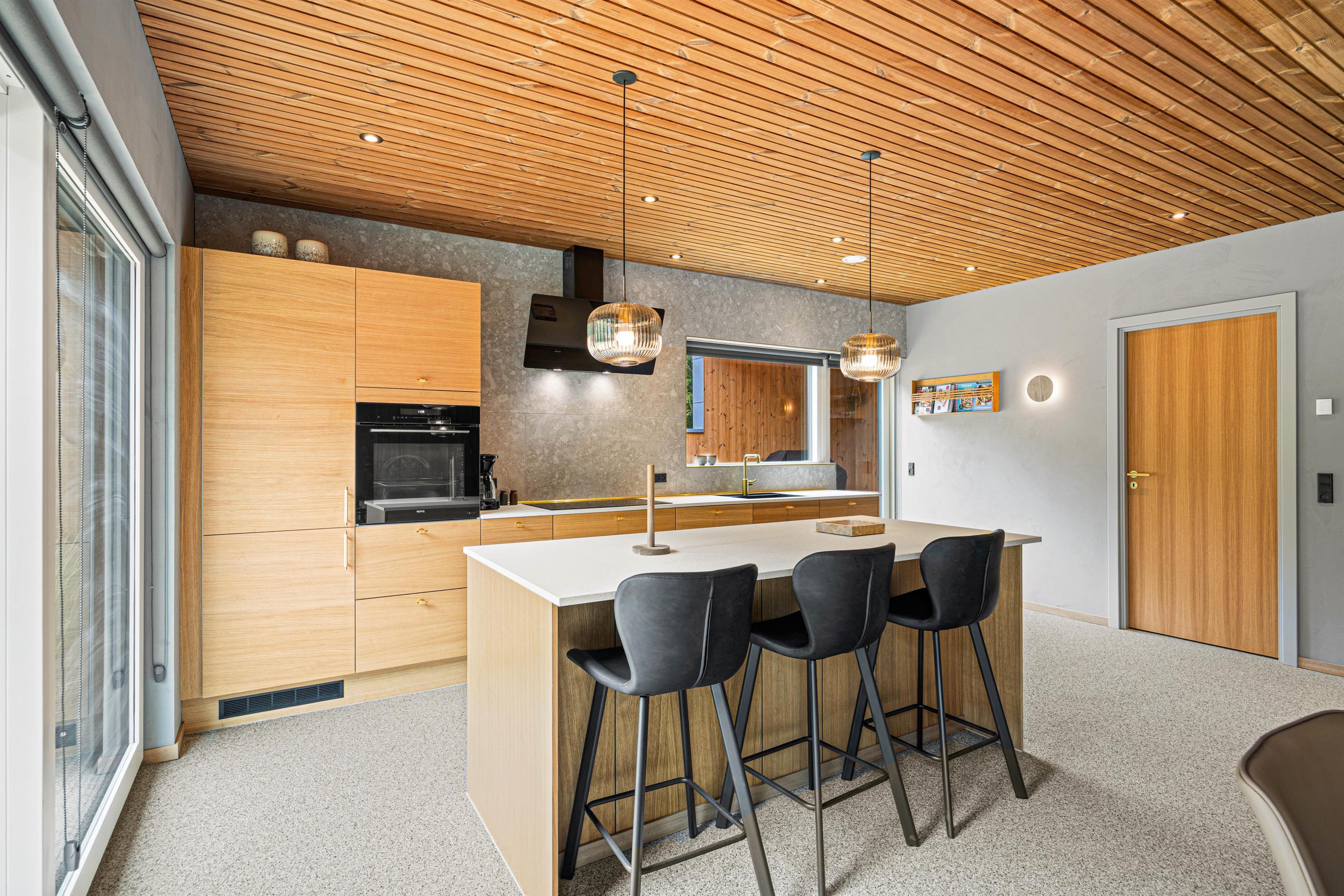 In the large, bright kitchen, you can cook together or relax with a glass of wine while the family chef works their magic at the stove. The kitchen is fully equipped with a microwave, dishwasher and a separate 90-litre freezer, providing plenty of space for frozen goods.
