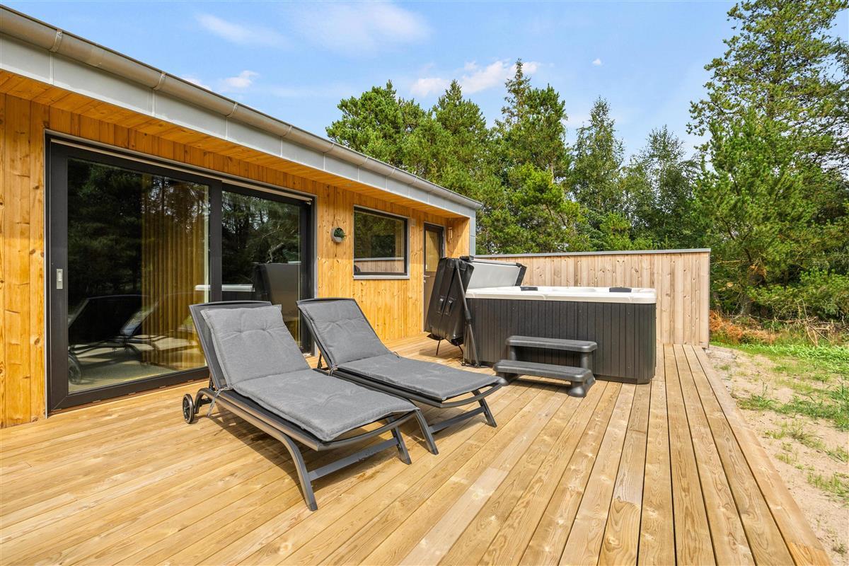 Weather permitting, you can relax on the sheltered, partially covered terrace - the garden furniture, outdoor hot tub and outdoor sauna await your enjoyment on a beautiful summer's day or whenever you fancy. Treat yourself to a soak in the hot tub after dark, gazing at the beautiful starry sky at Denmark's westernmost point. Both the terrace and grounds offer plenty of space for recreation. Sip a chilled glass of rosé or a quality local beer and enjoy life - that's exactly what this house was built for.