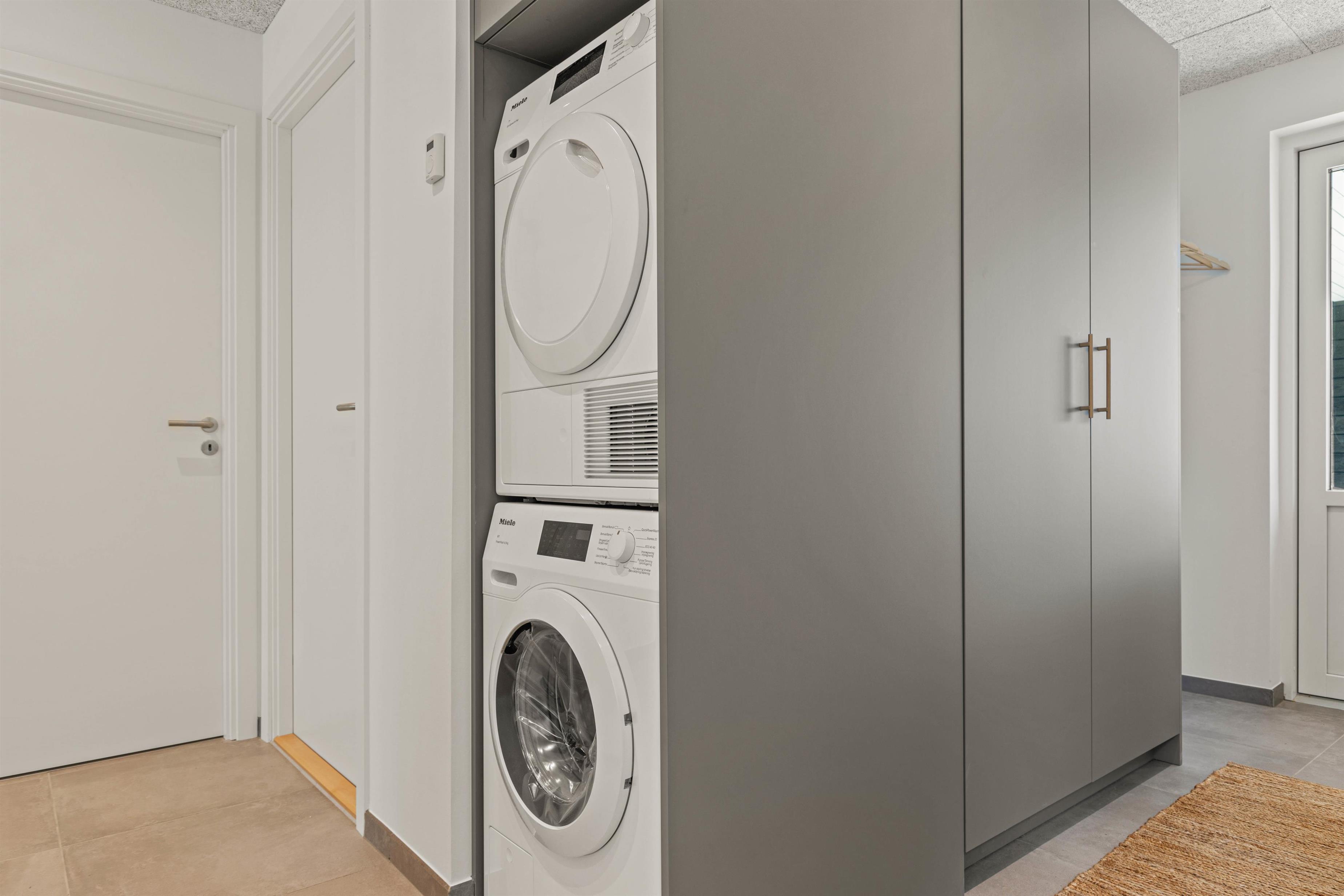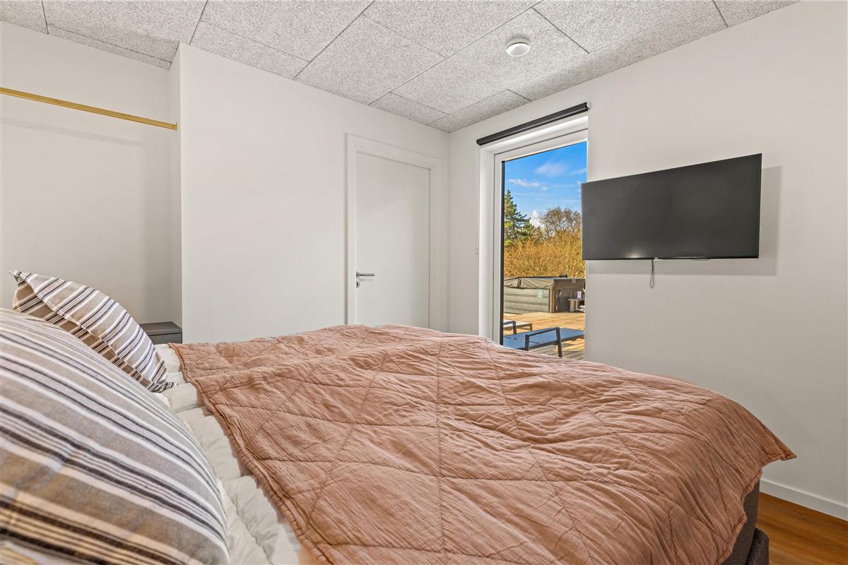 This holiday home features five master bedrooms. Here you'll not only dream well but sleep in exceptional comfort. All beds are extra-wide with premium mattresses. Each room offers ample storage and smart TVs for streaming. All bedrooms are en-suite with their own bathroom featuring underfloor heating. To protect our environment, we recommend using the energy-efficient heat pump for heating. Note that electricity is included in the rental price.