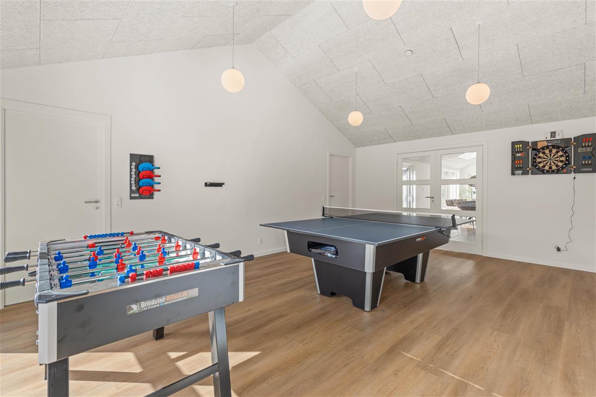 The living area leads directly to a 30-square-metre games room, equipped with table tennis and pool table for entertainment.