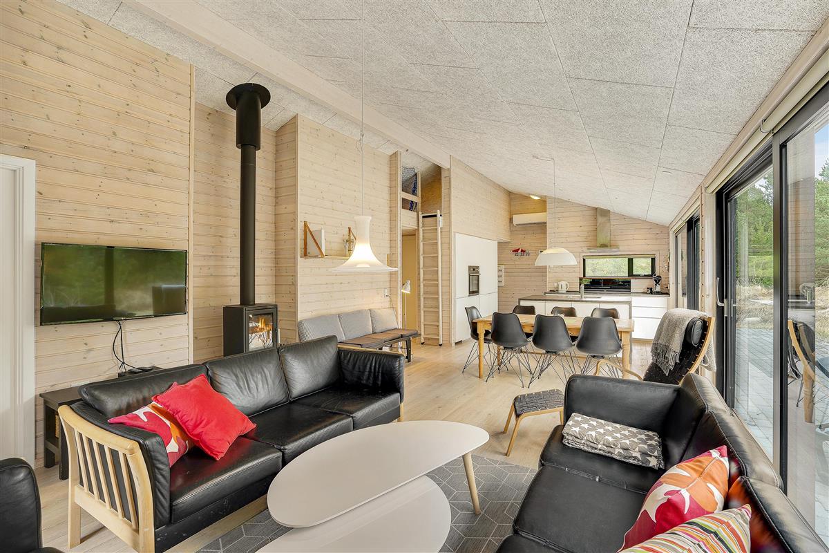 Have you ever sat cosily by a wood-burning stove feeling as if you're right in the middle of the forest? Through the large windows of this holiday home at Hedevej 25, you'll experience exactly this feeling, whether you're relaxing on the sofa, sharing a meal at the table, or preparing food in the excellent kitchen. The immediate proximity to the beautiful nature of the Danish west coast makes this holiday home truly unique and ensures perfect peace and relaxation. Do be prepared for the occasional visit from the forest's wildlife.