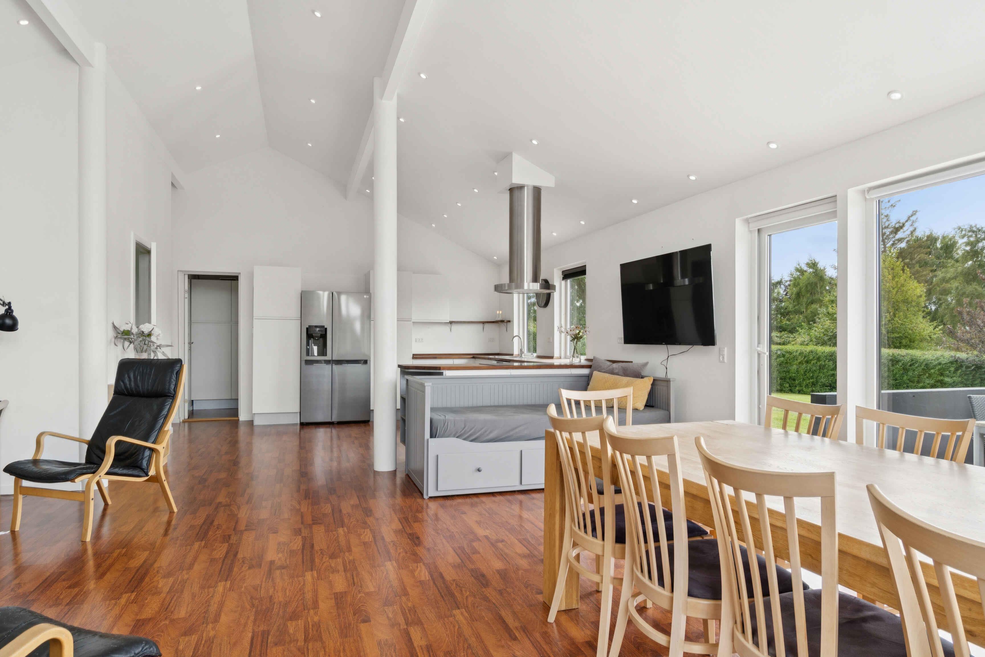 Welkom in dit ruime en goed ingedeelde vakantiehuis met plaats voor maximaal 8 personen, verdeeld over drie slaapkamers. Met 145 m² biedt het huis zowel comfort als functionaliteit, ideaal voor gezinnen en vriendengroepen die willen ontspannen dicht bij de natuur. Vanuit de lichte woonkamer en open keuken is er directe toegang tot een zonnig terras met uitzicht op de Lammefjord. Hier kunt u in alle rust van uw maaltijden genieten, terwijl de kinderen spelen in de gemakkelijk te onderhouden tuin met heggen en ruimte voor spel. De woning ligt aan een doodlopende weg, wat zorgt voor een rustige en veilige omgeving. De omgeving straalt een echte vakantiesfeer uit. Slechts 400 meter van het huis ligt het fjord – perfect om te wandelen, zwemmen of gewoon van het uitzicht op het water te genieten. De omliggende natuur nodigt uit tot fiets- en wandeltochten. In de buurt vindt u charmante havenstadjes, boerderijwinkels en lokale eetgelegenheden met verse vis. De nabijgelegen Lammefjord staat bekend om zijn unieke natuur en bijzondere licht. Hier kunt u vogels spotten, vissen of simpelweg genieten van de stilte. In de zomer bruist het gebied van leven, maar het behoudt altijd zijn ontspannen sfeer. Dit vakantiehuis is het hele jaar door een ideale uitvalsbasis voor vakantie of een weekendje weg. Er is ruimte voor samenzijn, rust en activiteit – precies wat u nodig heeft.