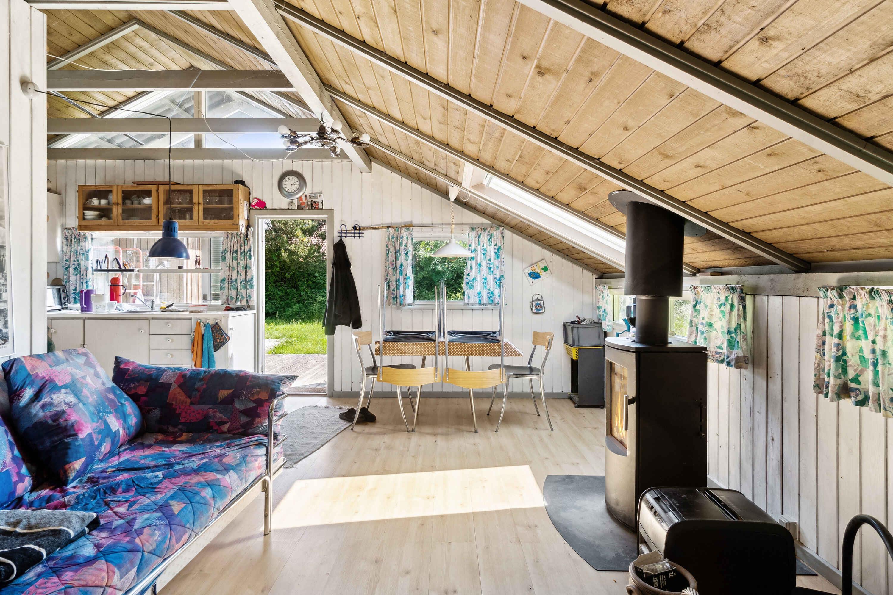 Gezellig zomerhuis dicht bij het strand in Kisserup. Warme sfeer met klassieke zomerhuisstijl, houtkachel en plads til samvær. Ideaal voor ontspanning, wandelingen en gezellige momenten het hele jaar door.