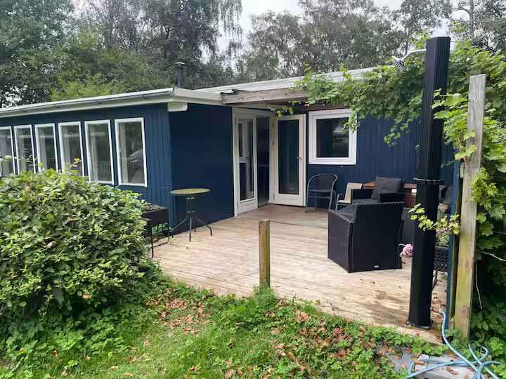 Charmant zomerhuis nabij Lammefjord met tuin, buitenbad en moderne voorzieningen.