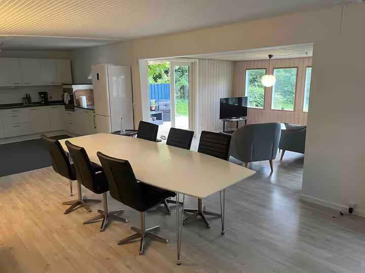 Welkom in een charmant zomerhuis dicht bij de Lammefjord. Hier beschikt u over 91 m² met twee slaapkamers en vier slaapplaatsen, een volledig uitgeruste keuken en een ruime woonkamer. Ideaal voor wie rust, comfort en natuur zoekt. De woonkamer heeft een gezellige pelletkachel, tv met Apple TV en voldoende ruimte voor gezamenlijke momenten. De keuken maakt het eenvoudig om maaltijden te bereiden, en de badkamer biedt modern comfort met vloerverwarming. Buiten wacht een grote groene tuin, perfect voor spel, leg en ontspanning in de zon. Het heerlijke buitenbad maakt het mogelijk om ’s avonds onder de open hemel te genieten, in elk seizoen. De omgeving is ideaal voor een vakantie dicht bij de natuur. De Lammefjord ligt op slechts enkele passen, met zwemsteiger, klein strand en rustig water voor een frisse duik of een ontspannen wandeling langs de kust. Hier kunt u genieten van vogelrijkdom, open landschappen en mooie paden. U kunt peddelen op de fjord, fietsen in de omgeving of de kleine lokale gemeenschappen verkennen. Boerderijwinkels, eetgelegenheden en natuurroutes maken het eenvoudig om een actieve vakantie te combineren met lokale smagsoplevelser. Holbæk ligt op korte rijafstand met cafés, winkels en cultuur. Het huis biedt gezelschapsspellen, buitenspel og paddleboards in de zomerperiode. Perfect voor gezellige momenten binnen en buiten. Dit zomerhuis is een veilig en uitnodigend toevluchtsoord waar natuur en nærvær samenkomen. Ideaal voor gezinnen en vrienden die tijd voor hinanden zoeken.