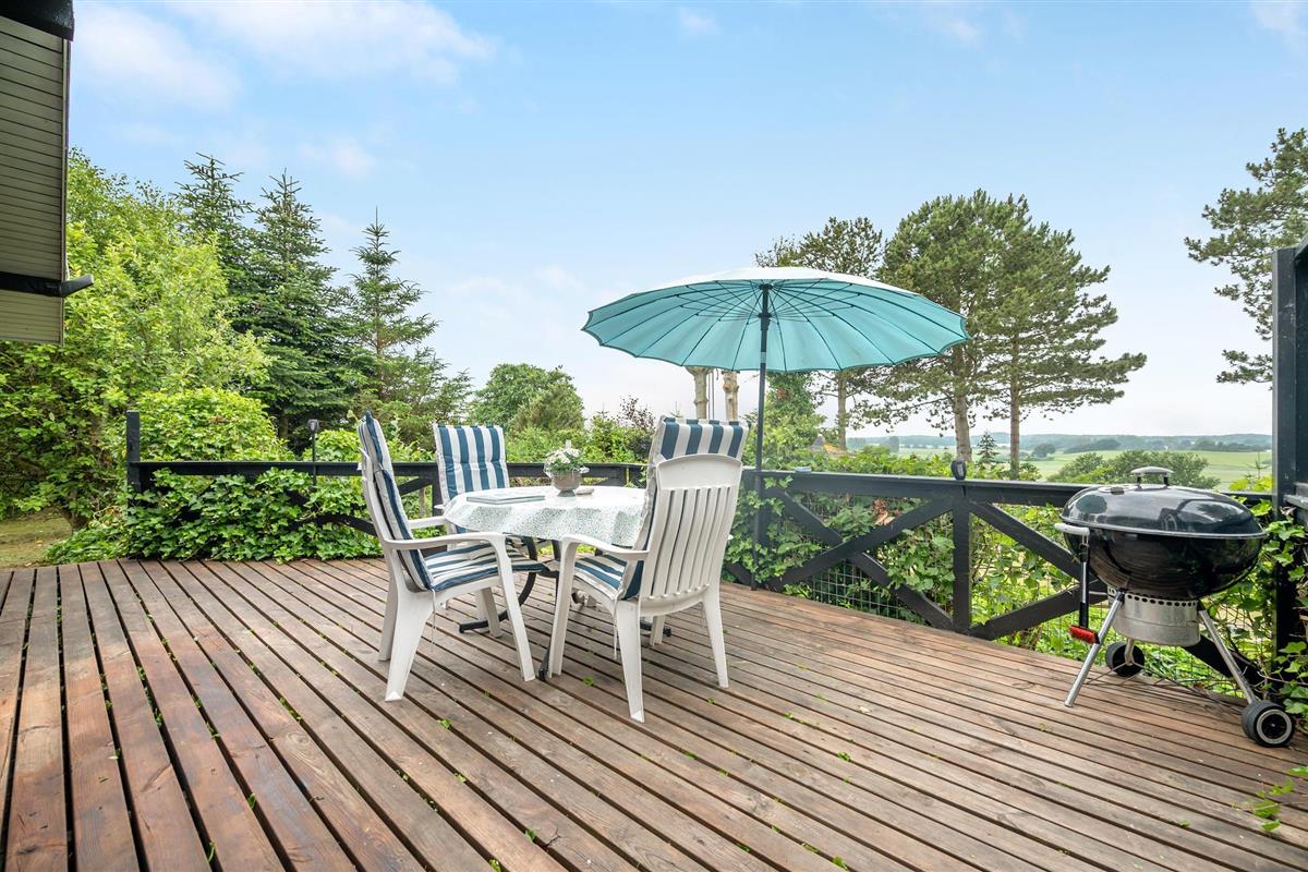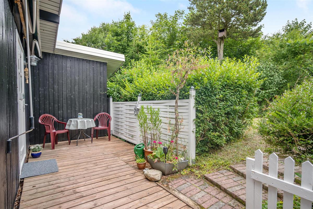 Buiten vindt u een groot houten terras waar u ongetwijfeld vele uren samen zult doorbrengen. Het terras ligt hoog in de natuur en biedt bij elk weer een fantastisch uitzicht. Hier vindt u tuinmeubilair en een barbecue, zodat u op warme zomeravonden uw vakantiemaaltijden buiten kunt bereiden en genieten.