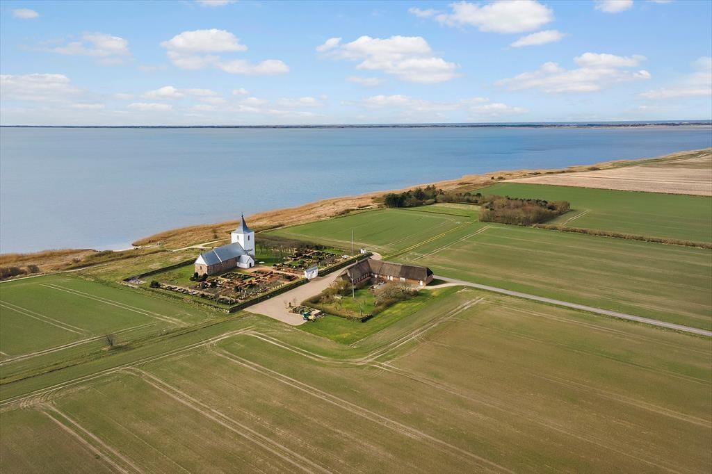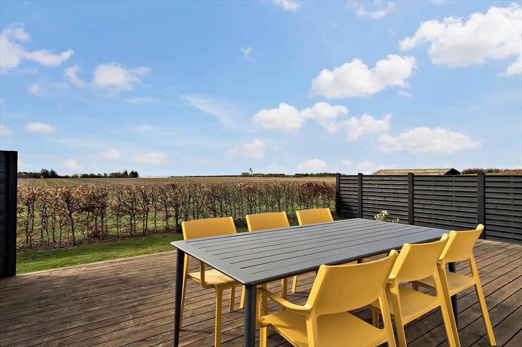 Vom Haus aus blickt man über offene Felder in Richtung Ringkøbing Fjord und Gammelsogn Kirche - nicht zuletzt von der nach Süden ausgerichteten Holzterrasse. Das 800 m² große Grundstück ist mit Rasen und einer Kiesfläche zum Parken angelegt. Bitte beachten Sie, dass der Eingang zum Haus wegen des hohen Kellers über eine Treppe zu erreichen ist. Der Keller des Hauses ist abschließbar und bietet ausreichend Platz für Surfausrüstung, Fahrräder und andere Utensilien.