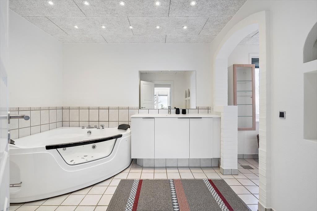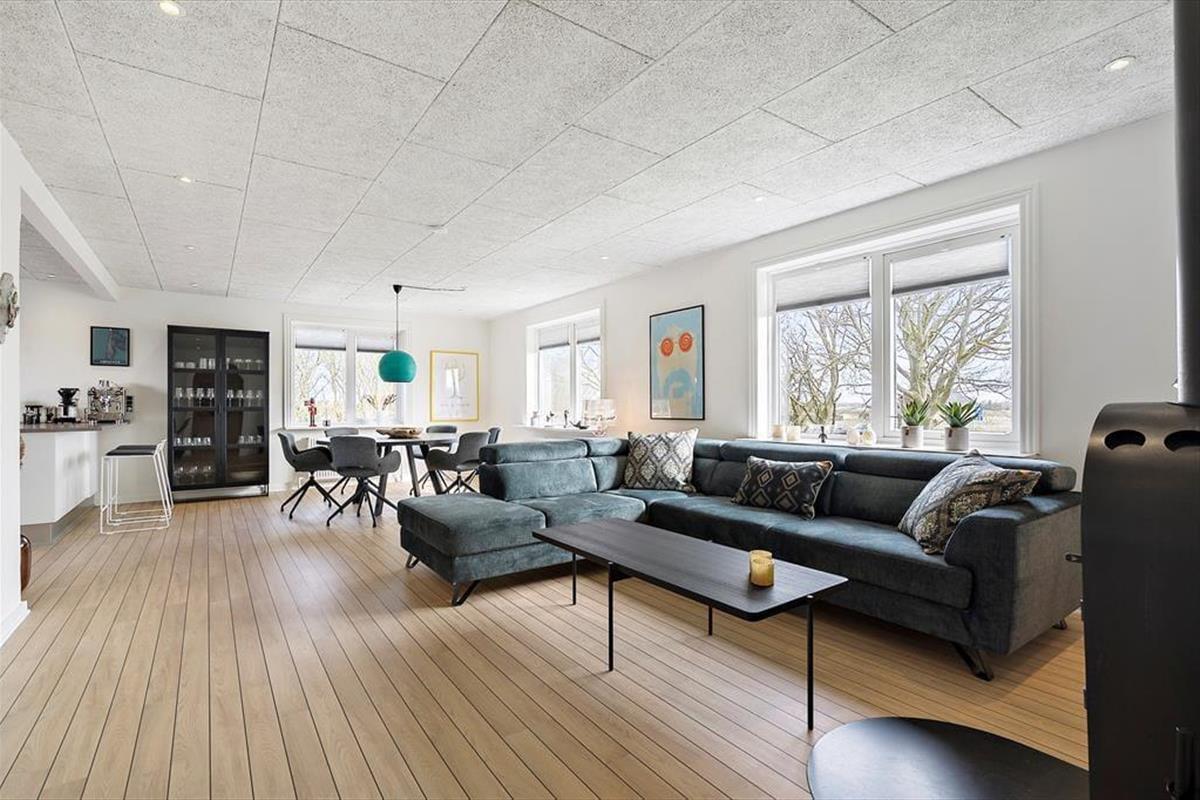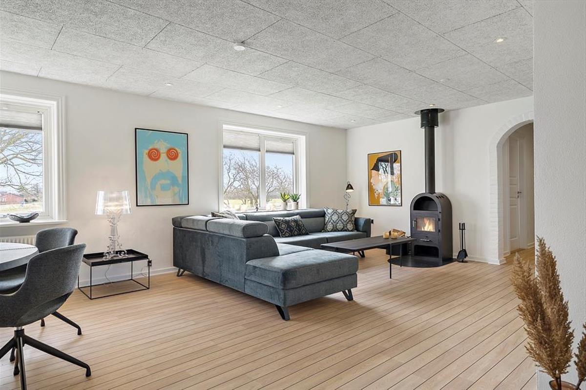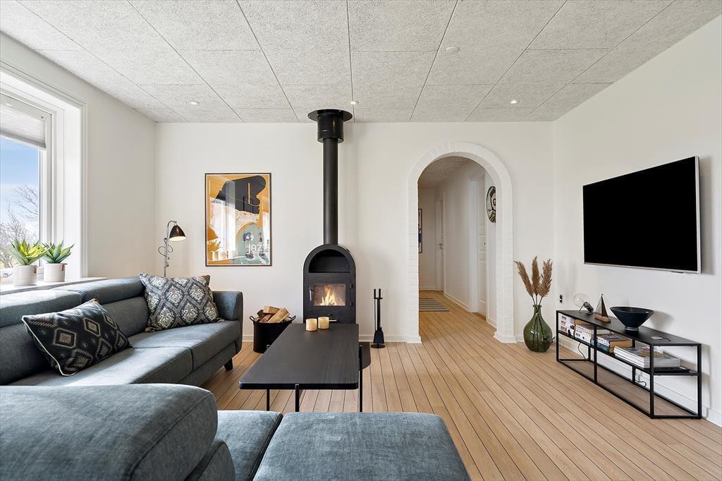 Das Ferienhaus wurde ursprünglich als ganzjährig bewohnbare Villa gebaut und nach einer Renovierung im Jahr 2023 ist es jetzt ein großes und modernes Ferienhaus für sechs Personen. Der Grundriss bietet drei gute Schlafzimmer und ein Badezimmer mit Eckbadewanne, im geräumigen Souterrain befinden sich unter anderem eine Waschküche und eine große Gefriertruhe. Im schönen Wohnzimmer kann man es sich vor dem Holzofen gemütlich machen und wenn man Unterhaltung braucht, kann man Filme über Chromecast streamen oder auf dem Flachbildfernseher zwischen dänischen DR- und vielen deutschen Sendern wählen. Sie können auch in der schönen offenen Küche kochen. Sie ist sehr gut ausgestattet, vom Geschirrspüler über den Backofen bis hin zur leckeren Espressomaschine - und es gibt sogar einen amerikanischen Kühlschrank mit Eiswürfelmaschine, so dass Sie Ihre Getränke vor dem Servieren auf der Terrasse ganz einfach kühlen können.