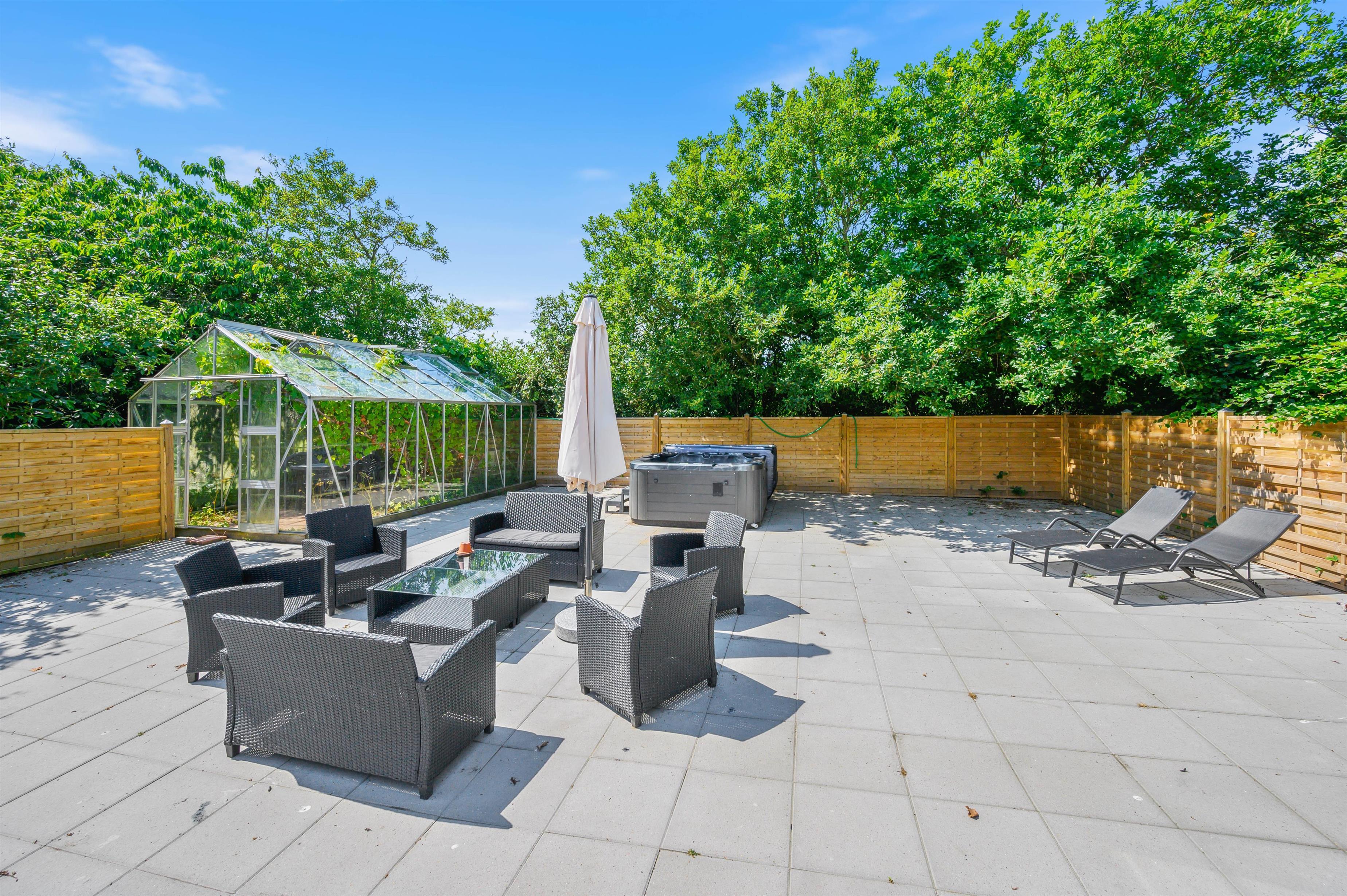 Your personal relaxation area with outdoor sauna and hot tub awaits on the terrace. Here you can warm up in the sauna after a long day at the beach or a walk along the North Sea coast. If you've ever dreamed of relaxing under the stars in a hot tub, this holiday home offers you that opportunity.