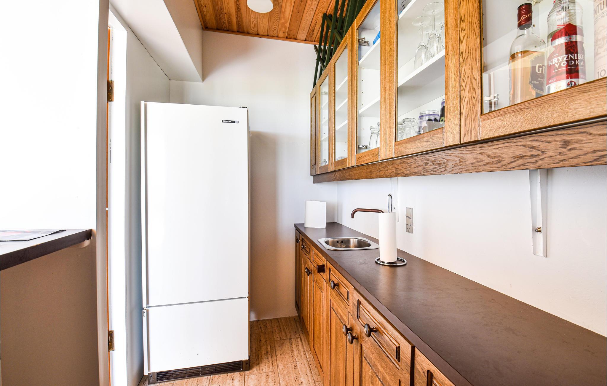 In de hobbyruimte met bar kunt u biljarten of tafeltennissen of ontspannen op een van de banken en een film kijken op een van de 2 flatscreen-tv's. De eetkamer biedt verschillende gezellige hoekjes met banken, tafels en stoelen en een grote eettafel met plaats voor alle gasten. De keuken is uitgerust met een Amerikaanse koelkast met ijsmaker, een fornuis, 2 ovens, 2 vaatwassers en een extra vriezer, evenals een koelkast in de gang.