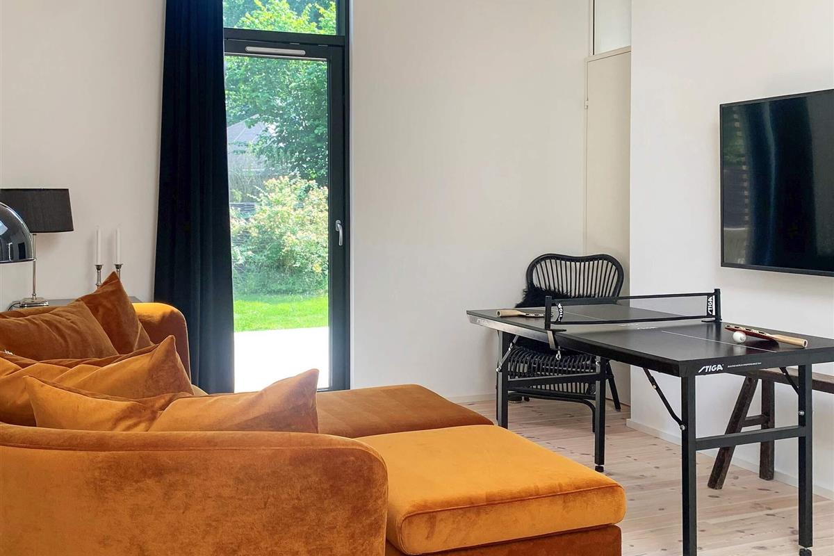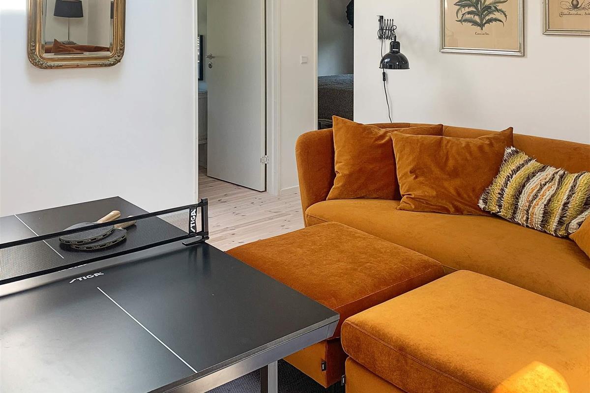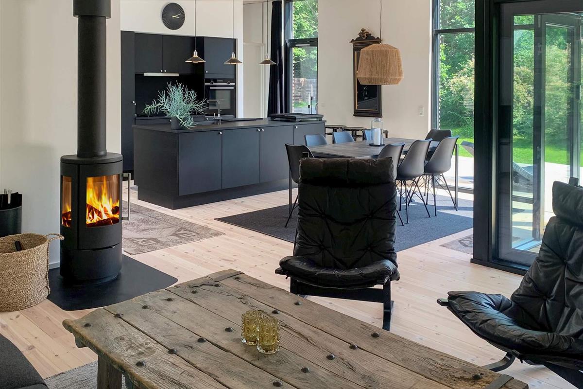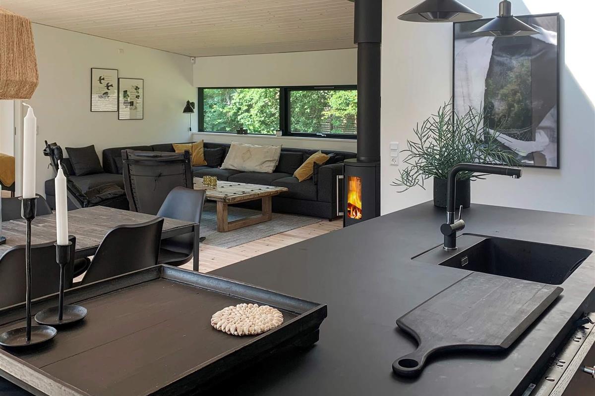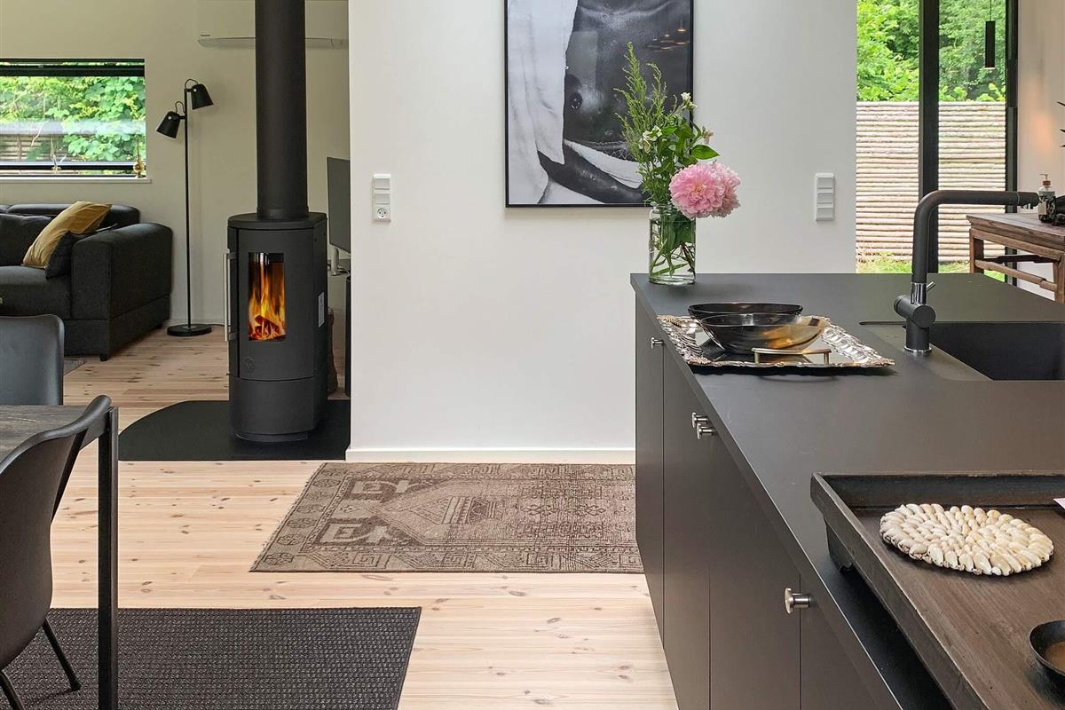 Geschmackvoll eingerichtetes Ferienhaus in einem Ferienhausgebiet bei Hornbæk. Innen offener Küchen-/Wohnbereich für das Familienleben mit ansprechendem Mobiliar sowie WLAN, TV und Chromecast zum Streamen eigener Anbieter. Zudem Mini-Tischtennis und Holzofen vorhanden. Zur umfassenden Küchenausstattung gehören u.a. Induktionsfeld, Backofen mit Grill, Dunstabzugshaube, Mikrowelle und Geschirrspüler. Darüber hinaus gibt es u.a. Mixer, Küchenmaschine und Nespresso / Sodastream-Maschine.