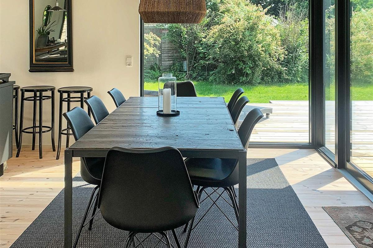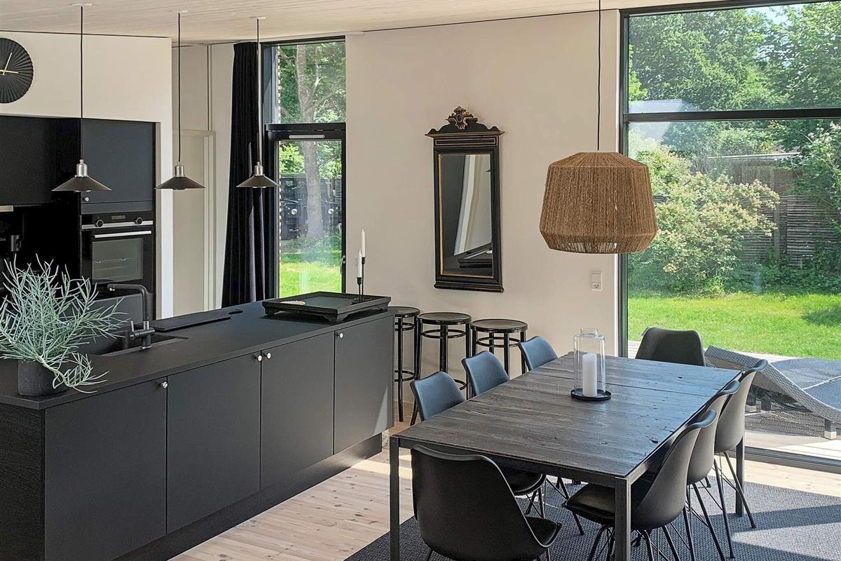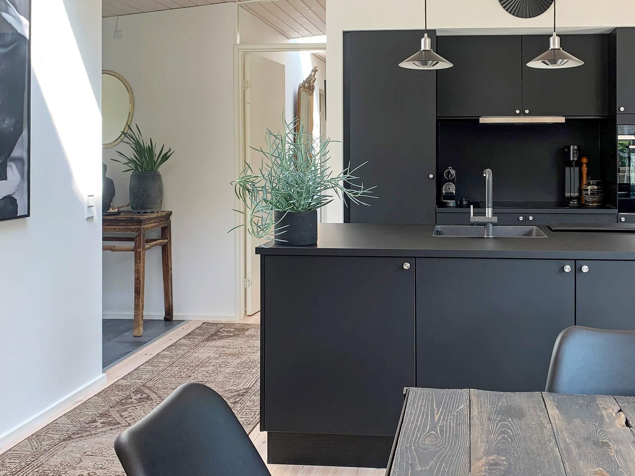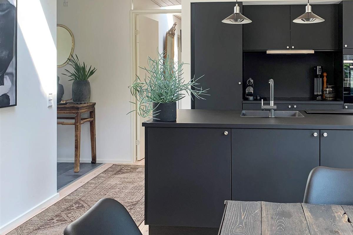 Geschmackvoll eingerichtetes Ferienhaus in einem Ferienhausgebiet bei Hornbæk. Innen offener Küchen-/Wohnbereich für das Familienleben mit ansprechendem Mobiliar sowie WLAN, TV und Chromecast zum Streamen eigener Anbieter. Zudem Mini-Tischtennis und Holzofen vorhanden. Zur umfassenden Küchenausstattung gehören u.a. Induktionsfeld, Backofen mit Grill, Dunstabzugshaube, Mikrowelle und Geschirrspüler. Darüber hinaus gibt es u.a. Mixer, Küchenmaschine und Nespresso / Sodastream-Maschine.