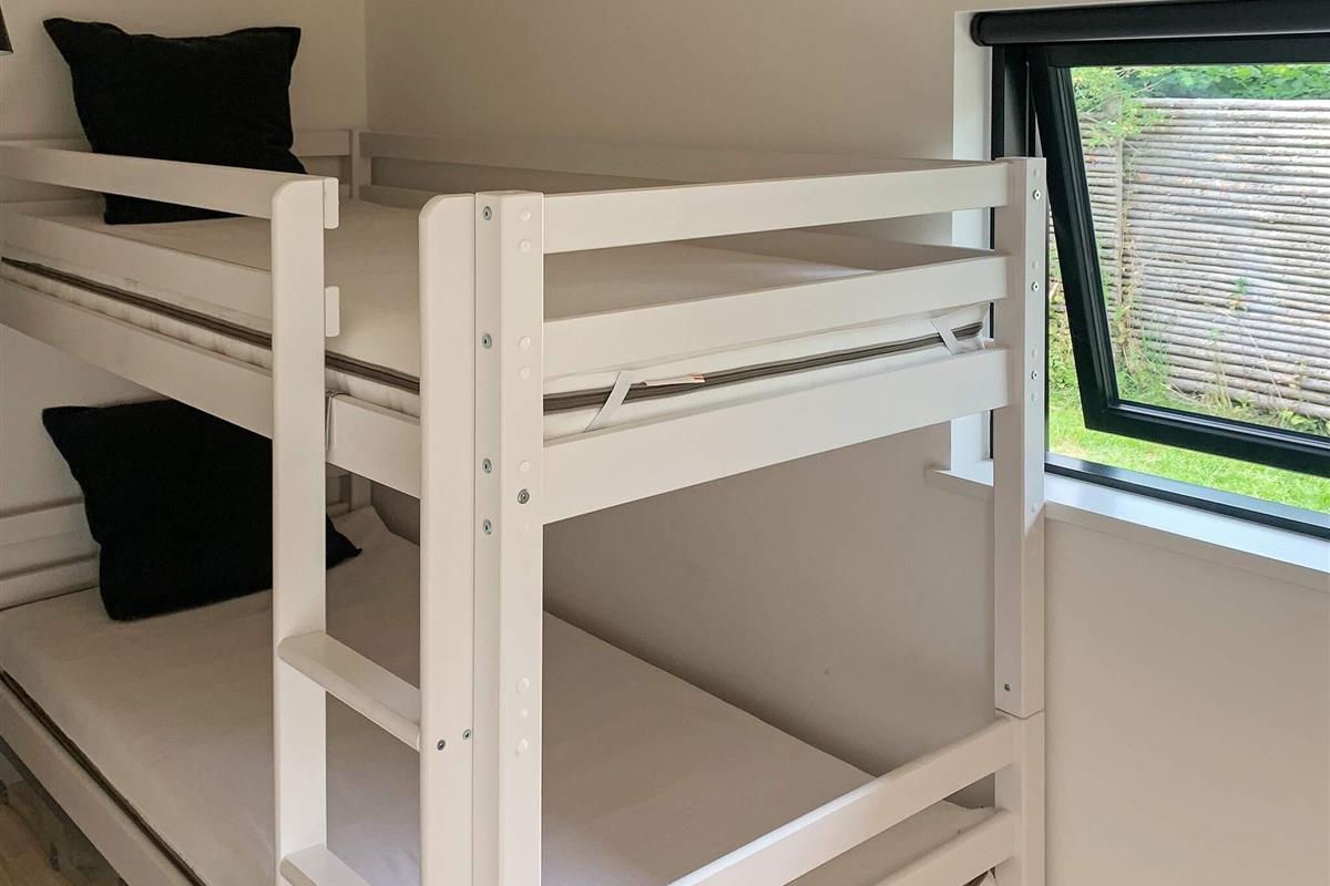 Im Haus zudem vier Schlafzimmer, aufgeteilt mit drei Zimmern mit je einem Doppelbett und ein viertes Zimmer mit Etagenbett für zwei Kinder. Es stehen auch zwei moderne Badezimmer, beide mit Dusche und angenehmer Fußbodenheizung, zur Verfügung. Außerdem Waschmaschine und Wäschetrockner im Haus. Beheizt wird das Ferienhaus mittels klimafreundlicher Luft-Luft-Wärmepumpe, Elektro-Heizpaneelen sowie einem Holzofen für kühlere Tage. Im Außenbereich sowohl überdachte als auch offene Terrassenfläche mit Gartenmöbeln und Grill.