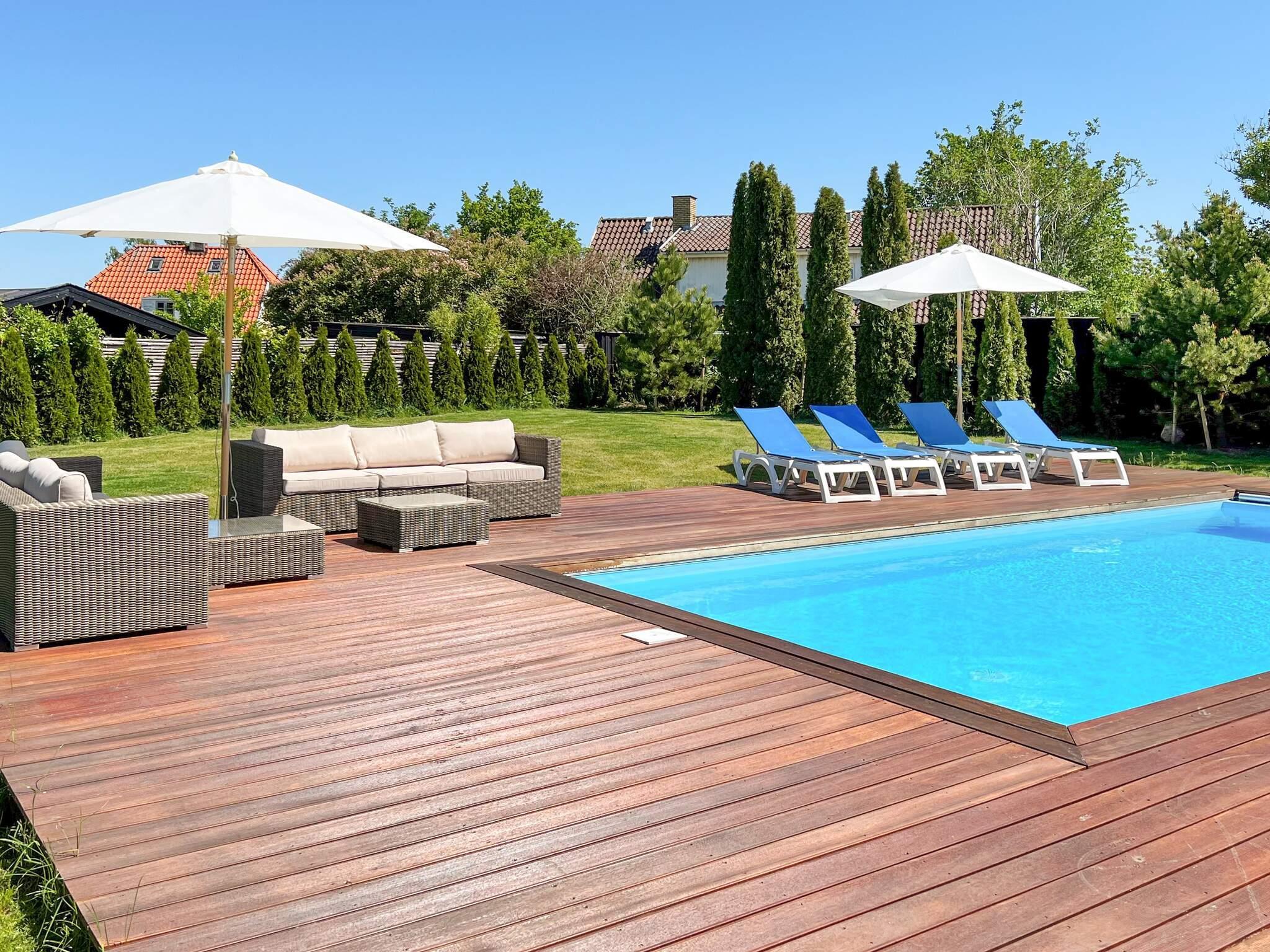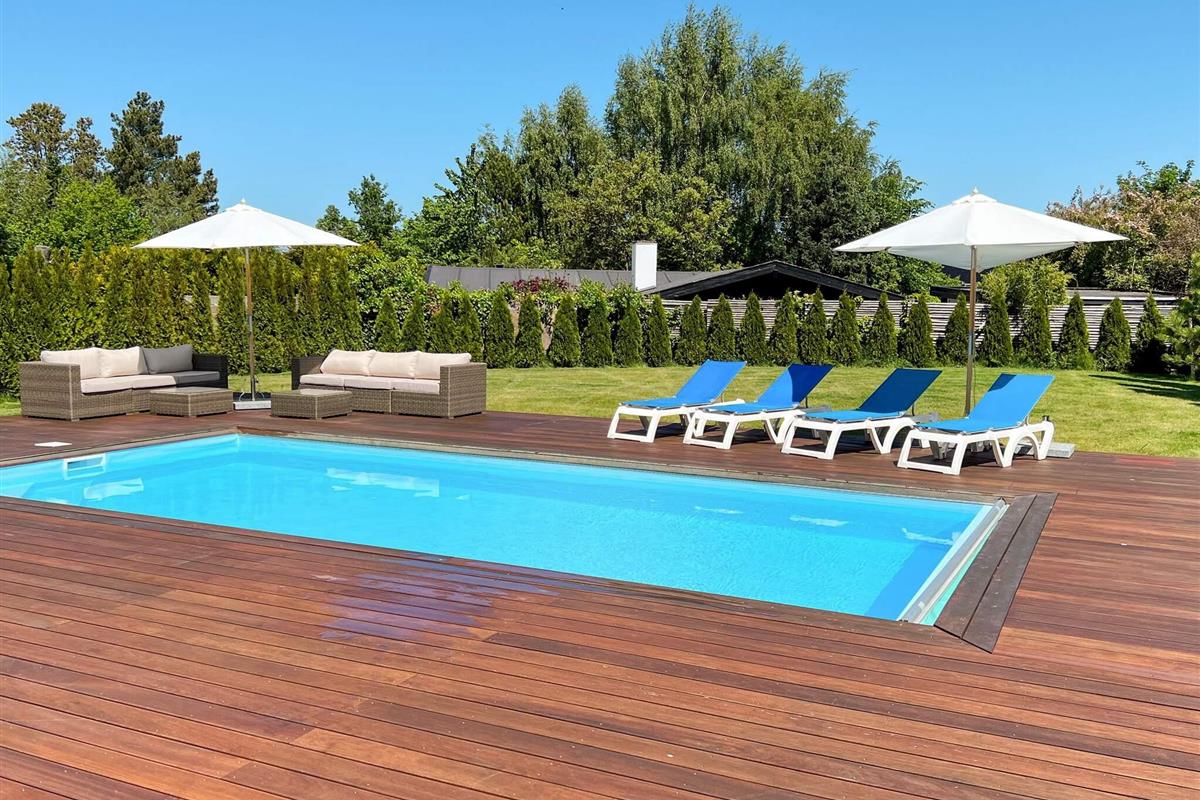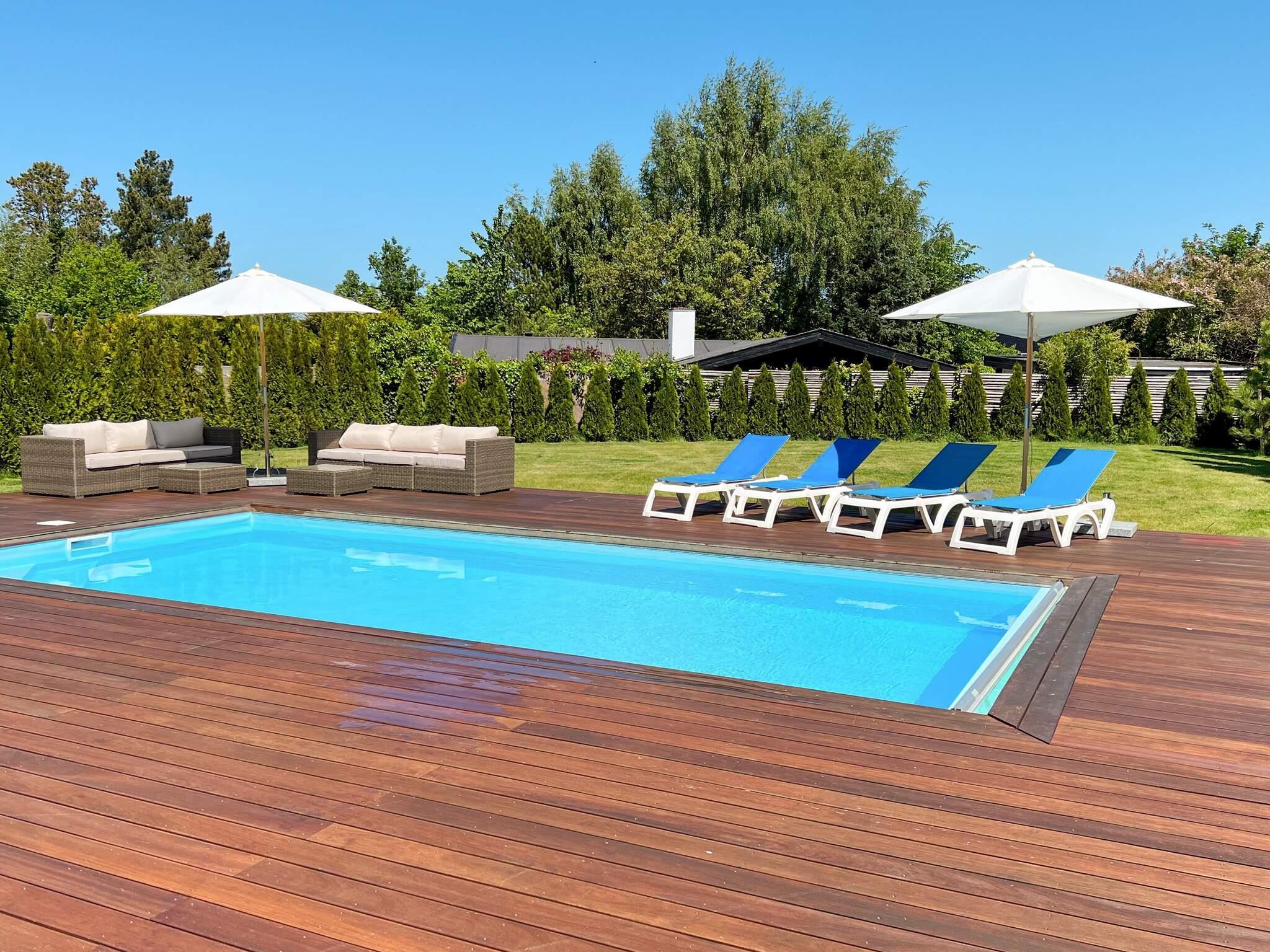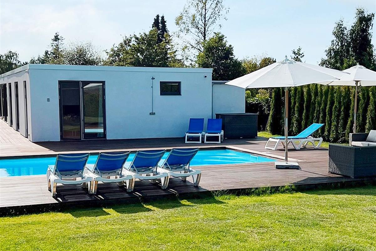 Exklusives Ferienhaus mit beheiztem Außenpool für unvergessliche Sommertage in Hornbæk. Das Haus liegt in einem beliebten Urlaubsgebiet und bietet modernen Komfort in hellem skandinavischem Stil. Das Herzstück des Hauses ist der großzügige, offene Küchen- und Wohnbereich, ausgestattet mit Fernseher und Chromecast zum Streamen, Bluetooth-Lautsprecher und WLAN. Hier können Sie wunderbar gemeinsam kochen, essen, spielen oder entspannen. Die Küche ist bestens ausgestattet und verfügt über ein Induktionskochfeld mit integrierter Dunstabzugshaube, Backofen, großen Kühlschrank mit Gefrierfach, Kaffeemaschine und Geschirrspüler. Es gibt drei Schlafzimmer mit Doppelbetten sowie zwei moderne Badezimmer mit Dusche, Fußbodenheizung und einem kombinierten Waschtrockner.