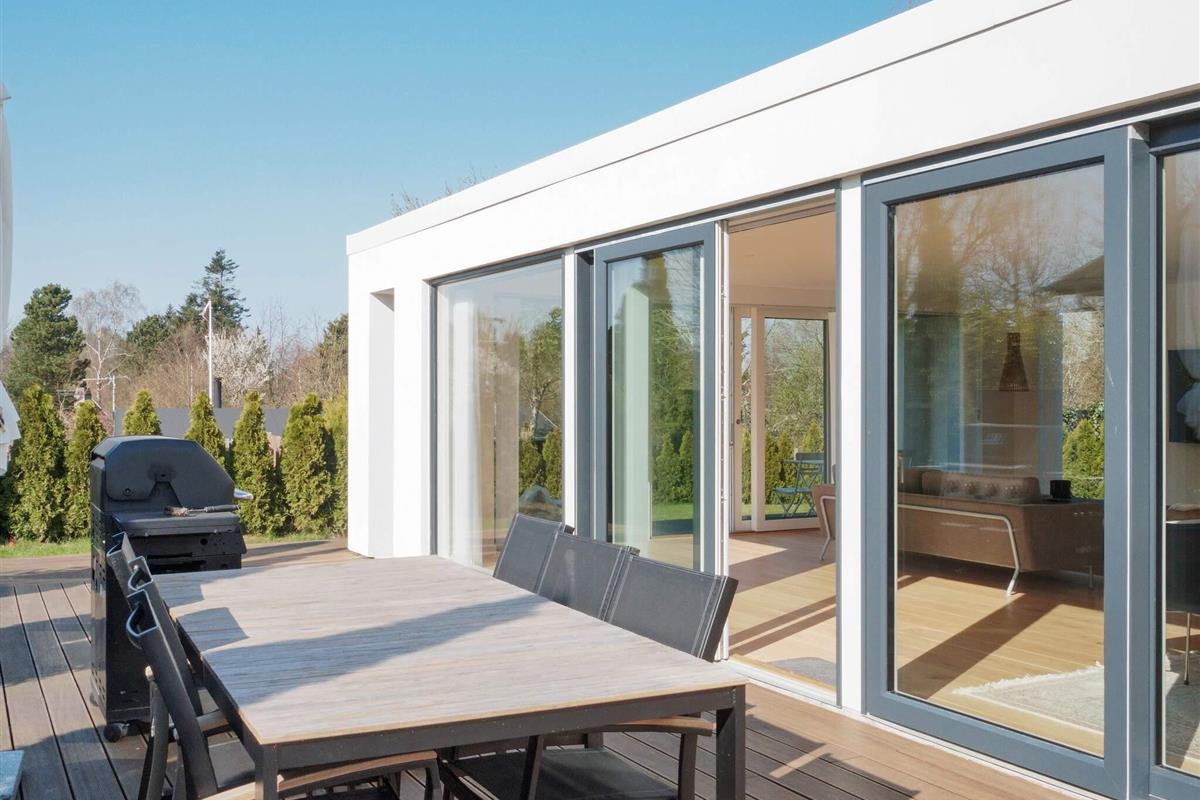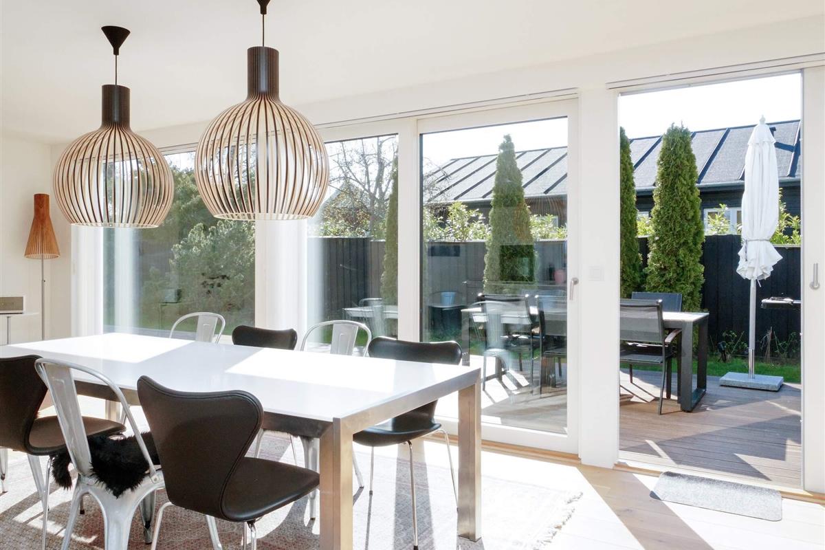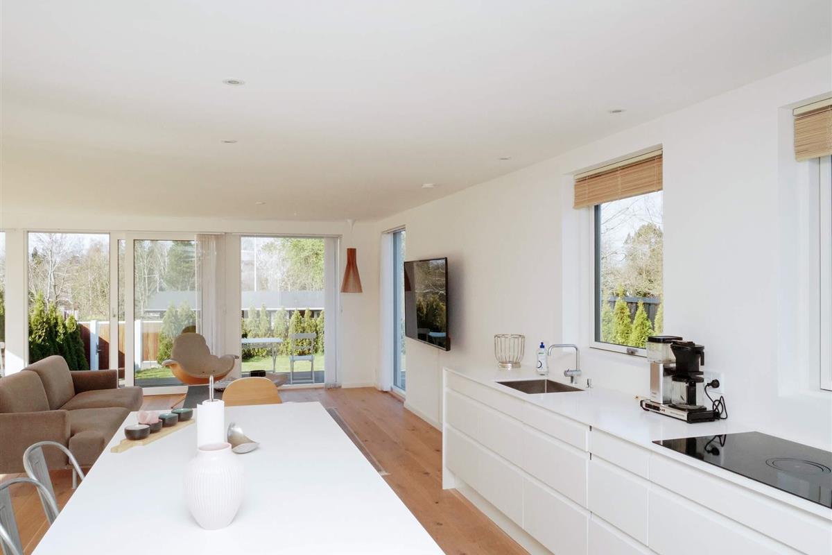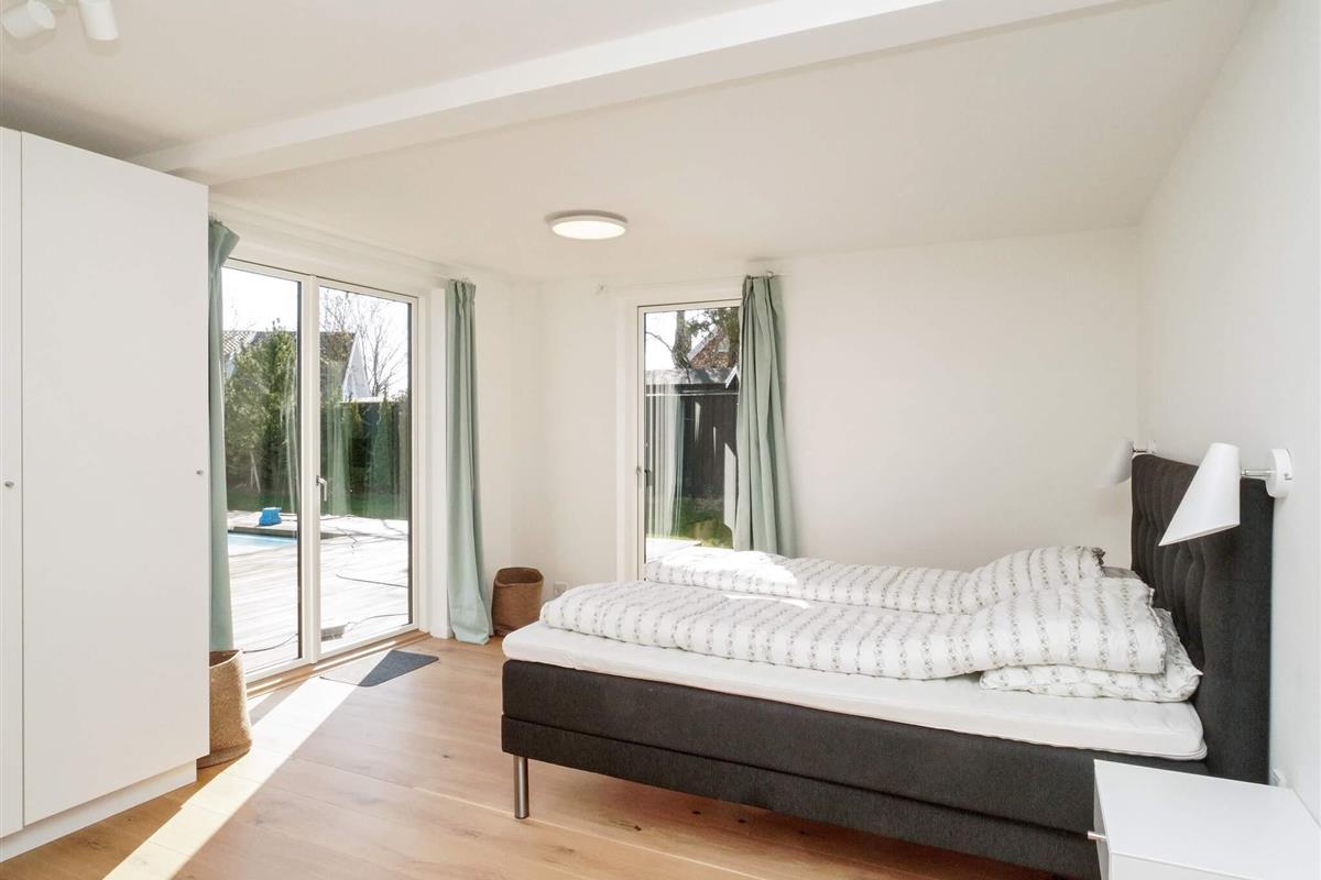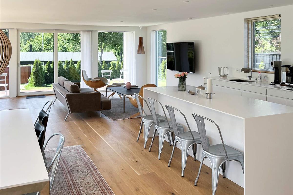 Exklusives Ferienhaus mit beheiztem Außenpool für unvergessliche Sommertage in Hornbæk. Das Haus liegt in einem beliebten Urlaubsgebiet und bietet modernen Komfort in hellem skandinavischem Stil. Das Herzstück des Hauses ist der großzügige, offene Küchen- und Wohnbereich, ausgestattet mit Fernseher und Chromecast zum Streamen, Bluetooth-Lautsprecher und WLAN. Hier können Sie wunderbar gemeinsam kochen, essen, spielen oder entspannen. Die Küche ist bestens ausgestattet und verfügt über ein Induktionskochfeld mit integrierter Dunstabzugshaube, Backofen, großen Kühlschrank mit Gefrierfach, Kaffeemaschine und Geschirrspüler. Es gibt drei Schlafzimmer mit Doppelbetten sowie zwei moderne Badezimmer mit Dusche, Fußbodenheizung und einem kombinierten Waschtrockner.