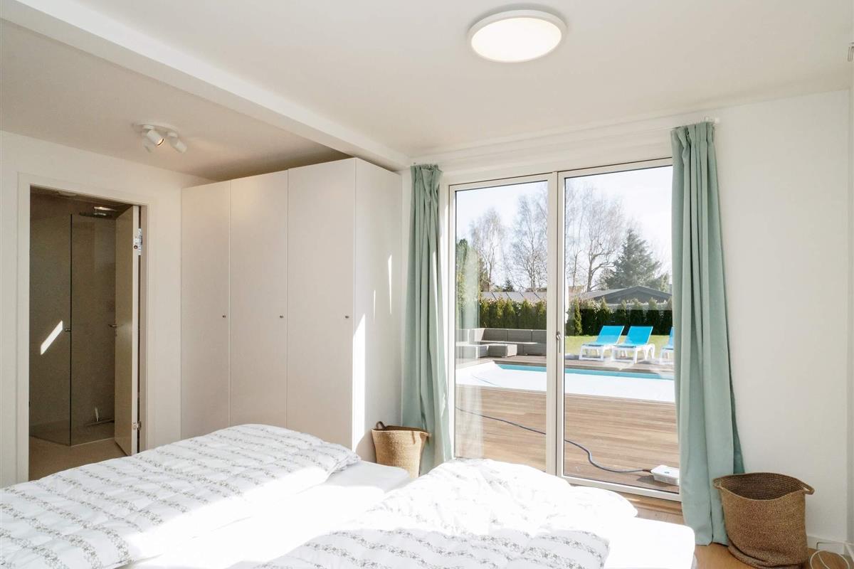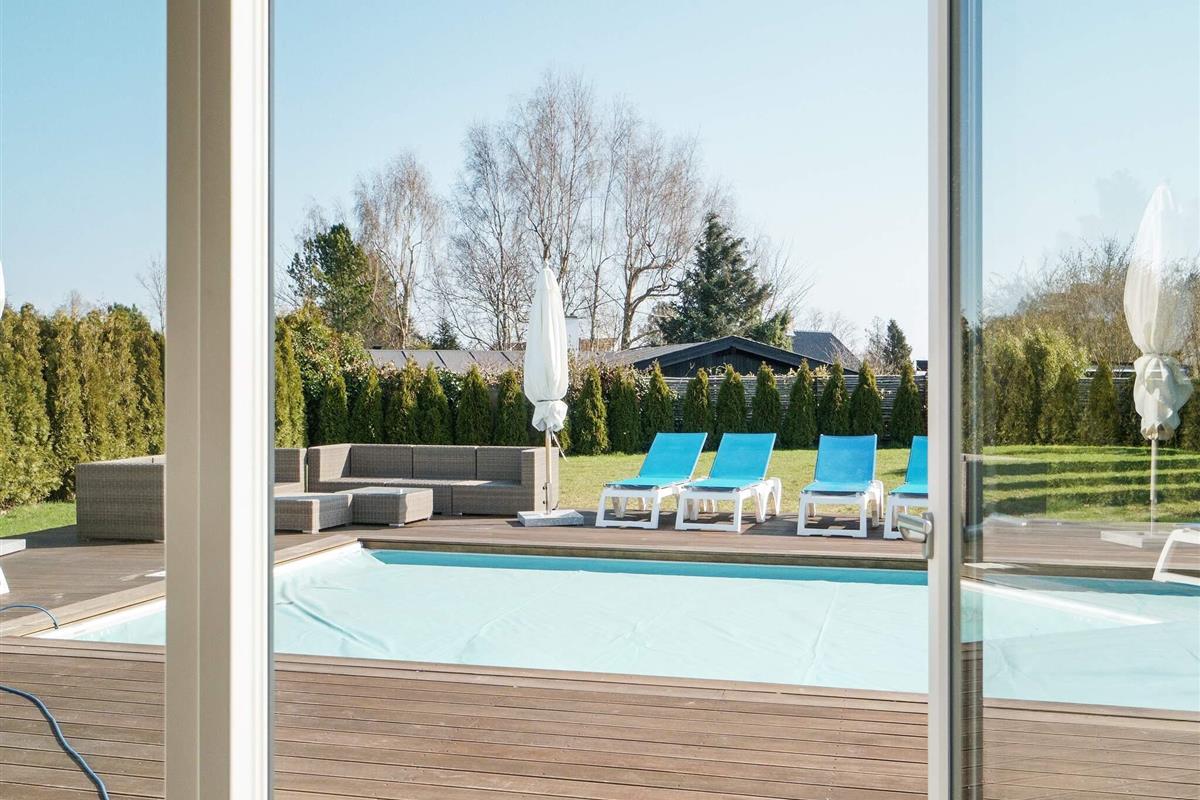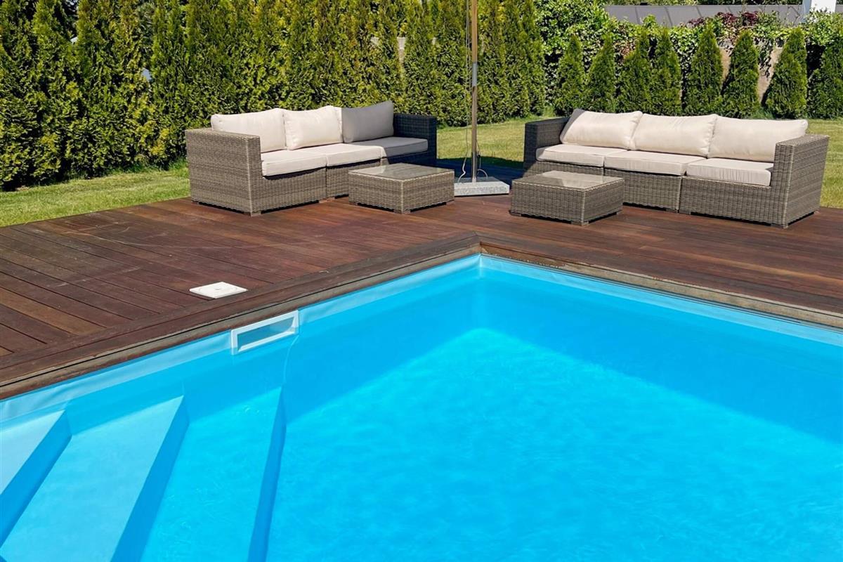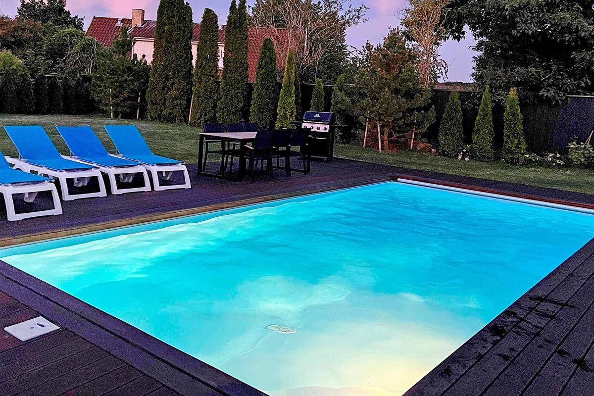 Der Außenbereich lädt zum Entspannen und Genießen ein. Eine große Terrasse mit Gartenmöbeln umgibt den beheizten Pool und bietet sonnige und schattige Plätze zum Genießen der frischen Luft. Ein Gasgrill steht ebenfalls zur Verfügung, damit Sie laue Sommerabende im Freien genießen können. Der Pool verfügt über eine praktische Sicherheitsabdeckung, die sich automatisch schließen lässt. Er wird mit einer energiesparenden Luft-Wasser-Wärmepumpe in Kombination mit Solarmodulen beheizt und sorgt so das ganze Jahr über für angenehme Wassertemperaturen.