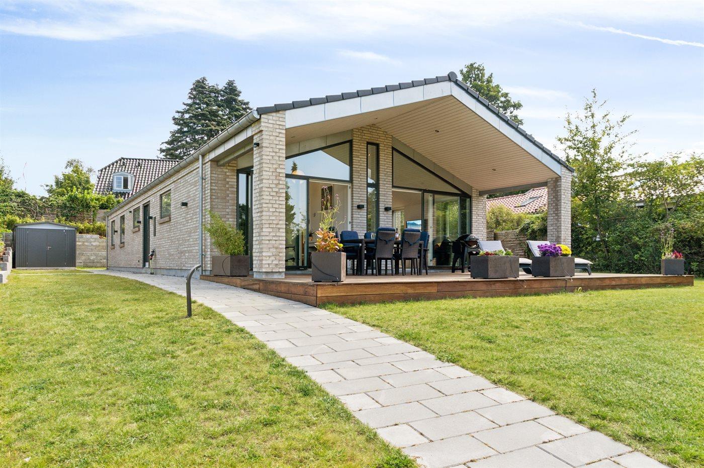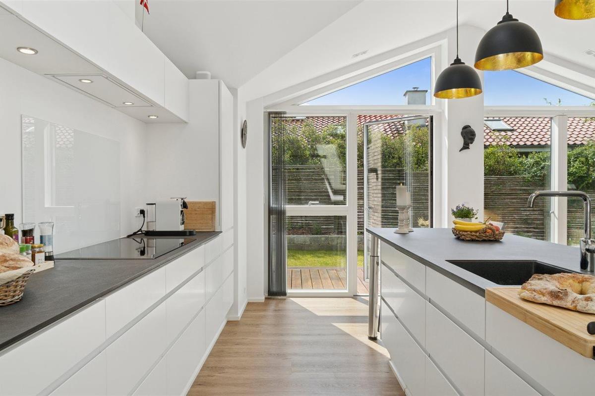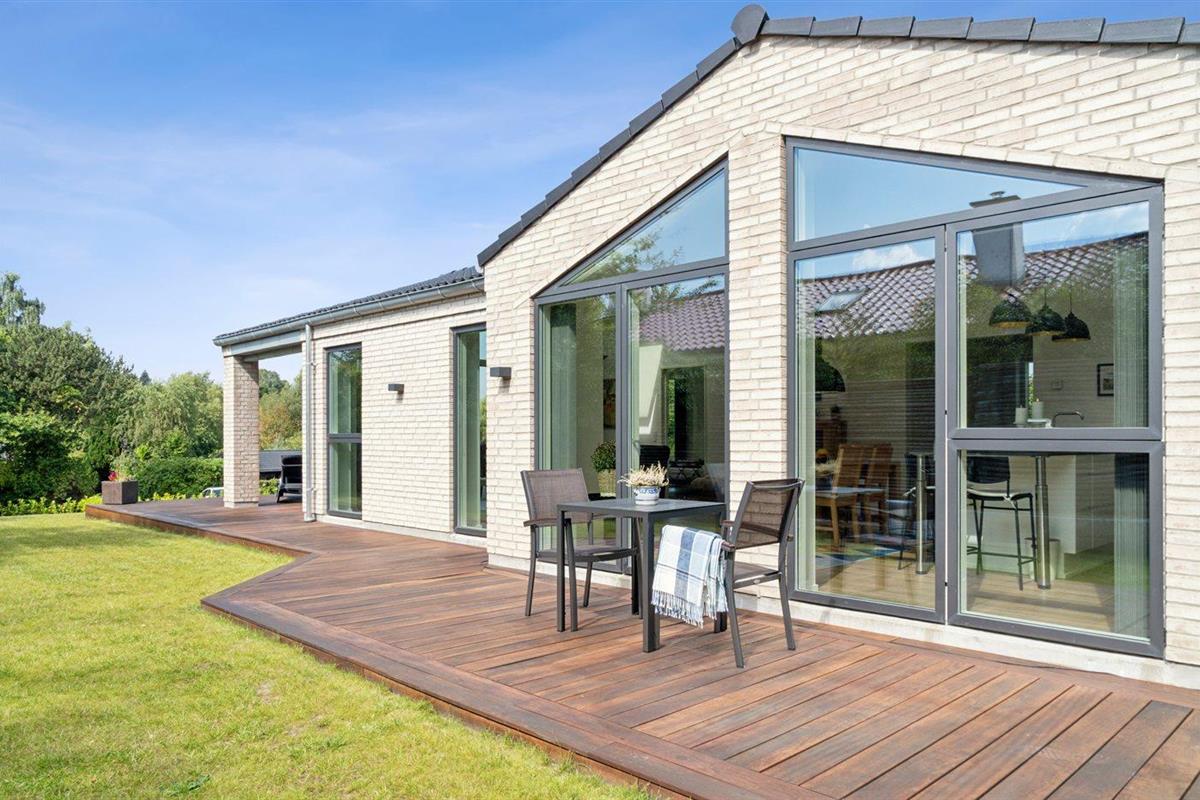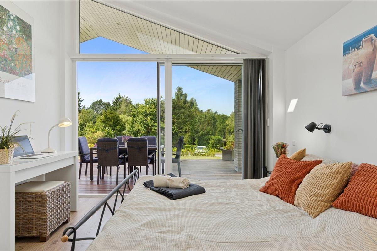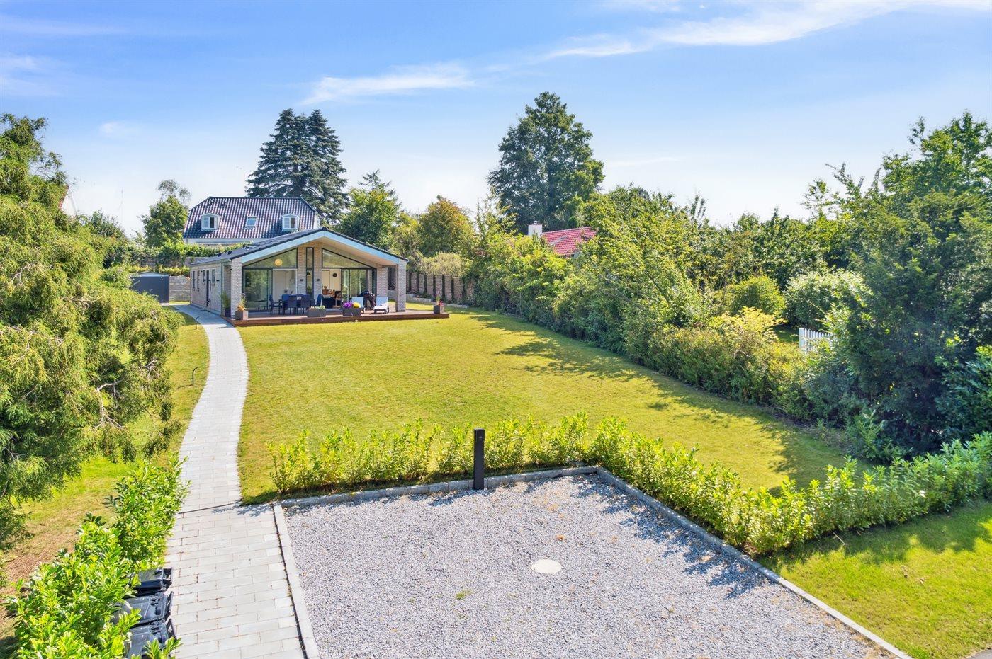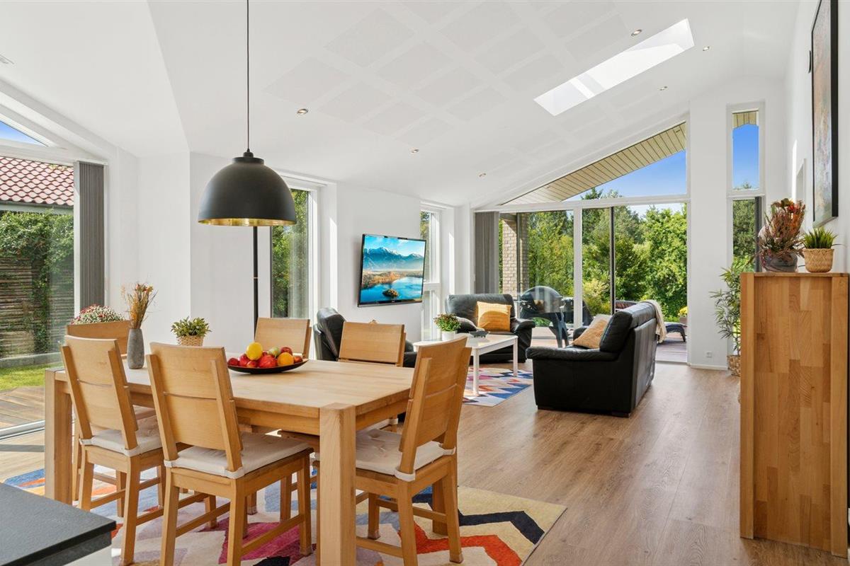 Modern vakantiehuis in Hornbæk met bubbelbad, grote tuin en elektrische laadpaal, op 945 meter van zee.