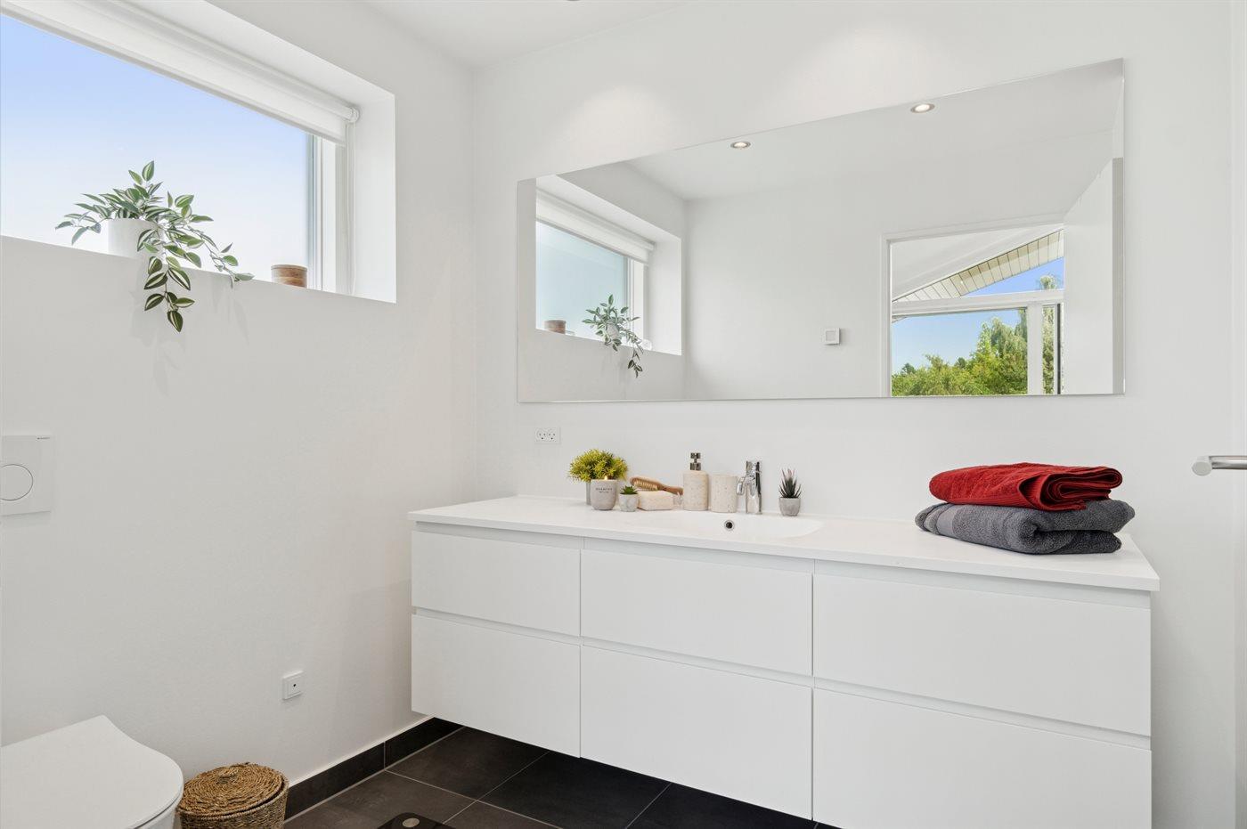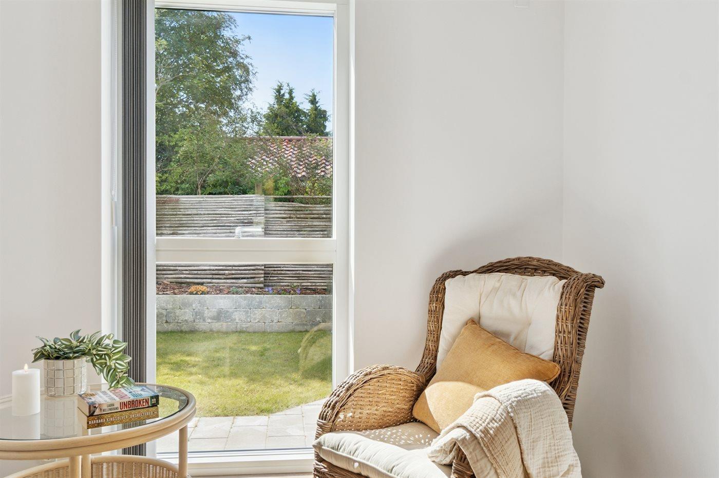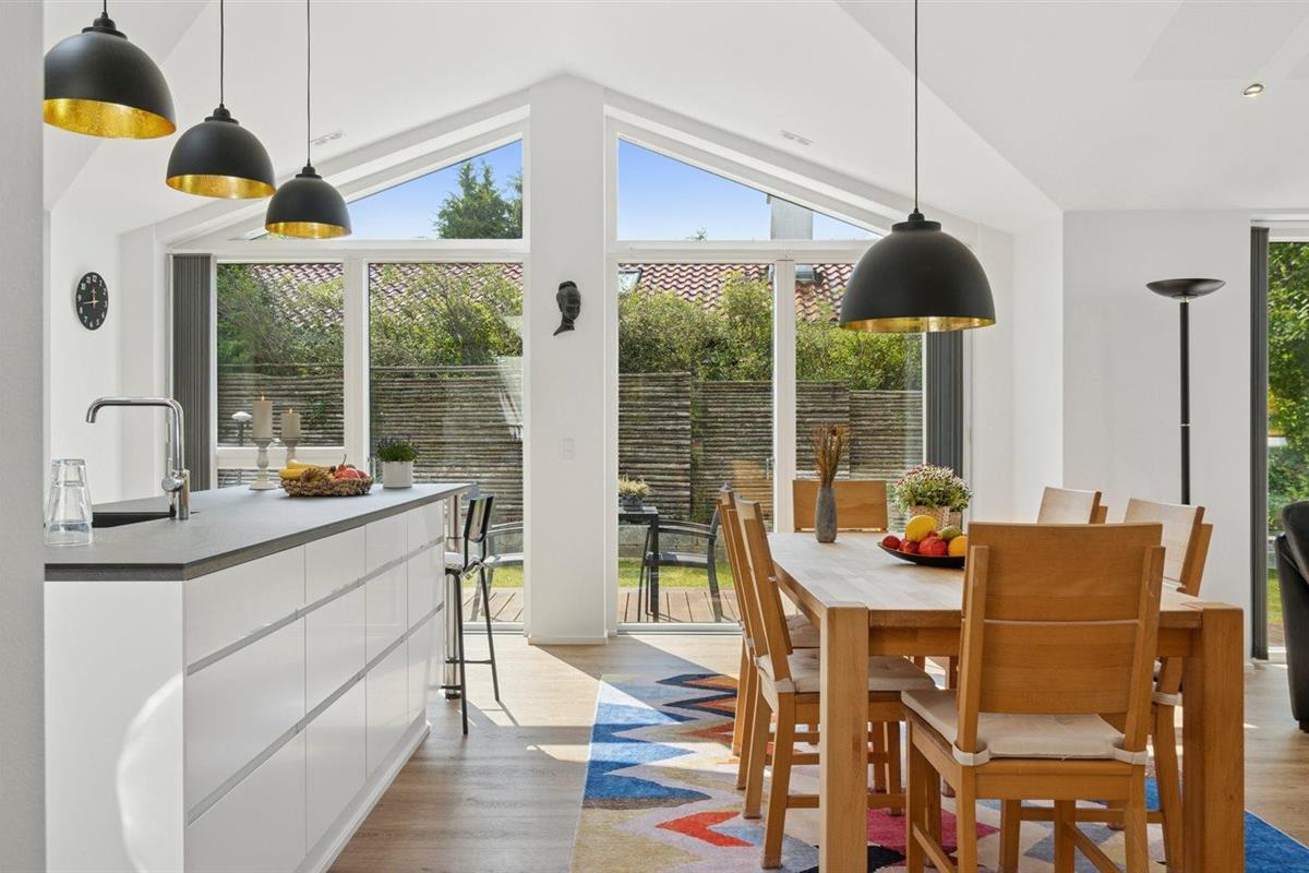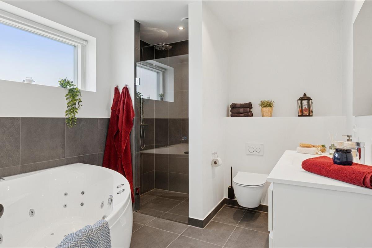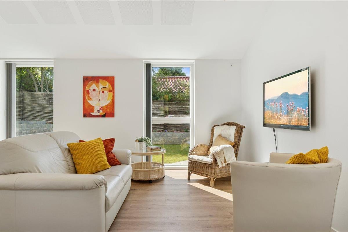 Modern vakantiehuis in Hornbæk met bubbelbad, grote tuin en elektrische laadpaal, op 945 meter van zee.