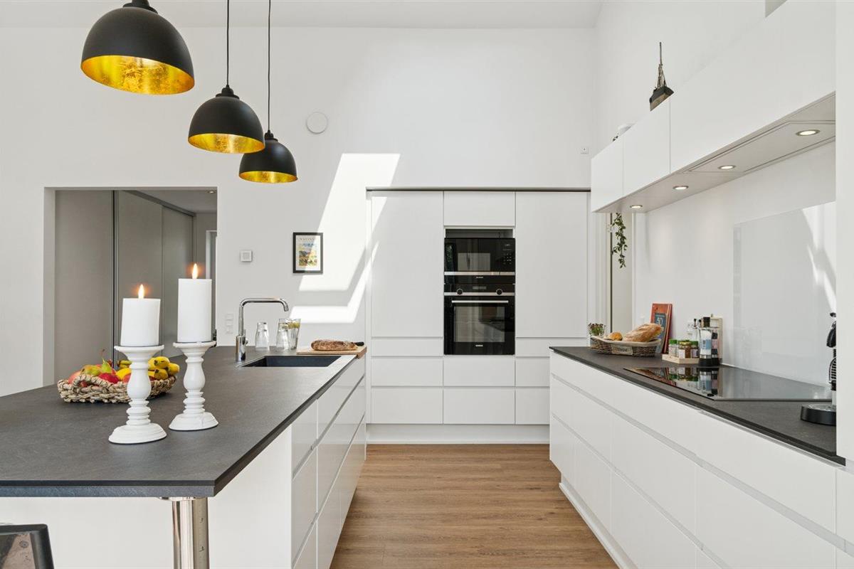 De keuken is uitgerust met koelkast Er is 4 inductiekookplaten, heteluchtoven, magnetron en vaatwasser.