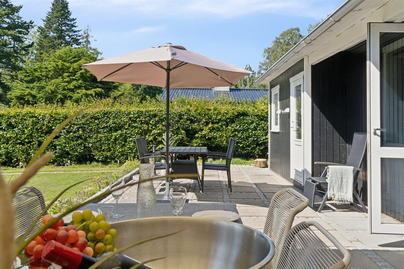 Comfortabel vakantiehuis met tuin, overdekt terras en moderne voorzieningen in Hornbæk, Denemarken.