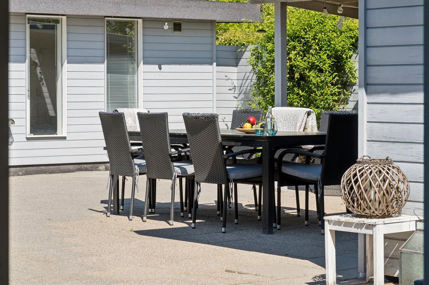 De vakantiewoning is gelegen op een 976 m² groot aangelegde tuin. Afstand tot de zee 300 m. Er is een zwemsteiger in de buurt. Dichtstbijzijnde winkel 1600 m. Er is een golfbaan op een afstand van 4300 m. Bij de vakantiewoning hoort terras. Daarnaast is er een overdekt terras. Gereedschapsruimte.Vuurplaats. Buitendouche. Barbecue. Parkeerplaats bij het huis.