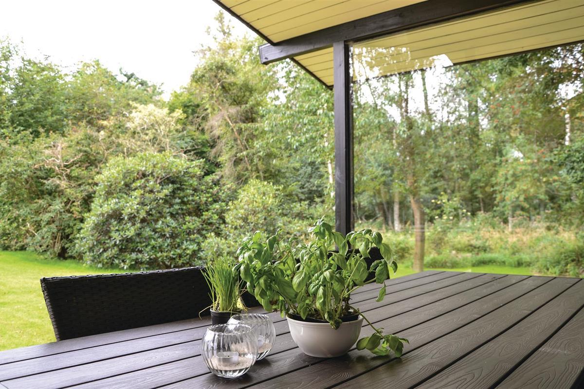 Ruim vakantiehuis nabij het strand van Hornbæk met 4 slaapkamers, overdekt terras en moderne voorzieningen.