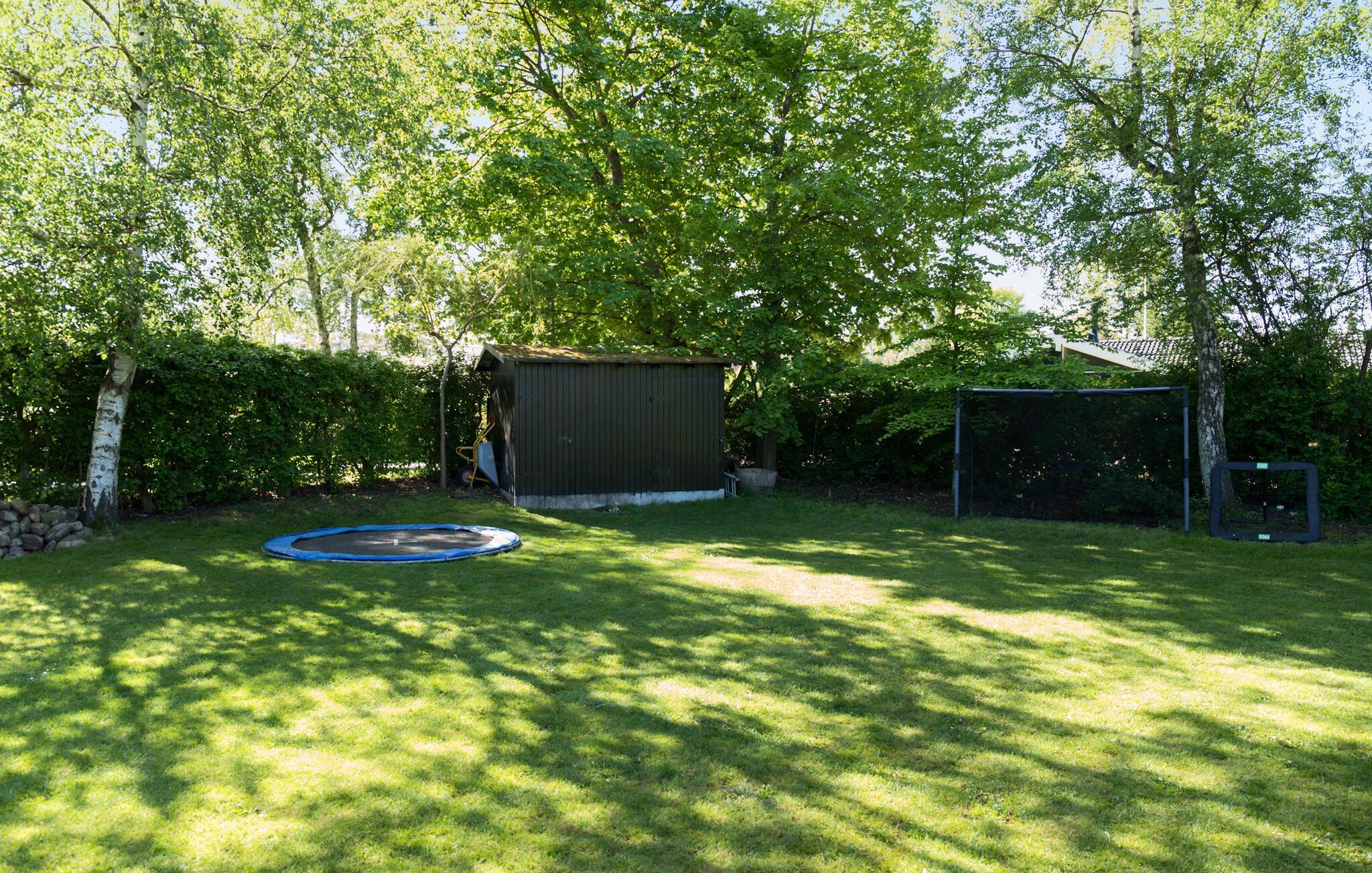 Gezellig vakantiehuis in Hornbæk, dichtbij zee en jachthaven, met terras, trampoline en veel buitenactiviteiten.