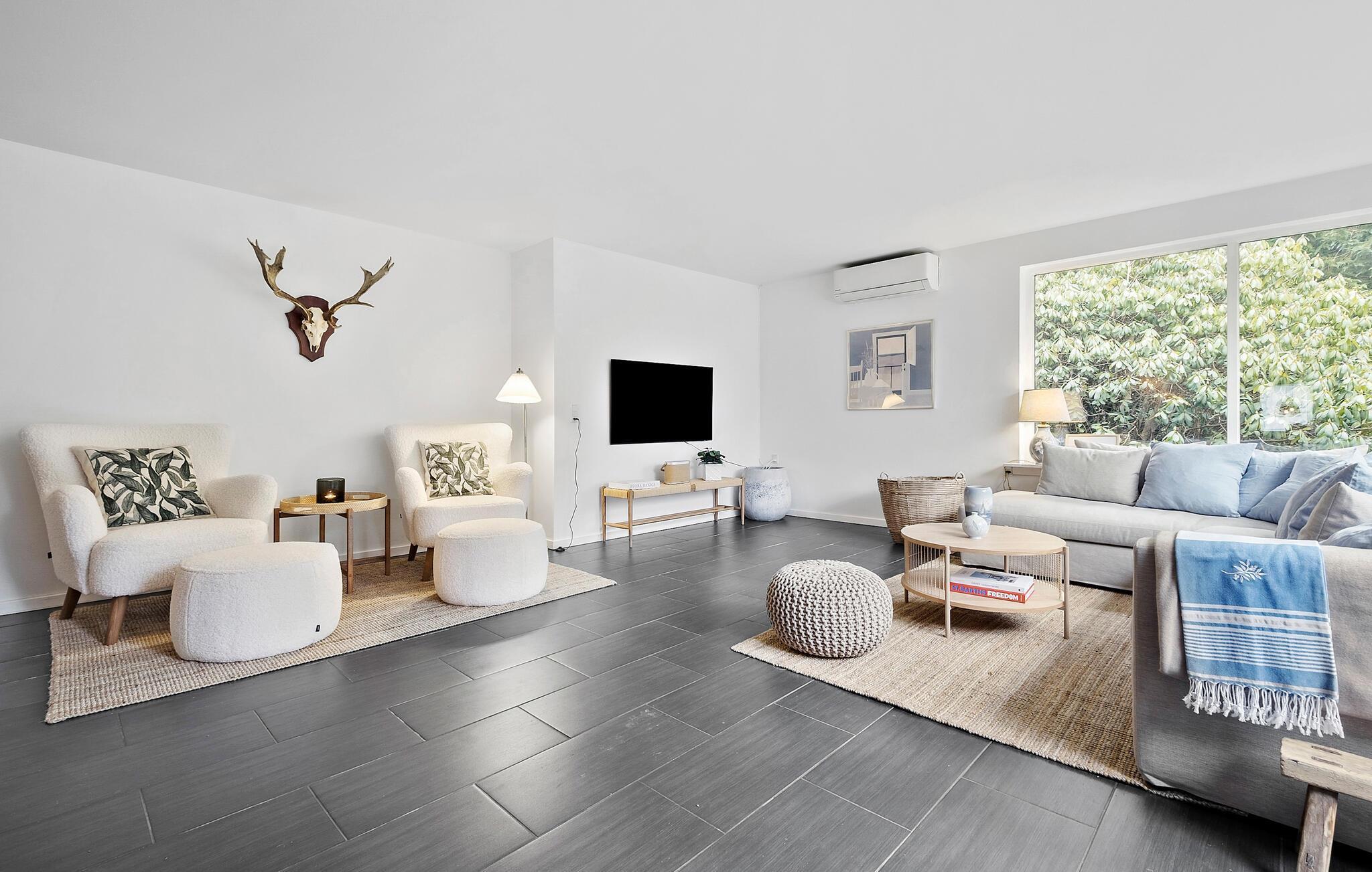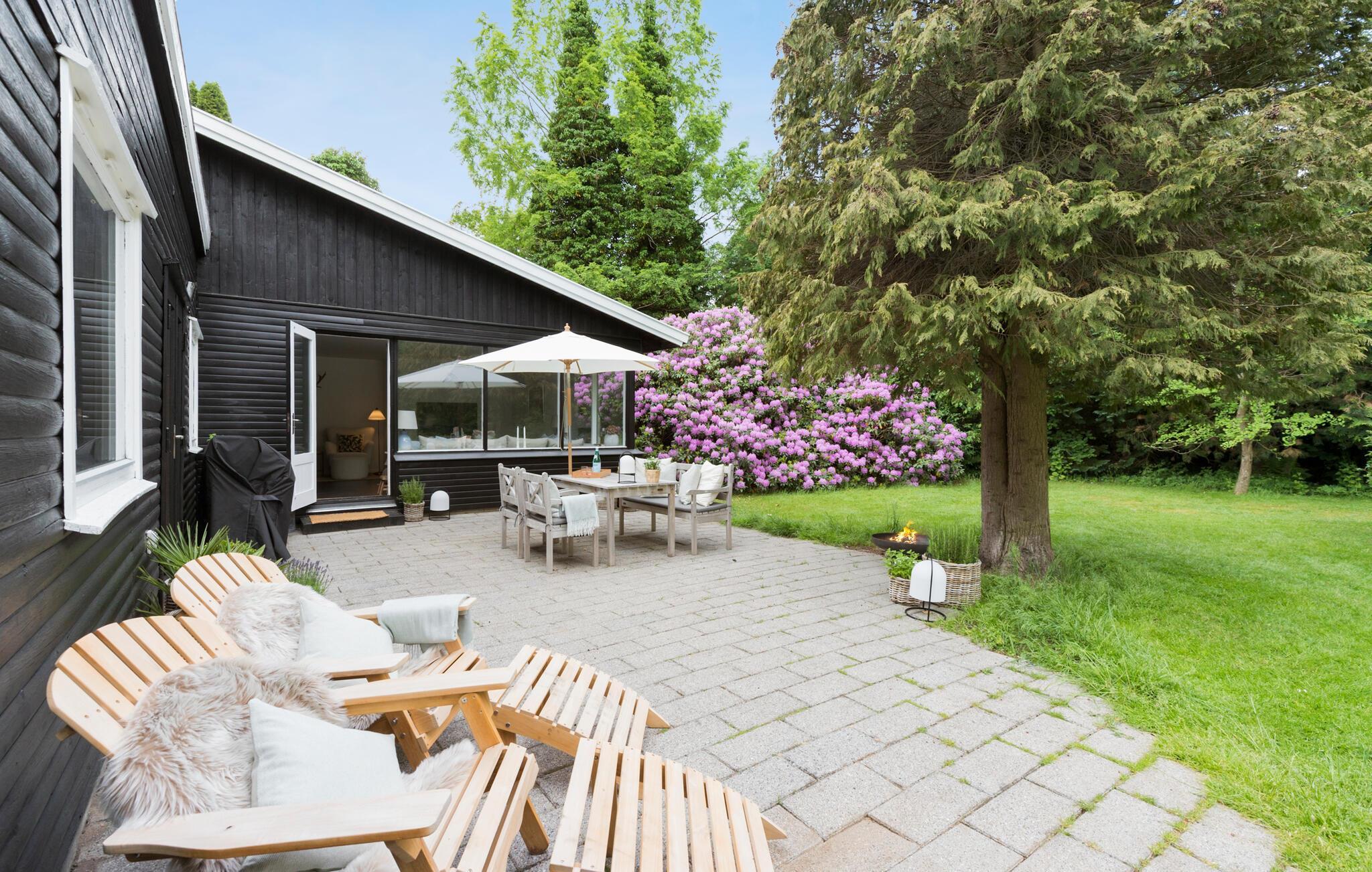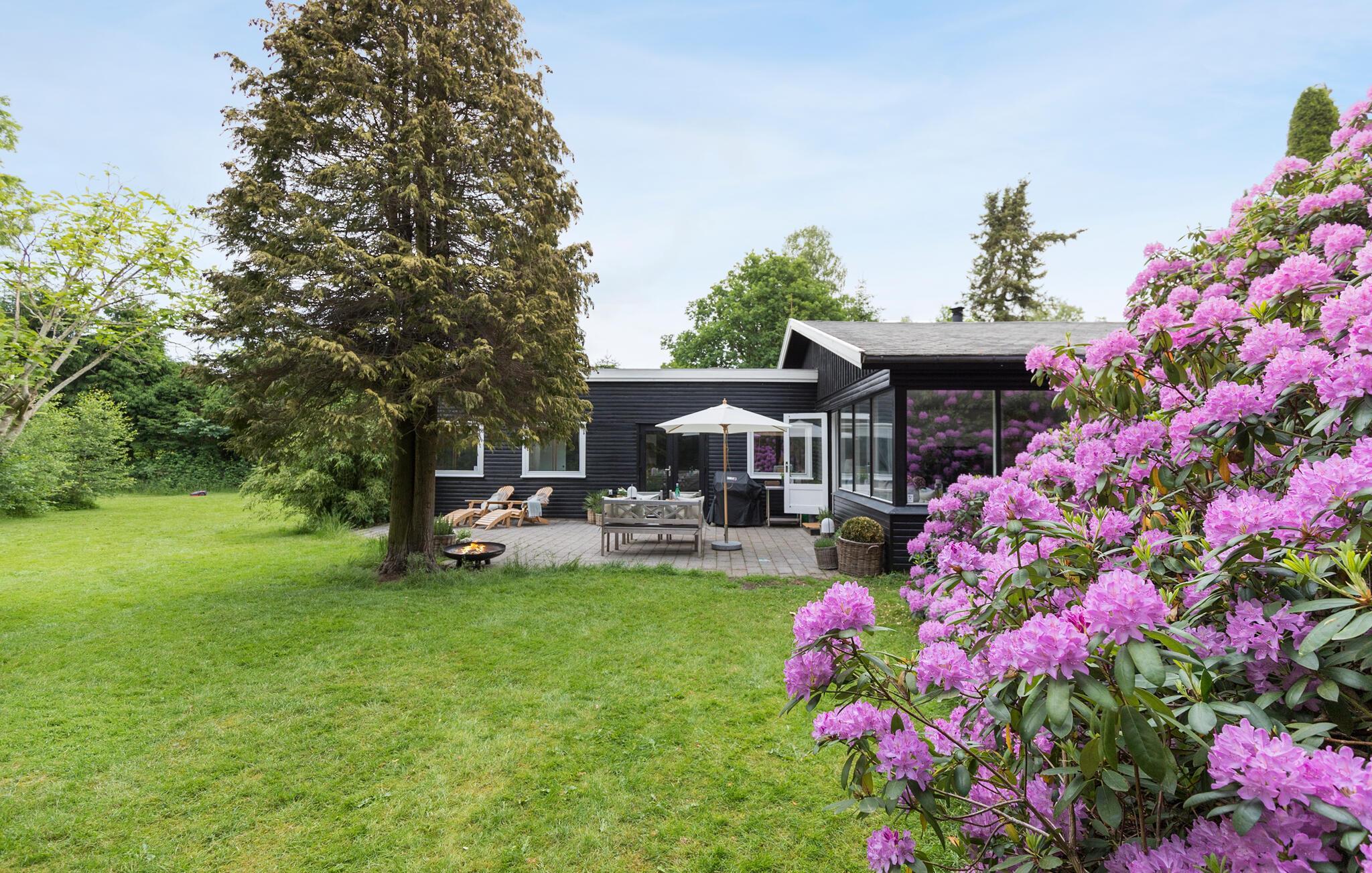 Geniet van een stijlvol en comfortabel vakantiehuis met tuin, fitnessruimte en dichtbij het strand in Hornbæk.
